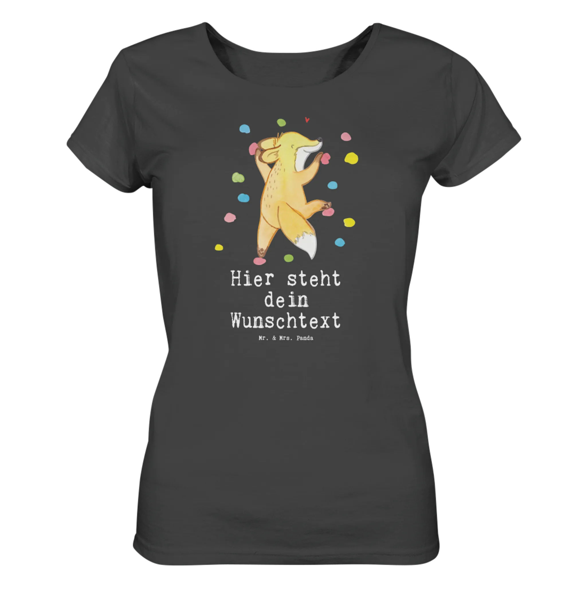 Die liebevollen Designs von Mr. & Mrs. Panda sind handgezeichnet und zaubern sofort gute Laune. Der niedliche Fuchs, der begeistert in der Kletterhalle spielt, macht das Shirt einzigartig und zu einem echten Hingucker.