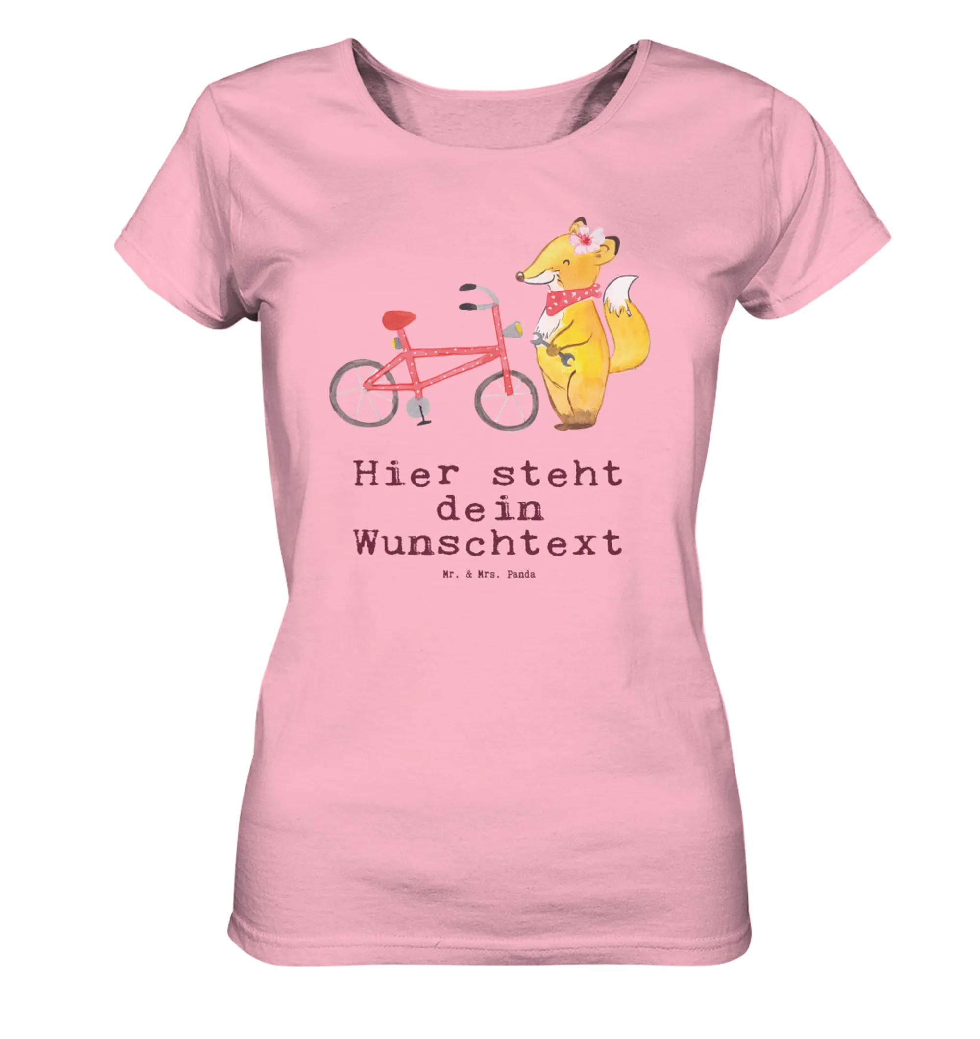 Personalisiertes Shirt Damen „Zweirad Mechanikerin mit Herz“ – ein zauberhaftes Geschenk aus der Berufe-Kollektion von Mr. & Mrs. Panda. Das liebevoll von Mrs. Panda handgezeichnete Aquarell-Motiv zeigt einen süßen, weiblichen Fuchs mit Schraubenschlüssel, der an einem Fahrrad schraubt. Der freche Spruch „Du bist nur ein halber Mensch, wenn du keine Zweirad Mechanikerin bist.“ macht das Shirt zu einem echten Hingucker.