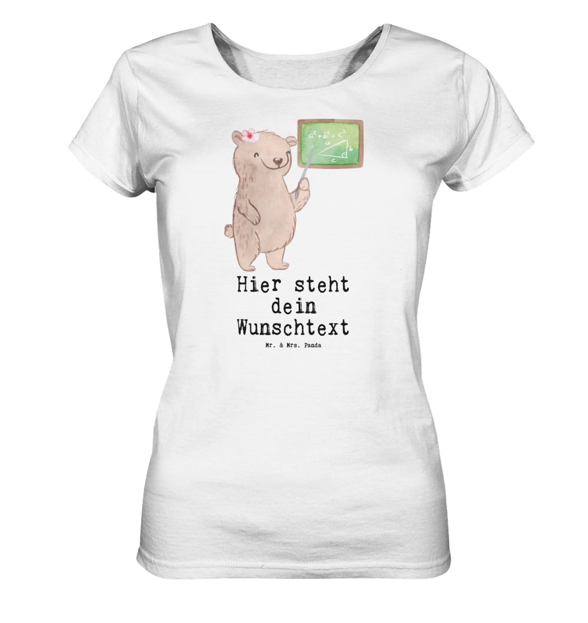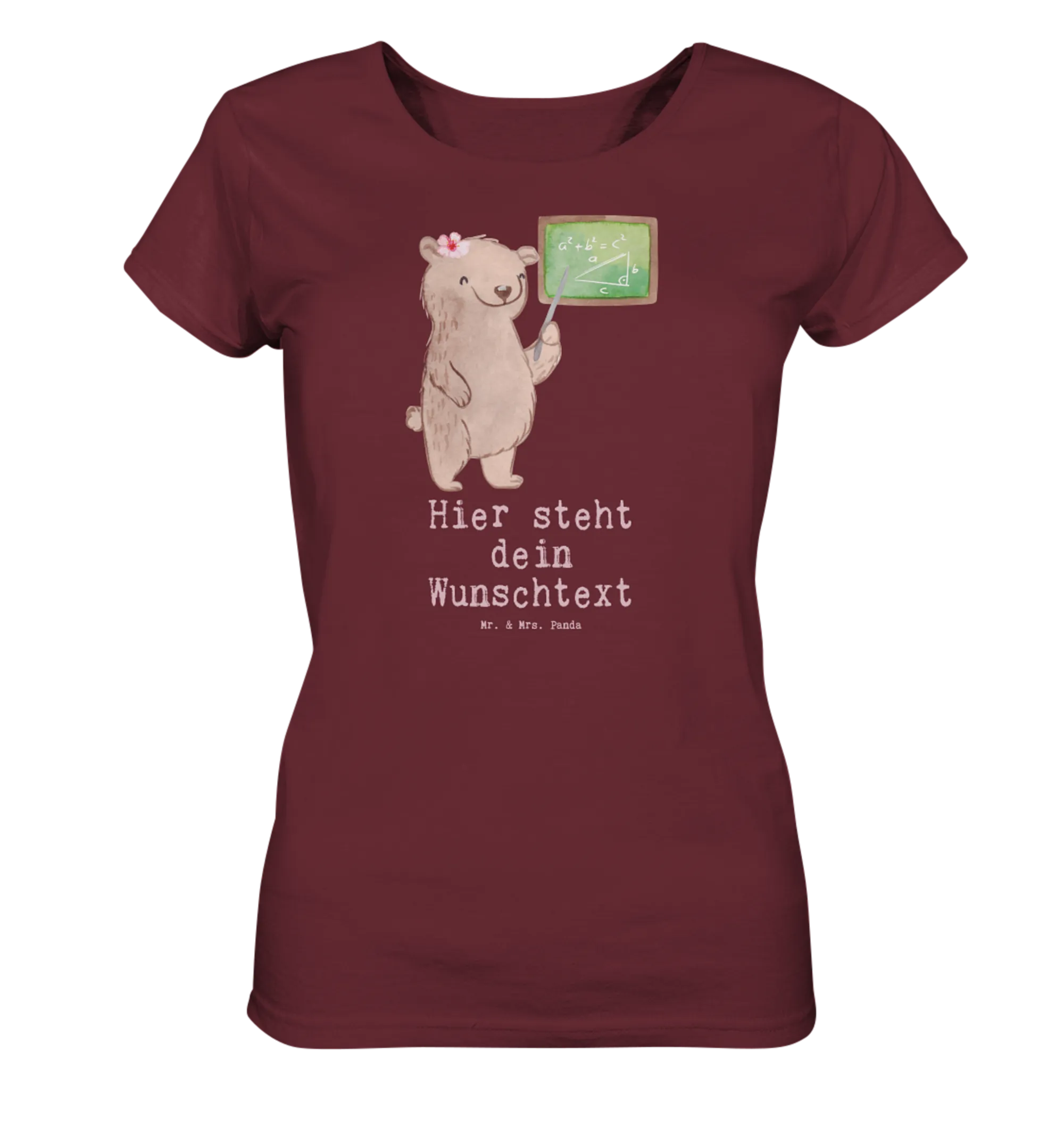 Das Personalisiertes Shirt Damen mit dem liebevollen Motiv "Mathematiklehrerin mit Herz" von Mr. & Mrs. Panda ist das perfekte Geschenk für alle, die Mathematik lieben und diese Leidenschaft mit anderen teilen möchten.