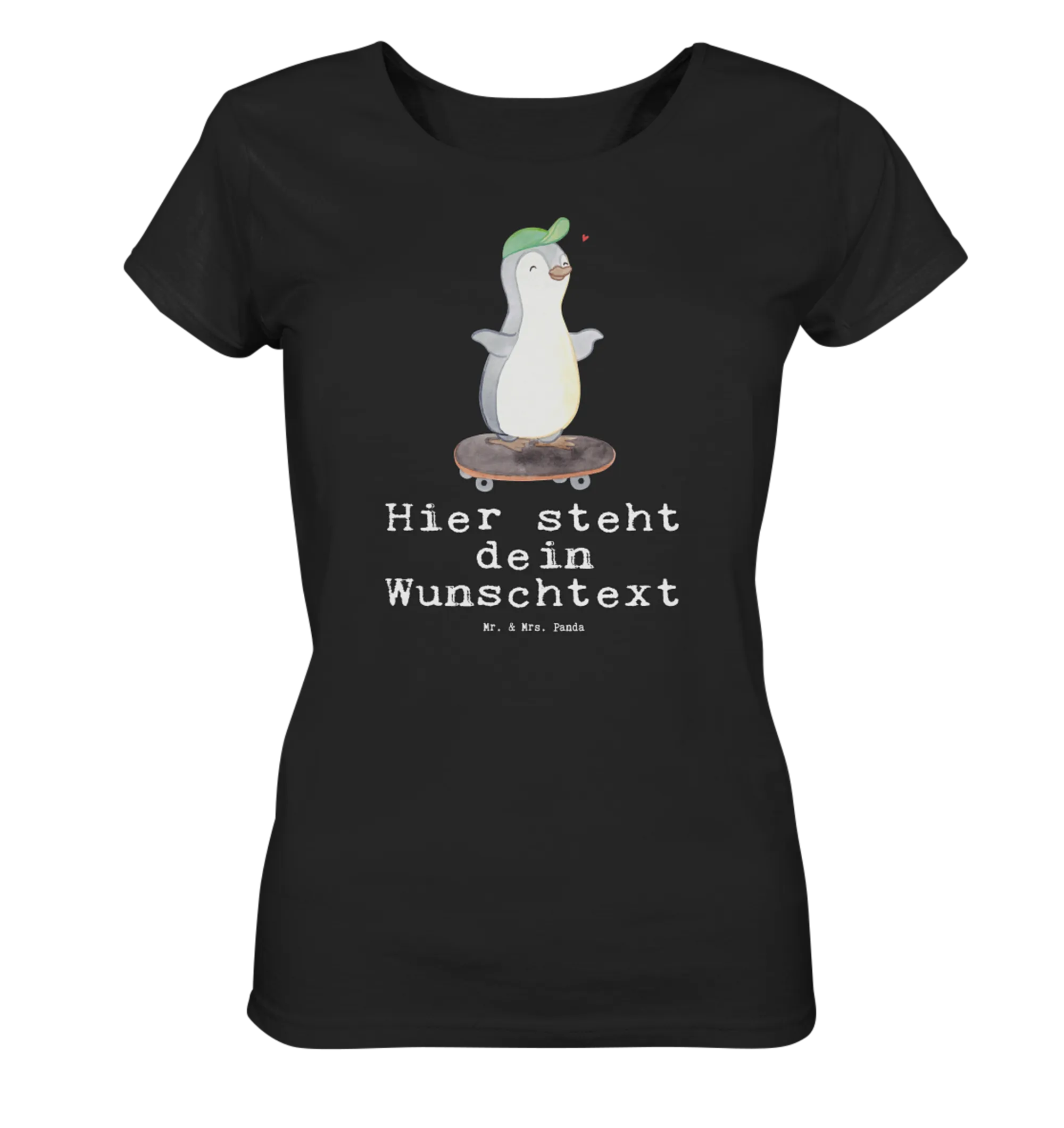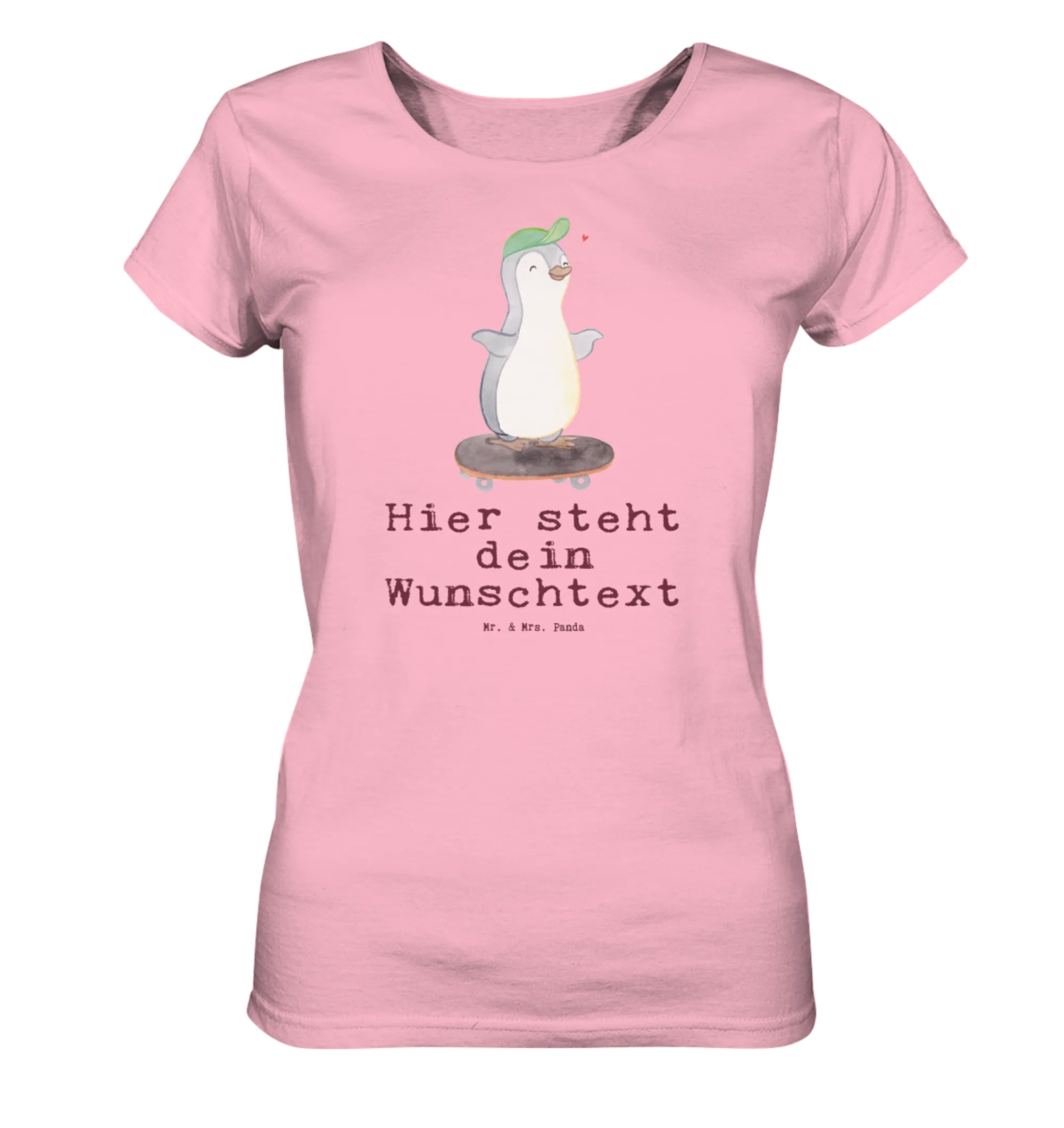 Du suchst nach dem perfekten Geschenk für eine sportbegeisterte Frau? Dann ist das personalisierte Shirt Damen mit dem süßen Pinguin, der Skateboard fährt, genau das richtige für dich! Dieses Shirt gehört zur einzigartigen Kollektion Hobby & Sport von Mr. & Mrs. Panda, die über 200 handgemalte Motive umfasst. Ob zum Geburtstag, für einen Junggesellenabschied oder das nächste Jubiläum - dieses Shirt zaubert jedem ein Lächeln ins Gesicht!