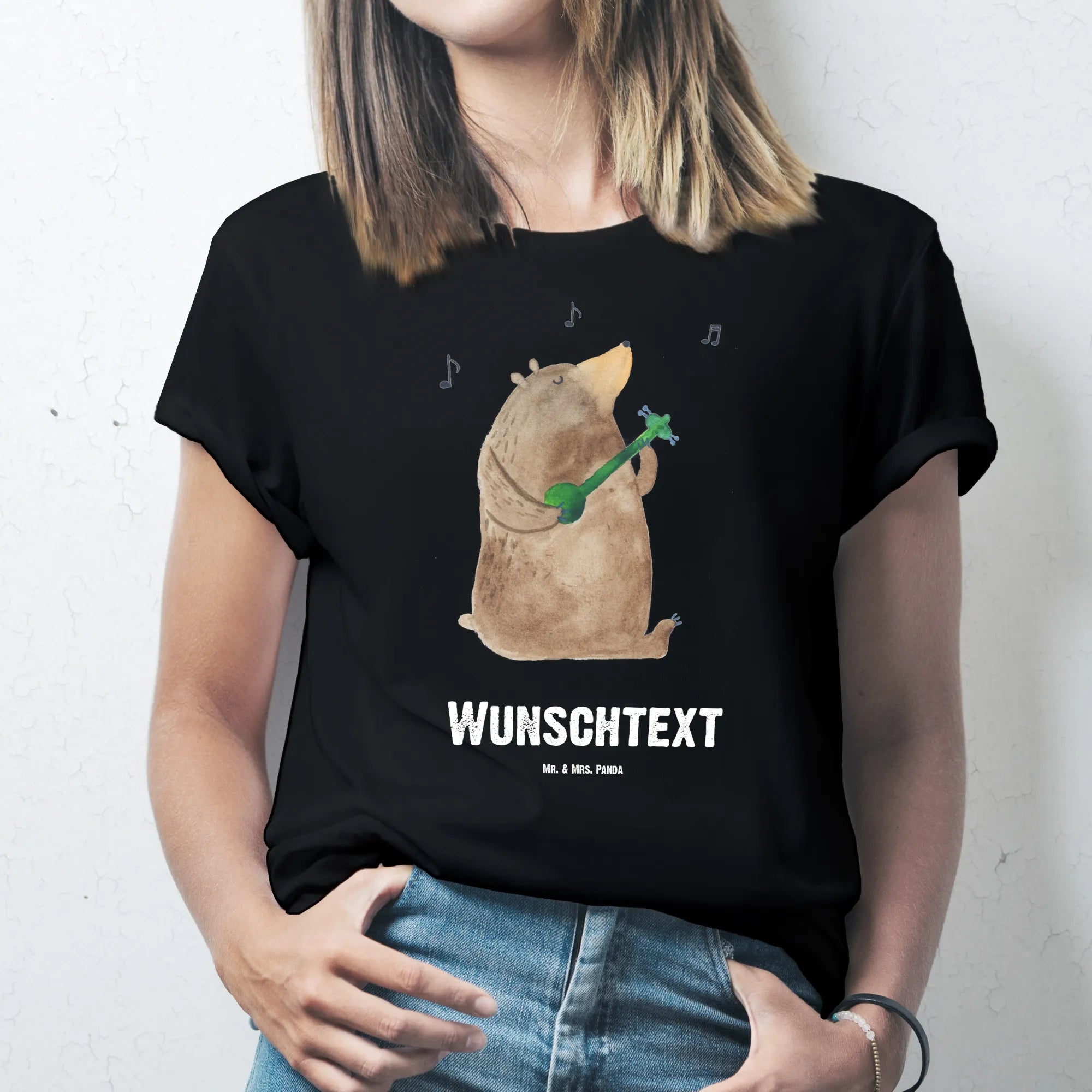 Rozmiar XXL Spersonalizowana koszulka niedźwiedź Gitara - Größe XXL Personalisiertes T-Shirt - biały
