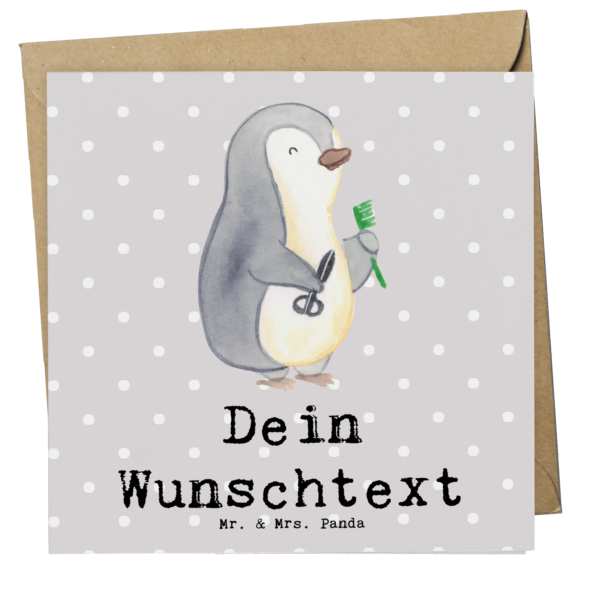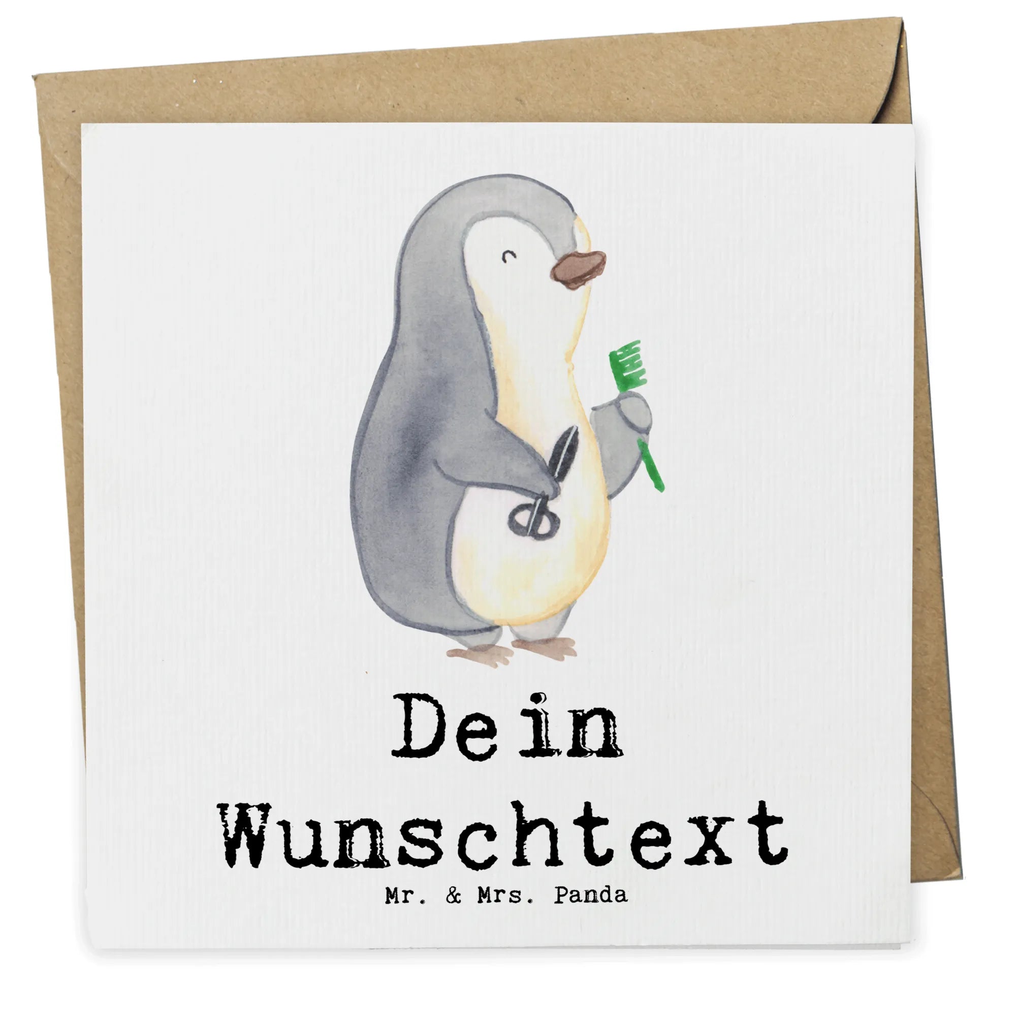 Du suchst nach dem perfekten Geschenk für einen Friseur oder Haarstylisten? Unsere personalisierte Deluxe Karte "Friseur mit Herz" von Mr. & Mrs. Panda ist genau das Richtige!