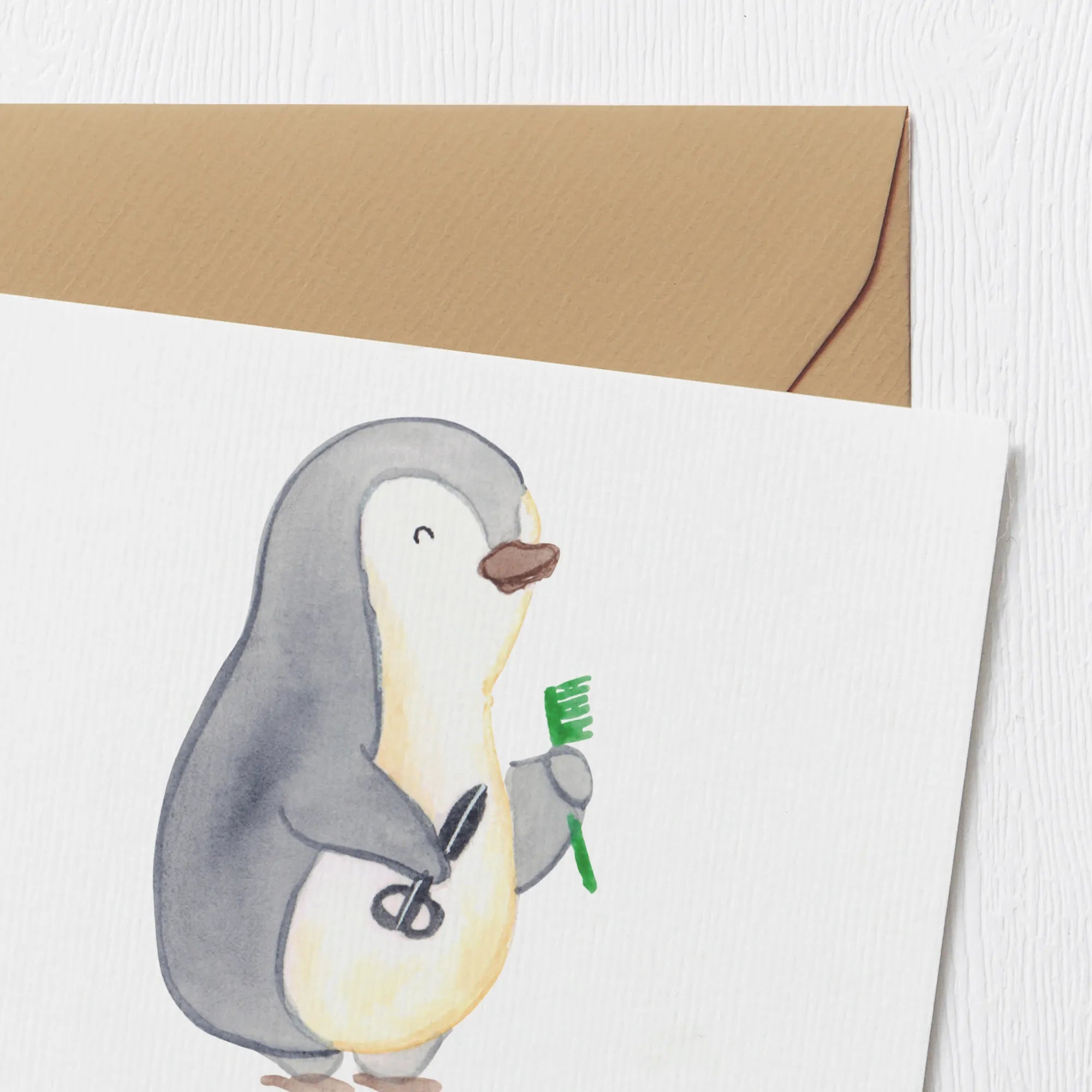 Sie eignet sich hervorragend für besondere Anlässe wie Geburtstage, Hochzeiten oder Verabschiedungen. Der niedliche Pinguin mit Kamm und Schere symbolisiert die Hingabe und den Spaß, den Friseure an ihrer Arbeit haben. „Du bist nur ein halber Mensch, wenn du kein Friseur bist“ – dieser humorvolle Spruch sorgt für ein Lächeln und macht die Karte zu einem ganz besonderen Geschenk.