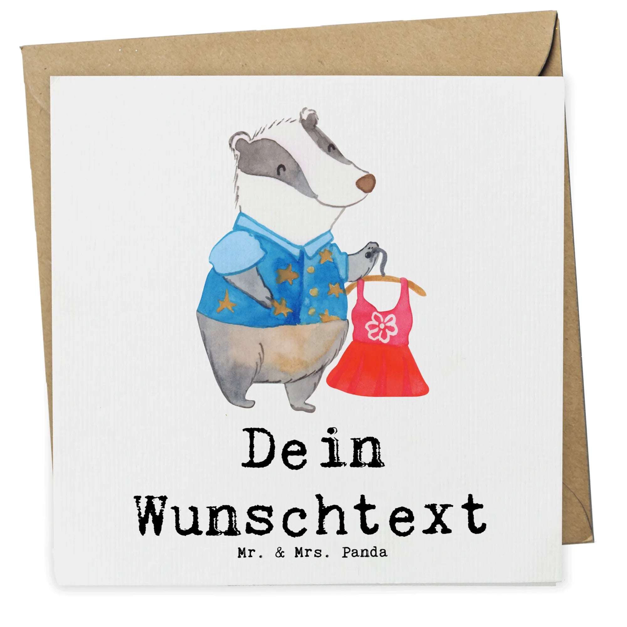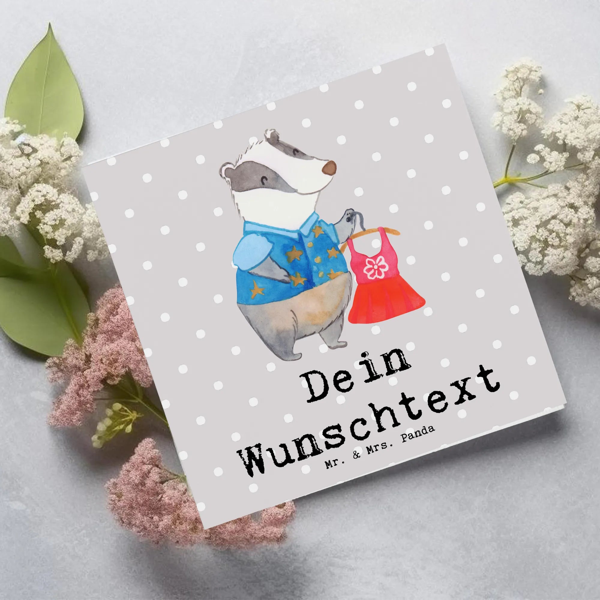Dieses schöne, individualisierbare Motiv mit dem charmanten, elegant gekleideten Dachs passt zu vielen Anlässen: als Glückwunschkarte zum Abschluss einer Ausbildung, zur Verabschiedung einer Kollegin, zum Jubiläum im Atelier, zur Rente eines Mitarbeiters oder einfach als liebevolles Dankeschön an einen Arbeitskollegen. Auch als Einladungskarte zur Modenschau oder als persönliche Hochzeits- oder Geburtstagskarte macht sie eine sehr gute Figur. ✨