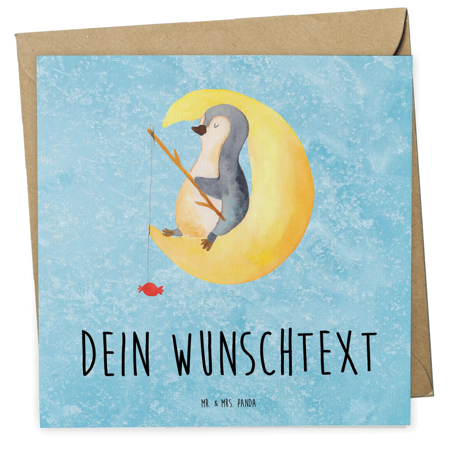 Personalisierte Deluxe Karte Pinguin Mond - Eisblau