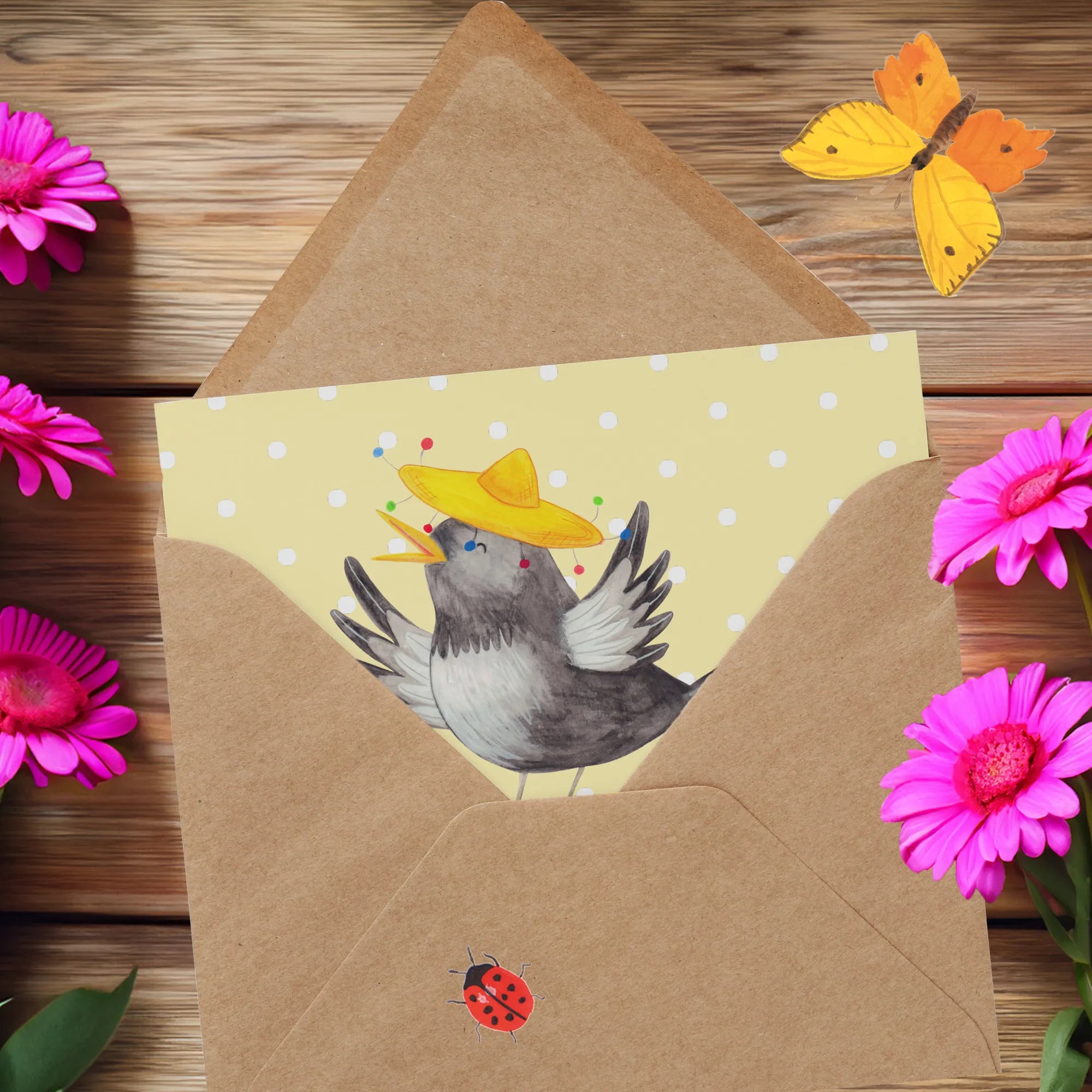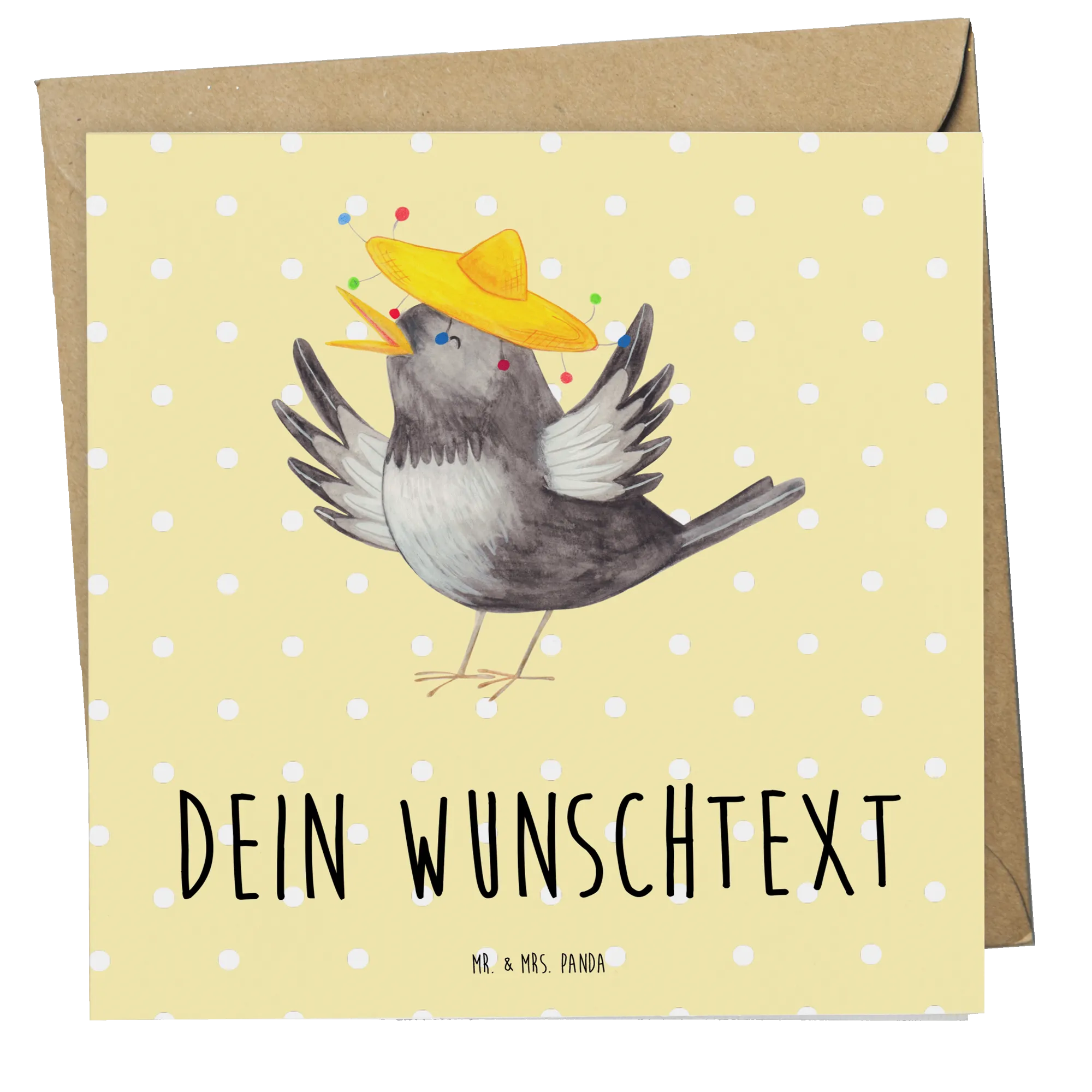 Du suchst nach dem perfekten Geschenk für einen besonderen Menschen? Die personalisierte Deluxe Karte mit dem niedlichen Motiv 'Rabe mit Sombrero' von Mr. & Mrs. Panda ist genau das Richtige!