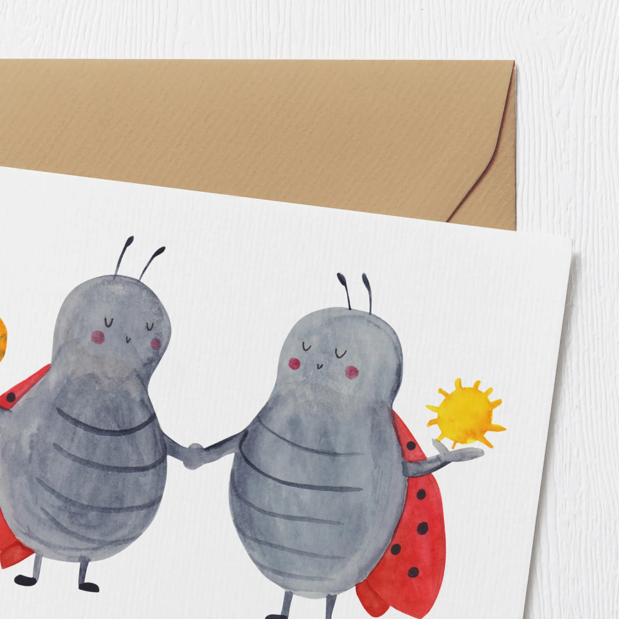 Die matte Innenseite erlaubt es, deine Gedanken und Glückwünsche ganz persönlich zu niederschreiben. Und vielleicht entdecken die Beschenkten ja sogar Gemeinsamkeiten, die sie in den süßen Marienkäfern wiedererkennen.
