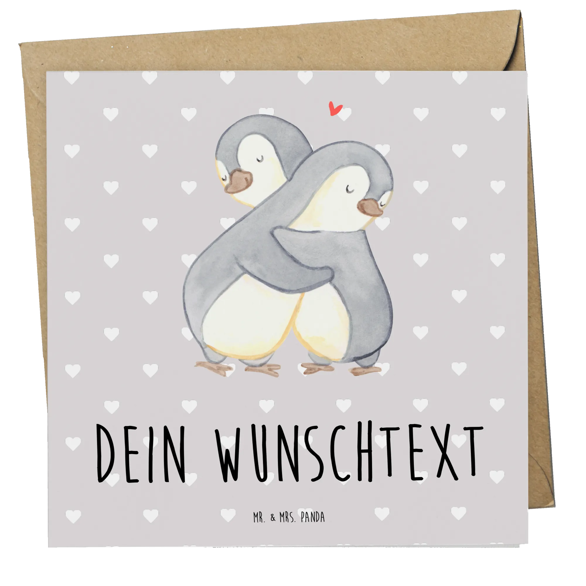 Personalizowana luksusowa karta Pingwiny Przytulanie - biały