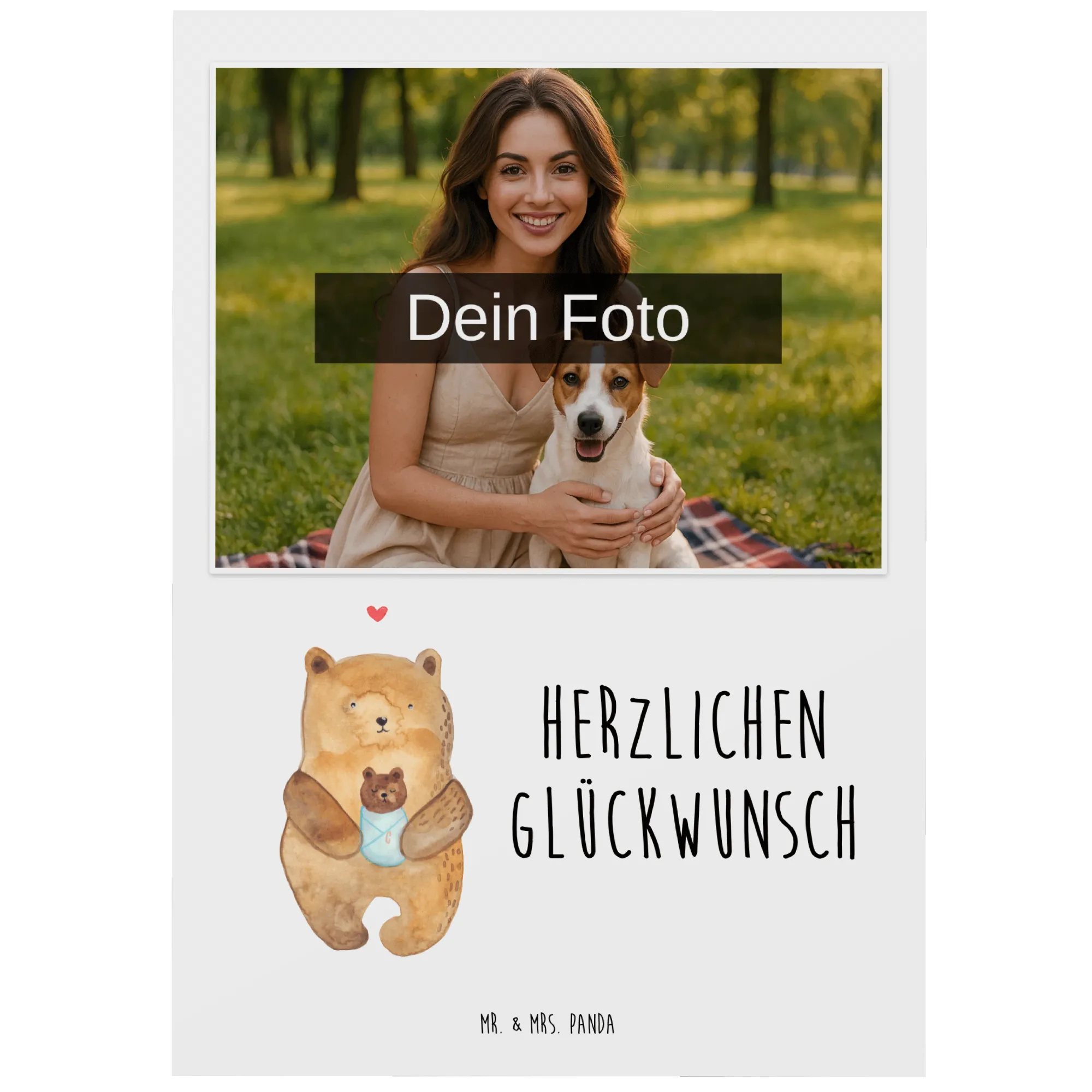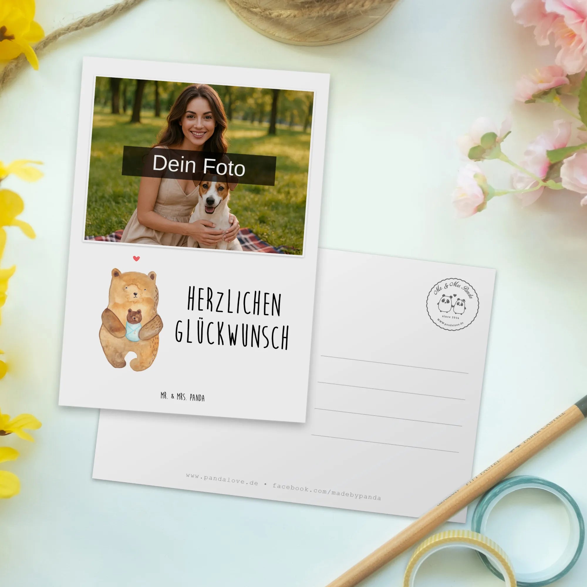 Die personalisierte Foto Postkarte "Bär mit Baby" von Mr. & Mrs. Panda ist das perfekte Geschenk für jeden Anlass! Egal, ob zur Geburt eines Kindes, zur Taufe oder als liebevolle Glückwunschkarte zum Geburtstag – diese besondere Postkarte bringt Freude in jedes Herz.