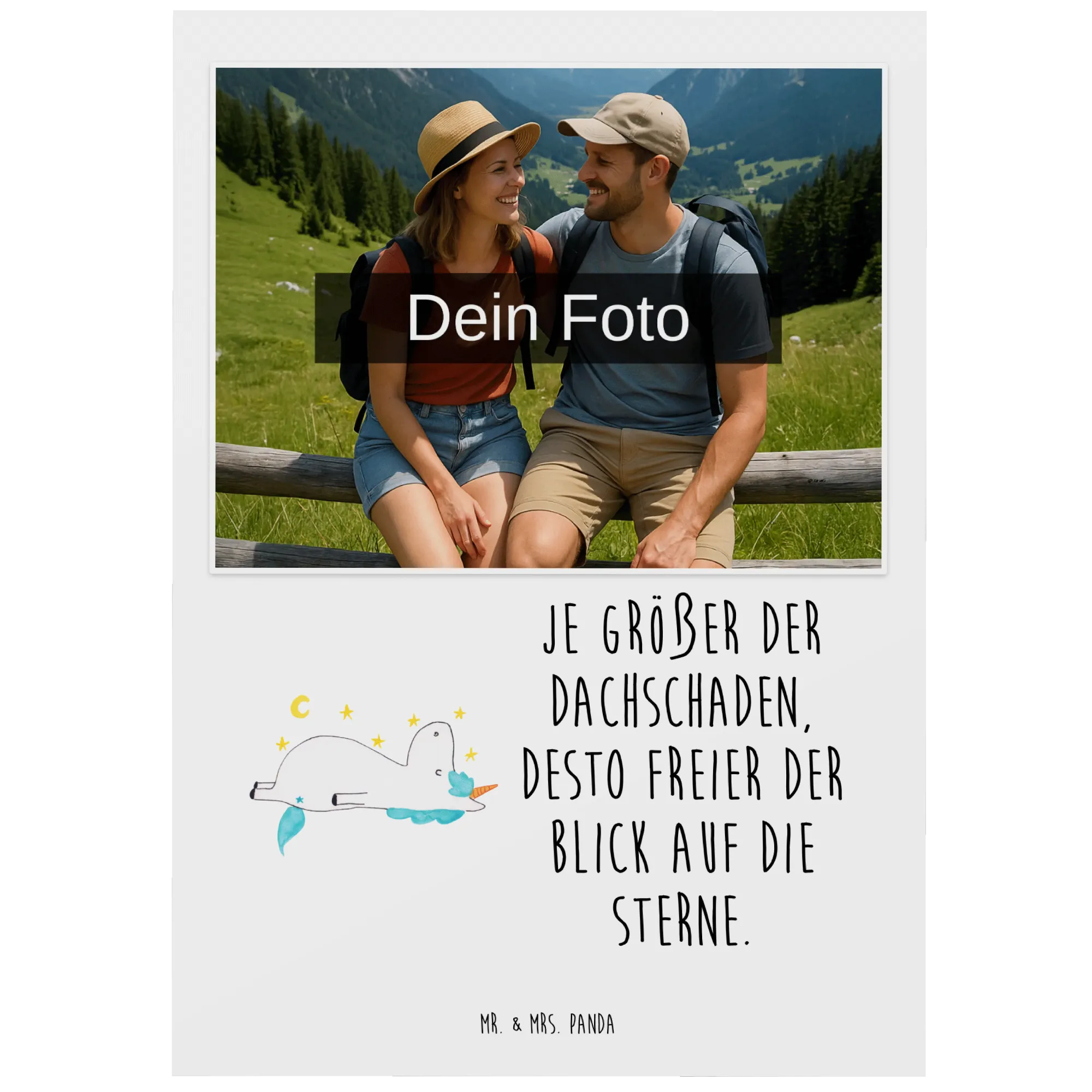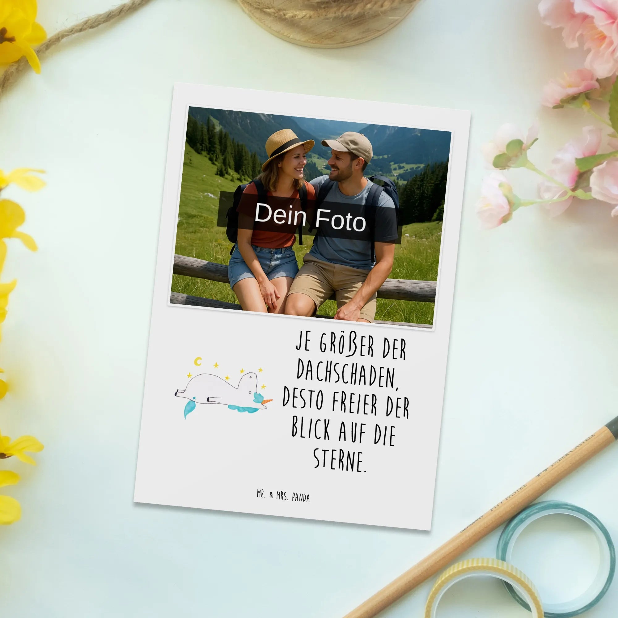 Die personalisierte Foto Postkarte mit dem zauberhaften Einhorn-Motiv "Sternenhimmel" von Mr. & Mrs. Panda ist das perfekte Geschenk für alle Einhorn-Liebhaber!
