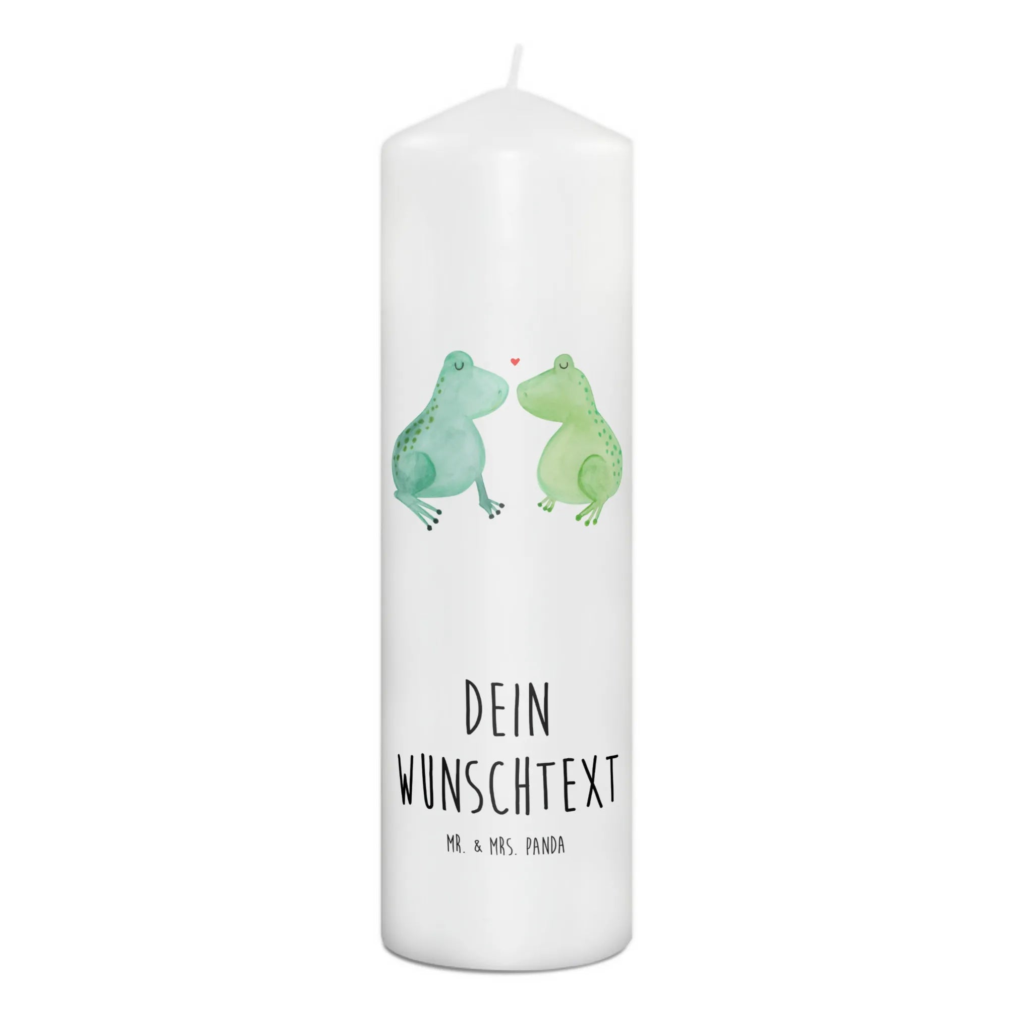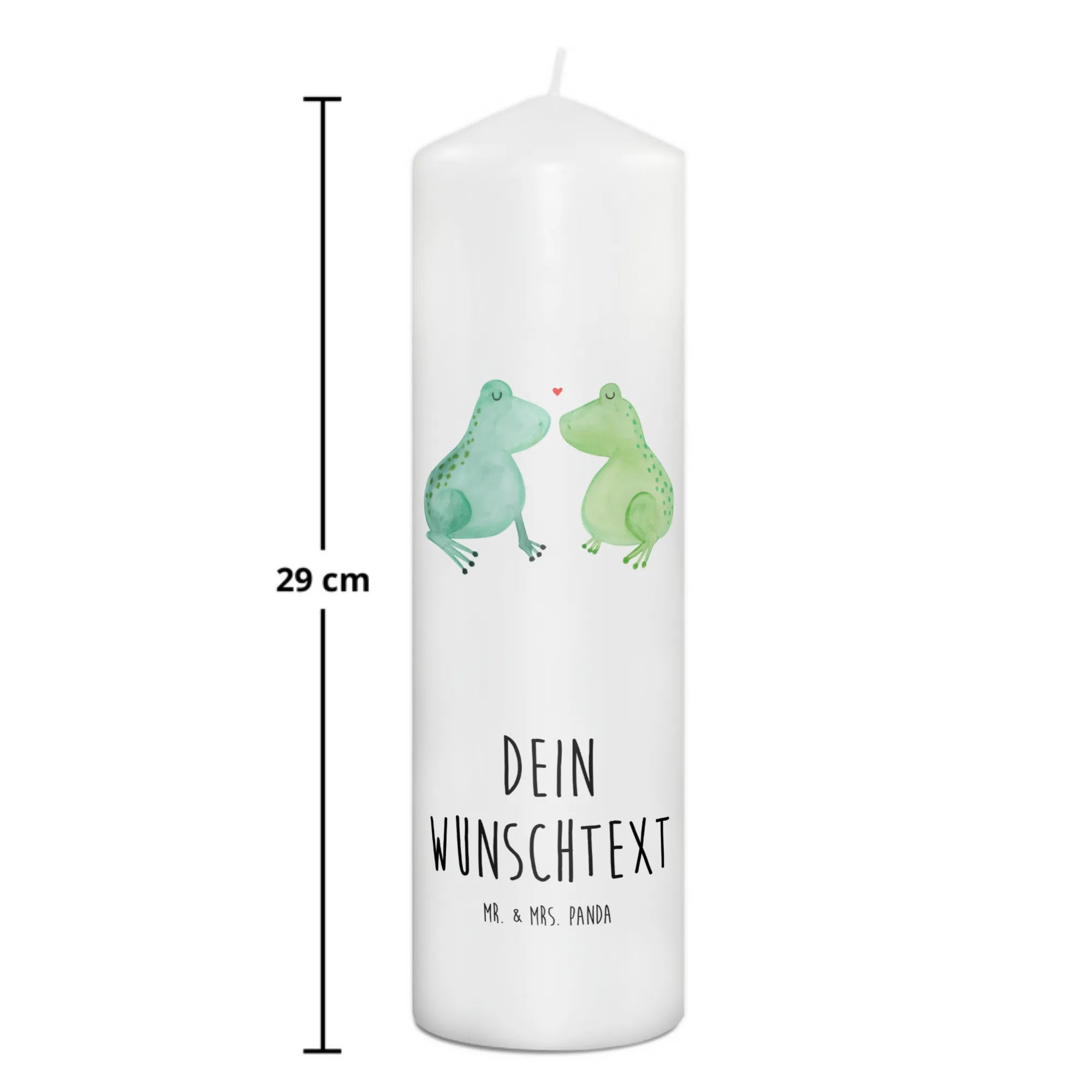 Mit einem zauberhaften Motiv, das verliebte Frösche zeigt, die sich über ein rotes Herz betrachten, vermittelt sie das unbeschreibliche Gefühl der Liebe und Verbundenheit. Jede Kerze ist personalisiert – du kannst den Wunschnamen oder einen ganz persönlichen Text hinzufügen. Stell dir vor, wie schön es ist, einem Freund oder einer Freundin zu sagen: „Dank dir muss ich keine Frösche mehr küssen, denn ich habe meinen Traumprinzen gefunden.“