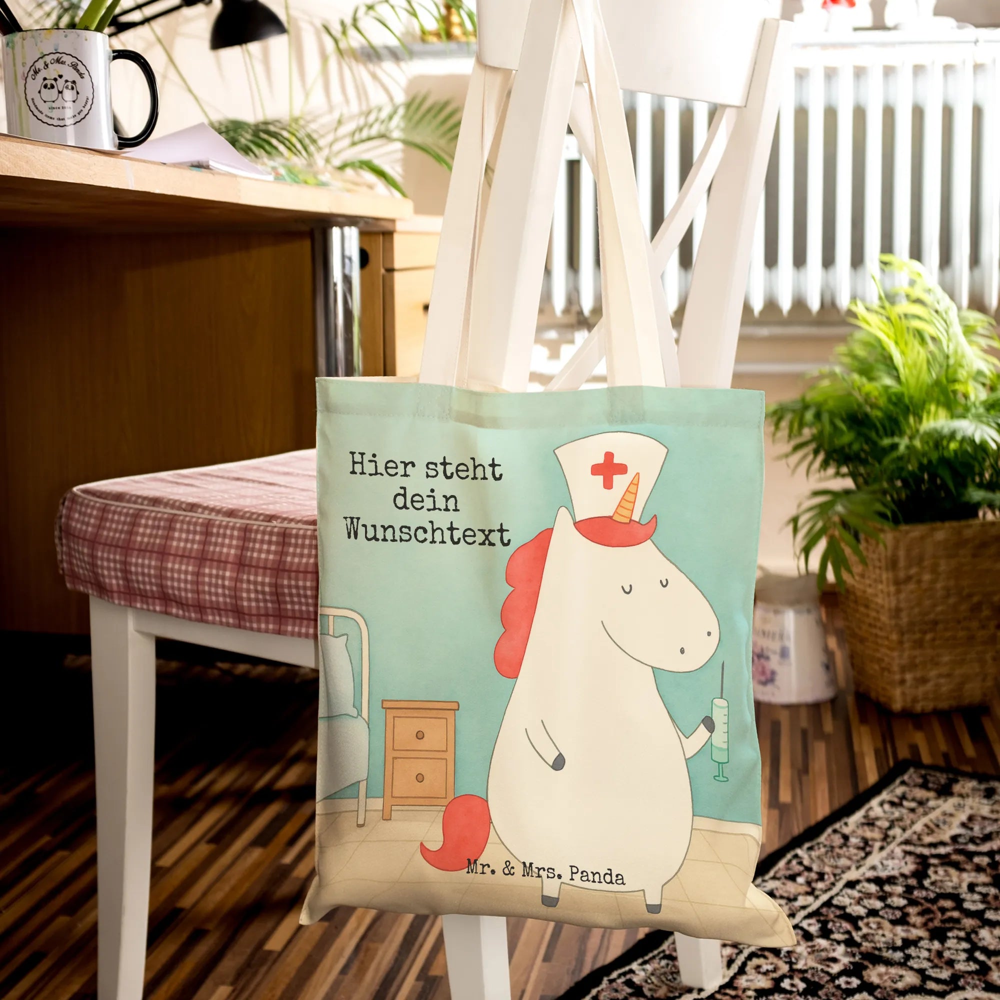 Personalisierte Einkaufstasche Einhorn Krankenschwester Design