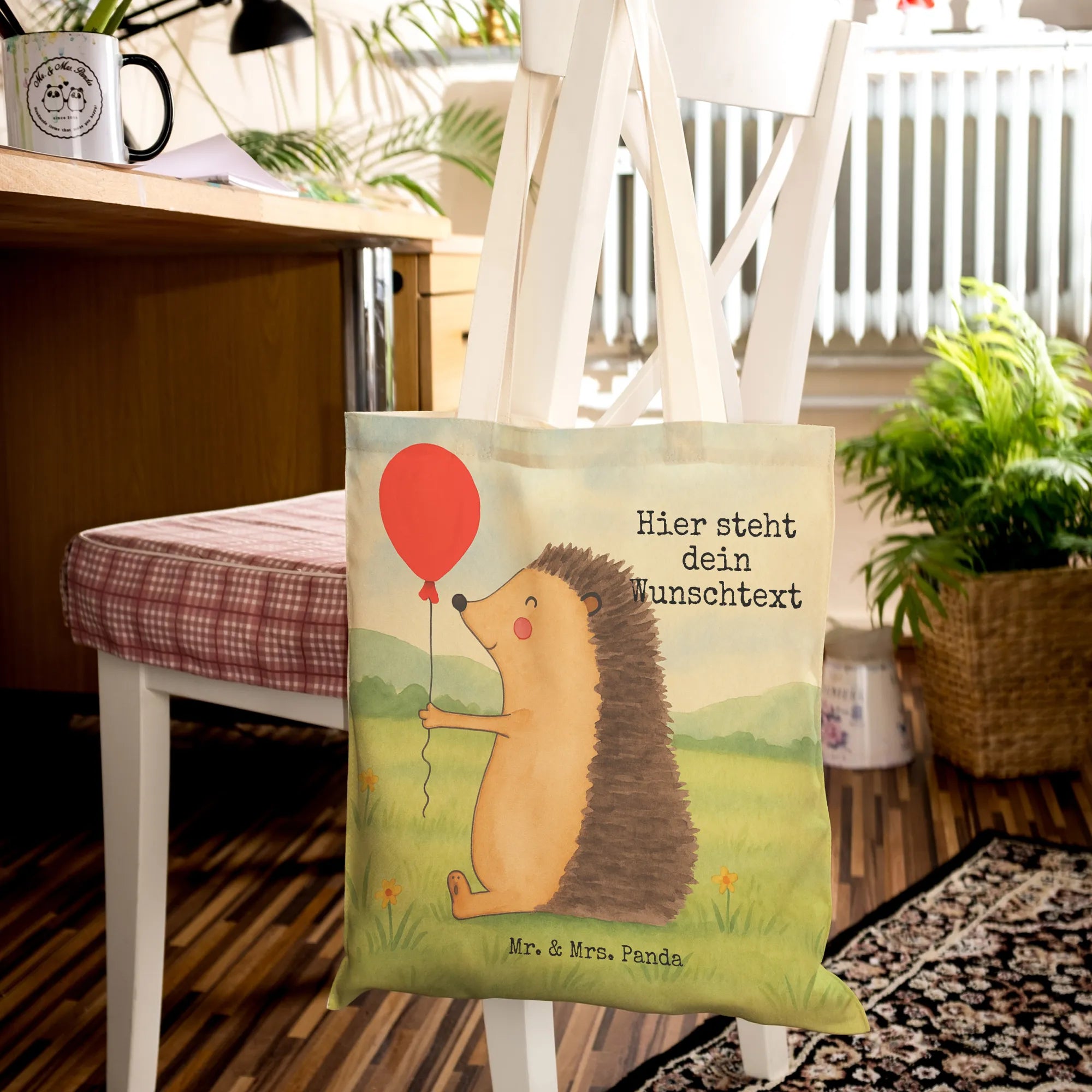 Personalisierte Einkaufstasche Igel Luftballon Design