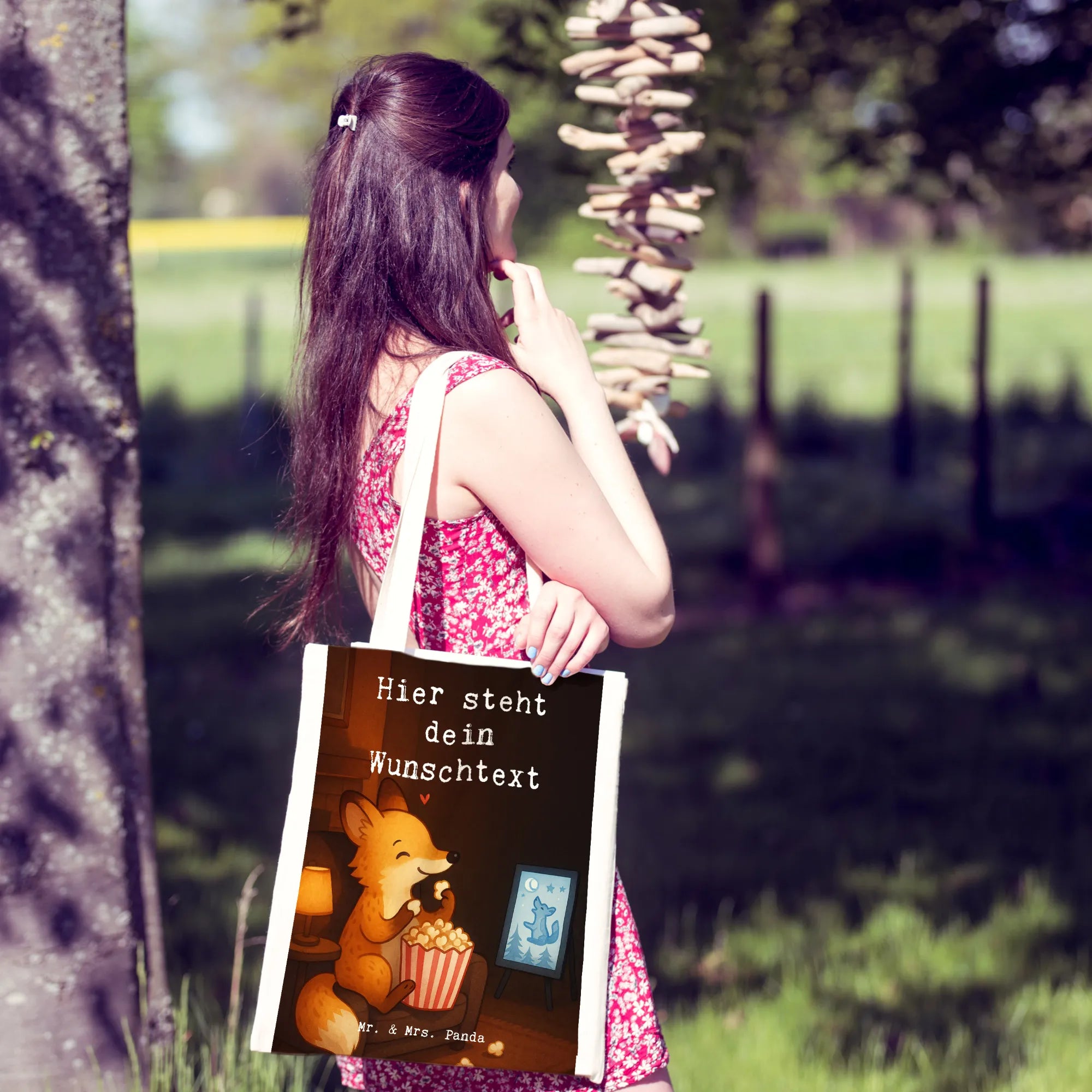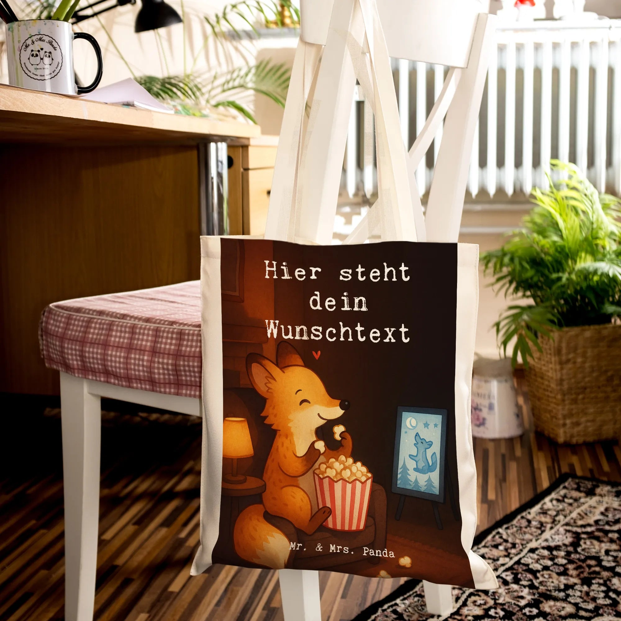 Personalisierte Tragetasche Fuchs Filme gucken Design – Mr. & Mrs. Panda