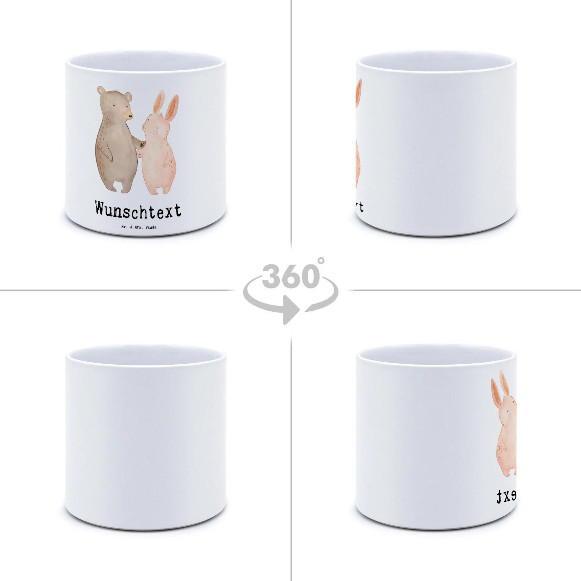 Das süße Design, auf dem ein Bär einen Hasen hält, steht für die beste Freundschaft und macht diesen Blumentopf zu einem unvergesslichen Geschenk für jeden, der Dir am Herzen liegt. Egal ob zum Geburtstag, als kleines Dankeschön oder einfach um Freude zu bereiten – dieser personalisierte Blumentopf ist immer eine gute Idee!