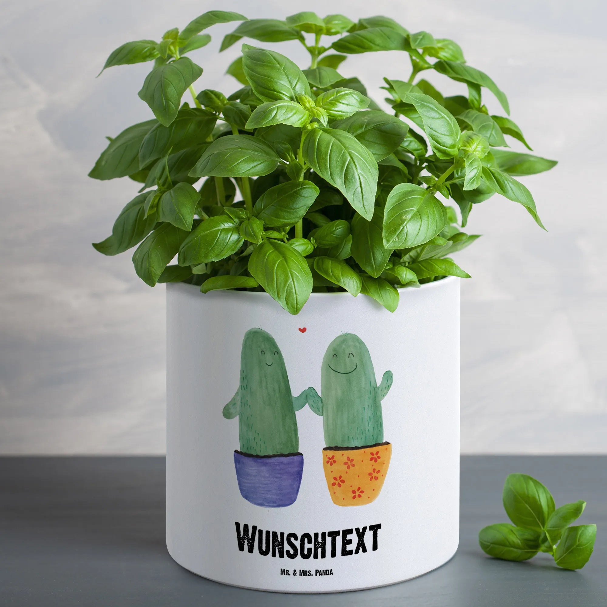 Unsere Kaktus - Kollektion bringt sonnige Laune und liebevolle Motive in dein Zuhause. Der große Blumentopf mit dem handgezeichneten Kaktus-Motiv von Mrs. Panda zeigt zwei niedliche Kakteen, die sich verliebt anschauen. Auf dem quadratischen Motiv steht der Spruch „Liebe tut manchmal weh.“ – ehrlich, frech und trotzdem zärtlich. Du kannst den XL Blumentopf mit einem Wunschtext oder Namen personalisieren und so ein einzigartiges Geschenk gestalten.