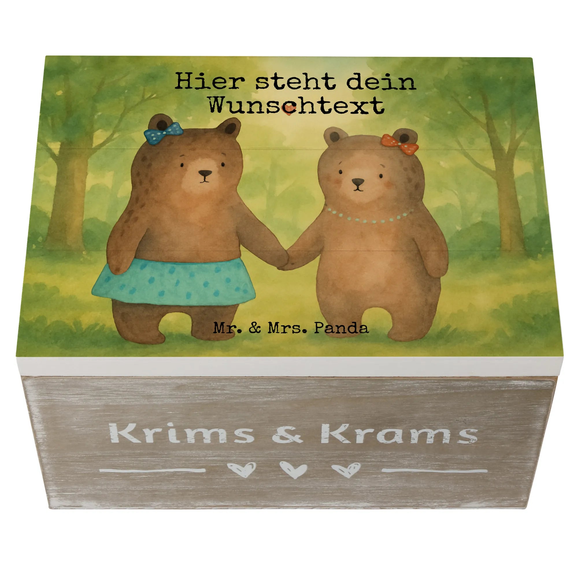 Personalisierte Holzkiste Bär Freundin Design - 22 x 15 cm