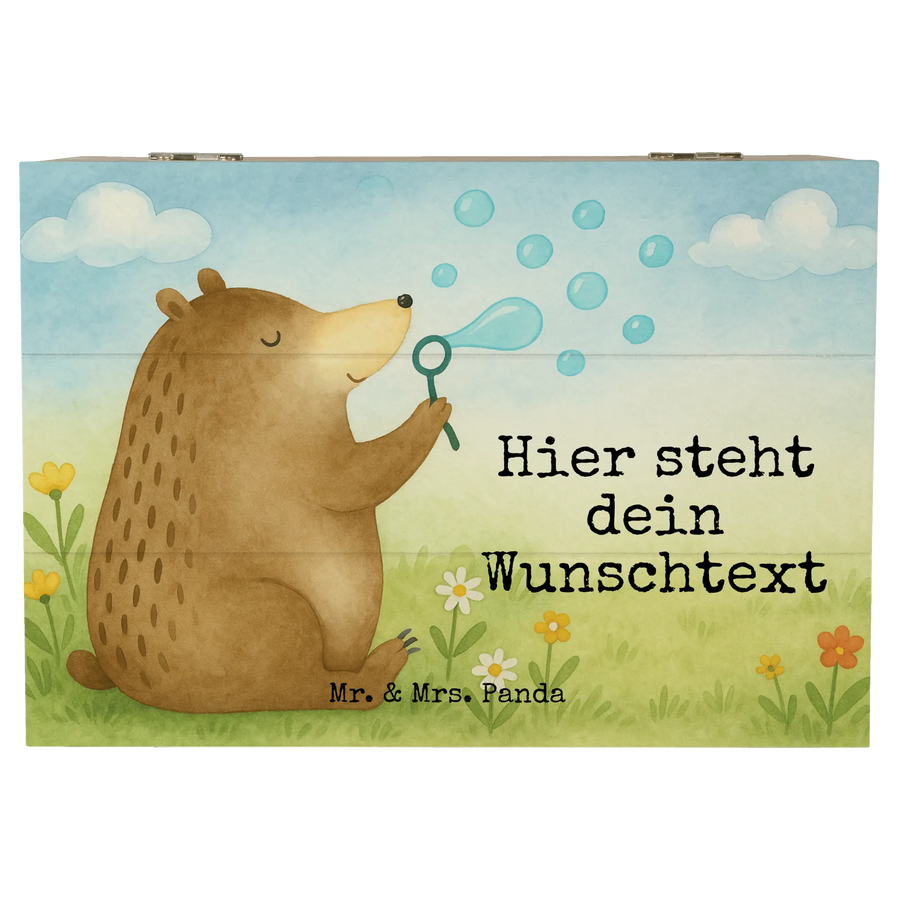 Personalisierte Holzkiste Bär Seifenblasen Design - 22 x 15 cm