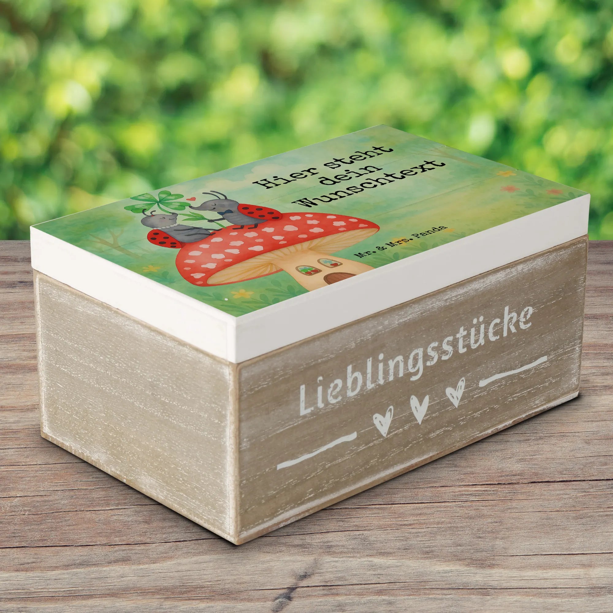 Personalisierte Holzkiste Marienkäfer Fliegenpilz Design – Mr. & Mrs. Panda