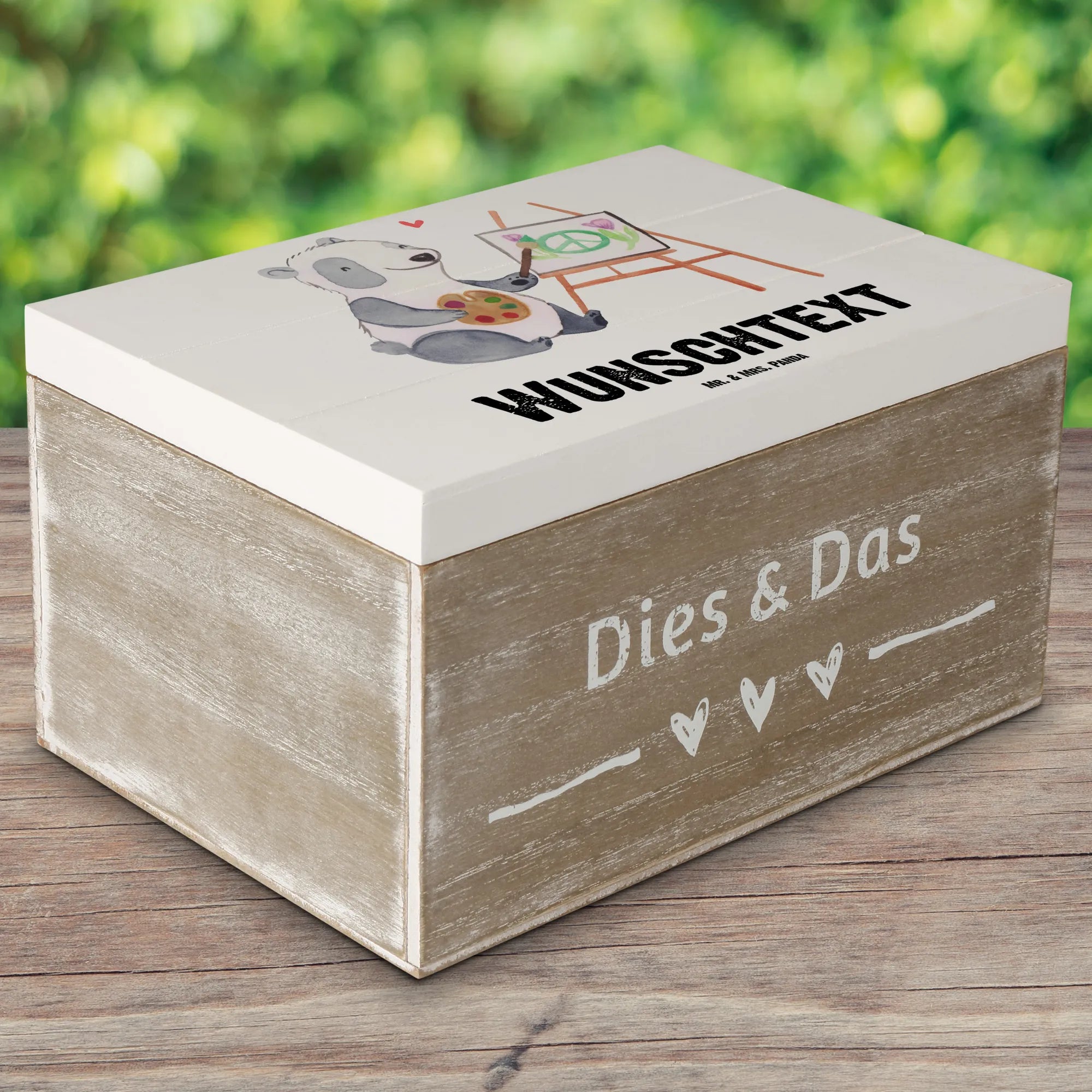 Personalizowane drewniane pudełko Artysta serce - 22 x 15 cm - Biały