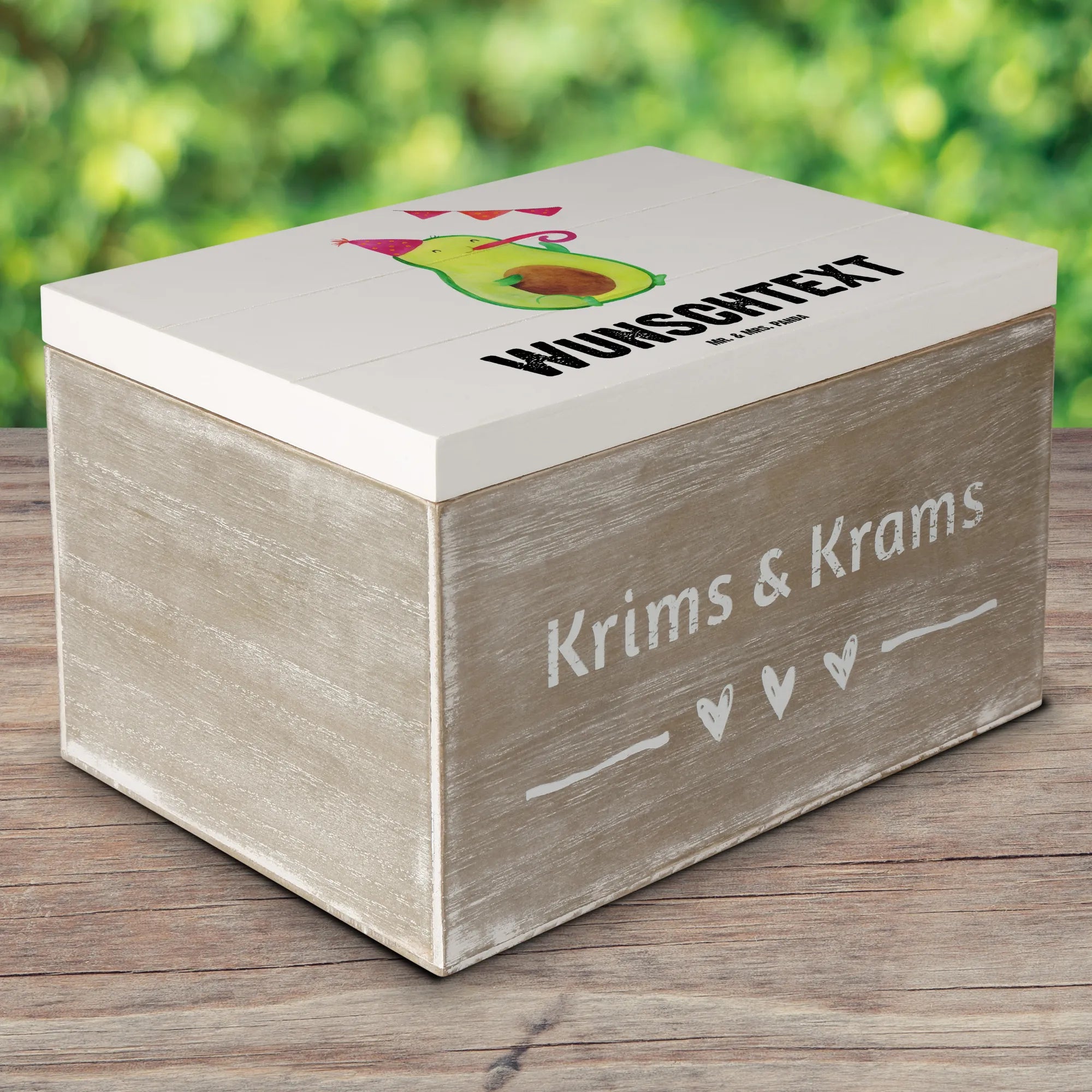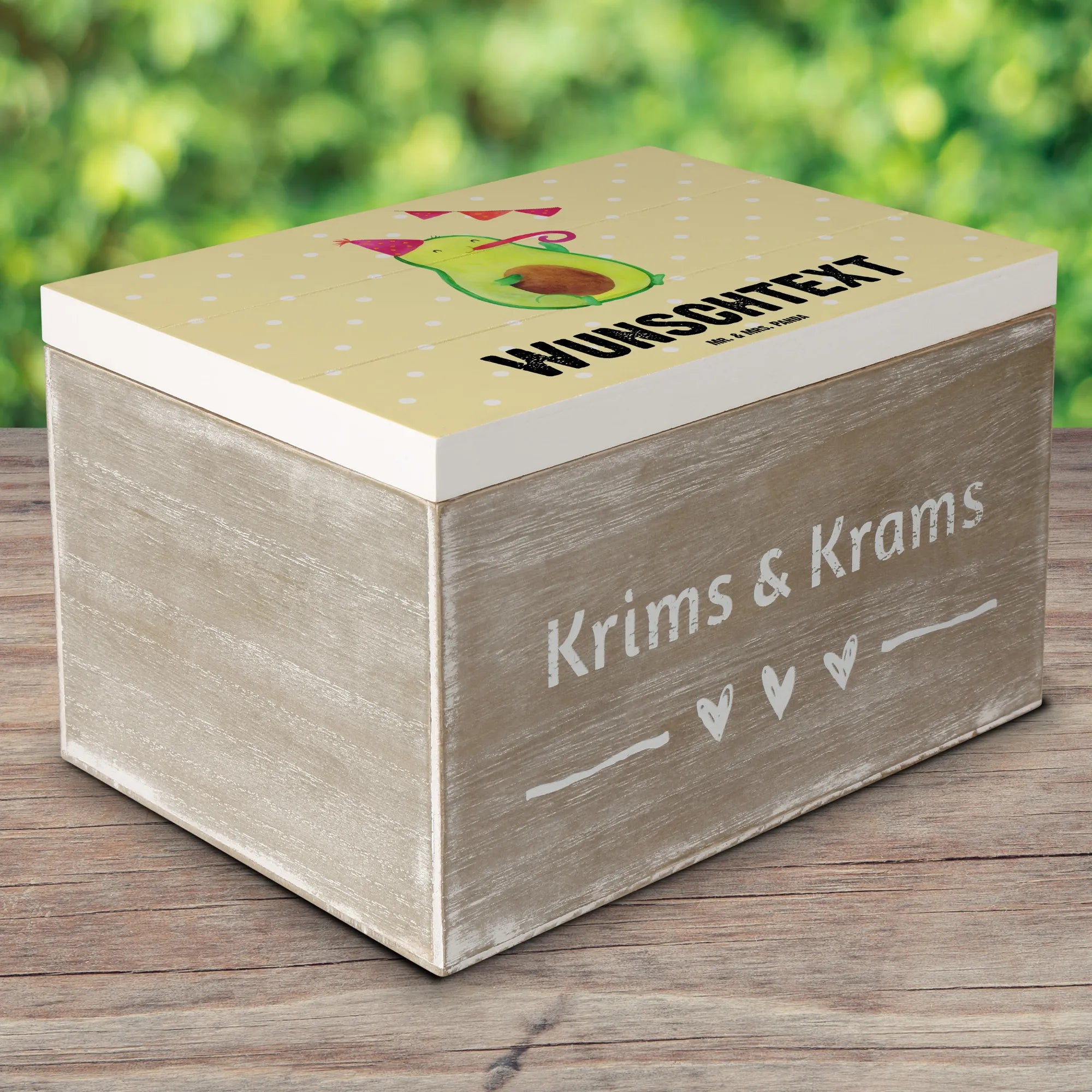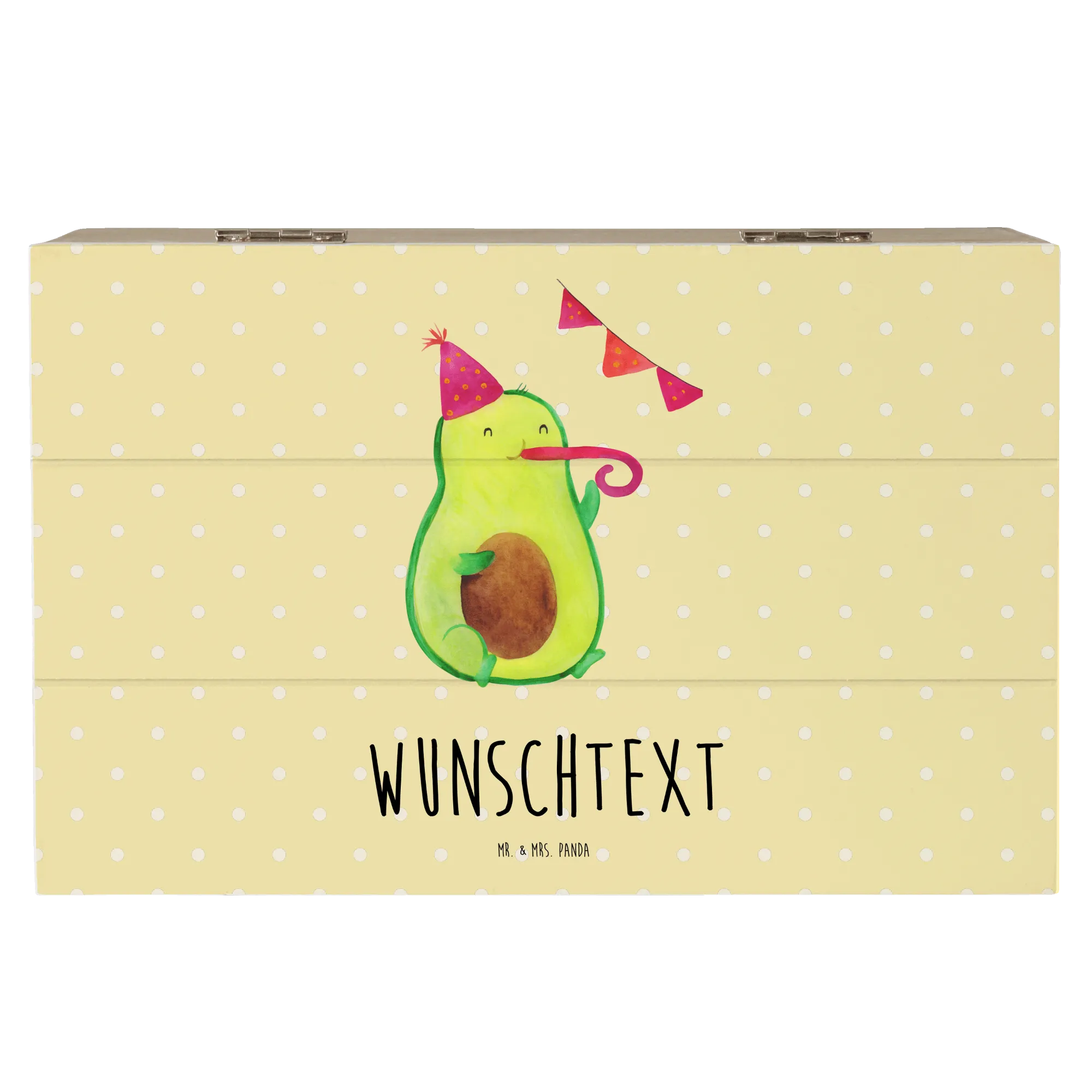 Personalizowane drewniane pudełko Awokado Impreza - 22 x 15 cm - Żółty Pastel