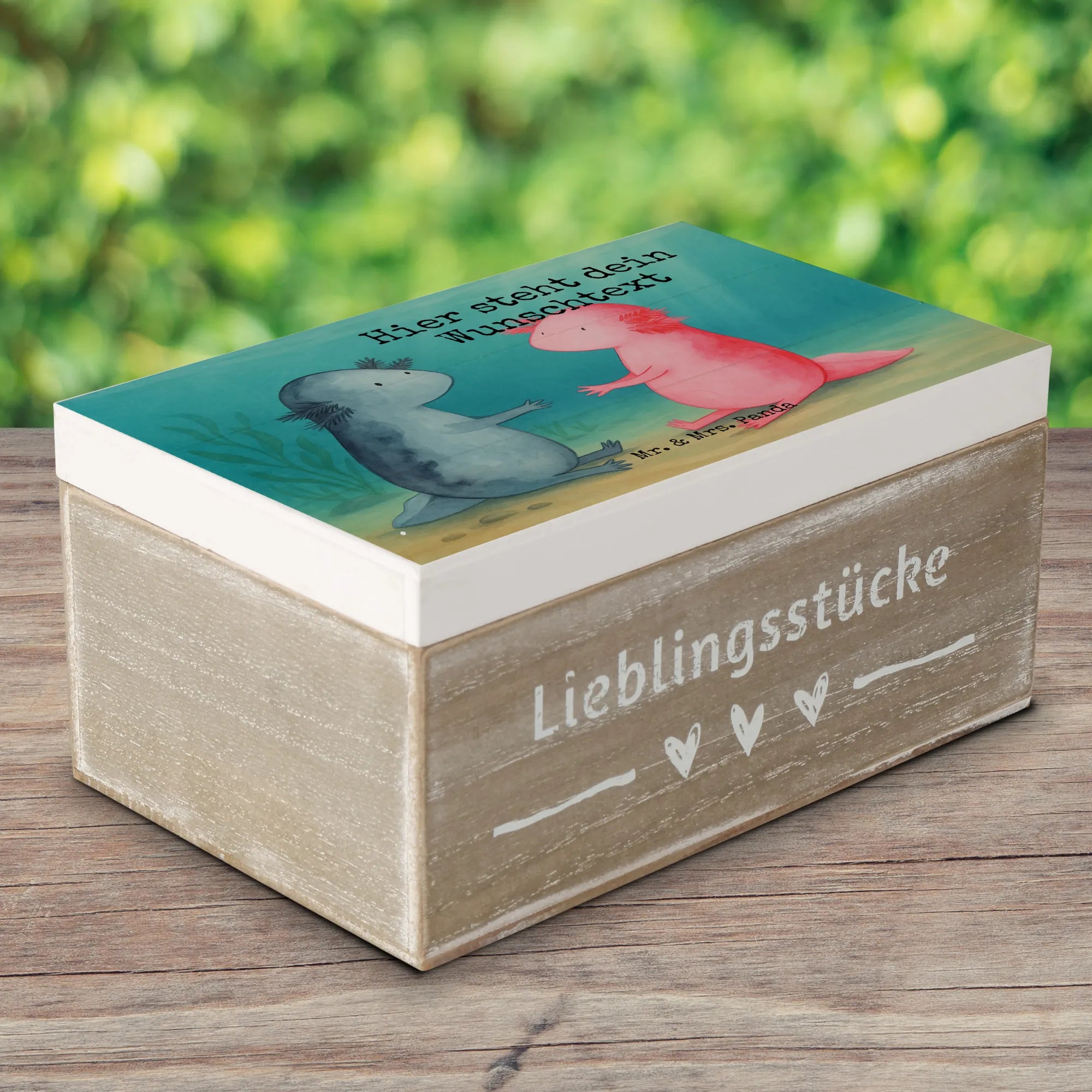 Personalizowane drewniane pudełko Axolotl miłość Design - 19 x 12 cm