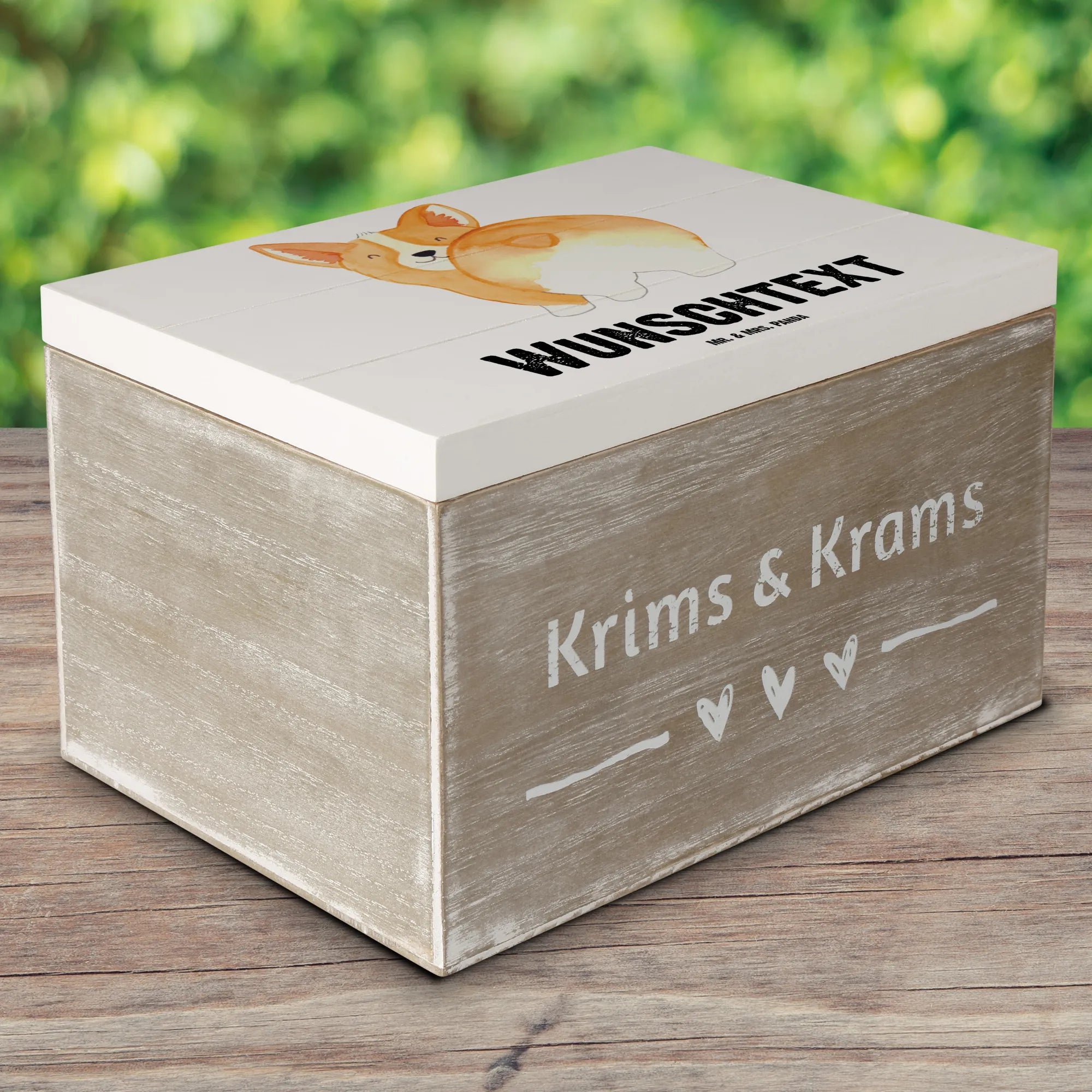 Personalizowane drewniane pudełko Corgi tyłek - 25 x 18 cm - Hundeglück