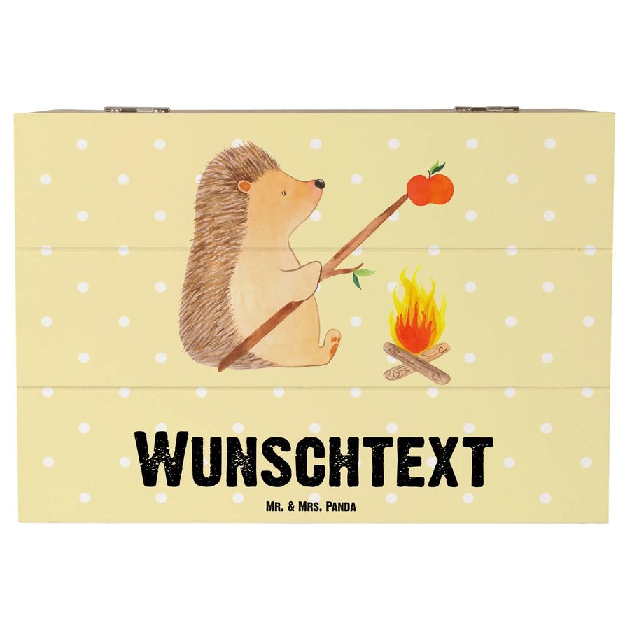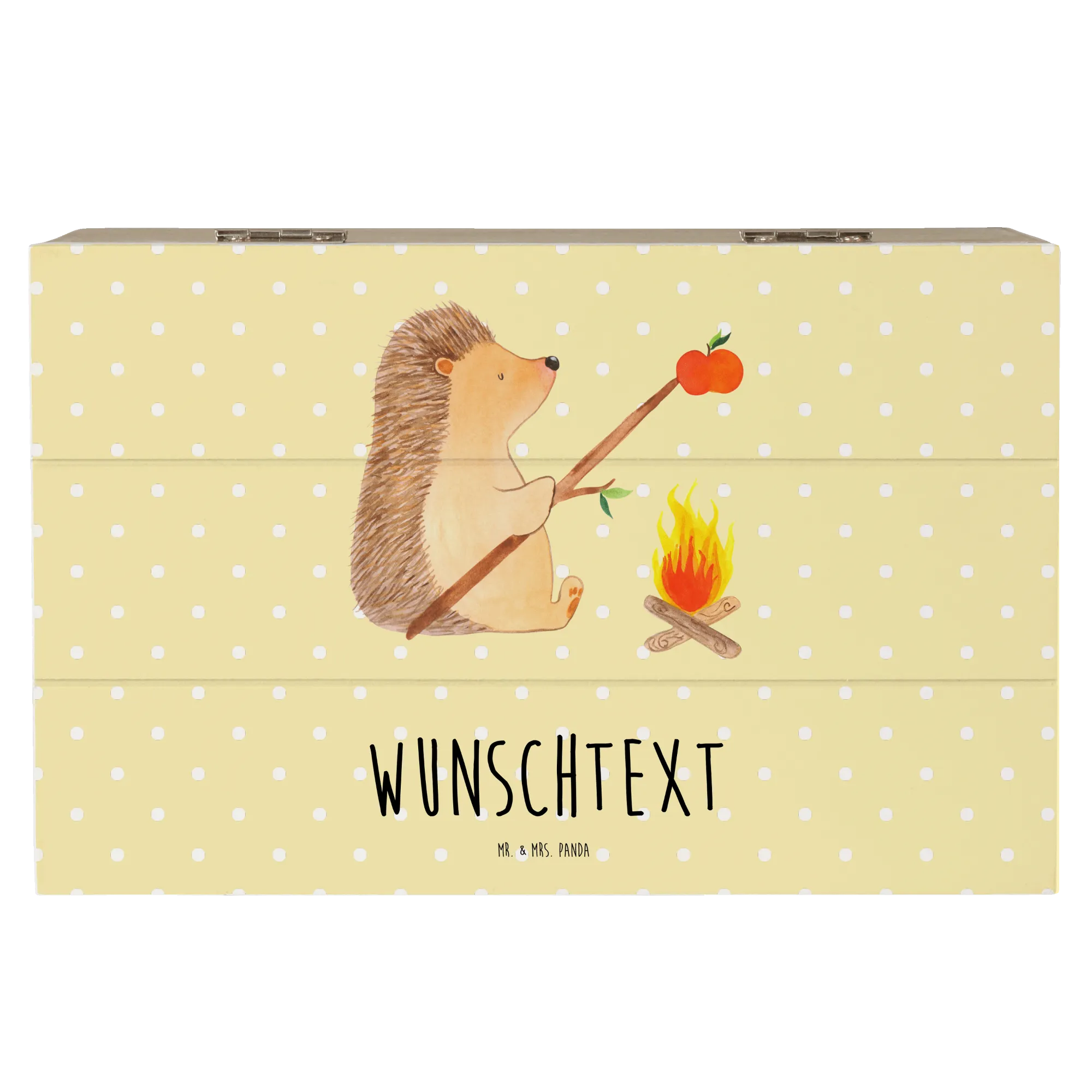 Personalizowane drewniane pudełko jeż Grillowanie - 22 x 15 cm - Żółty Pastel