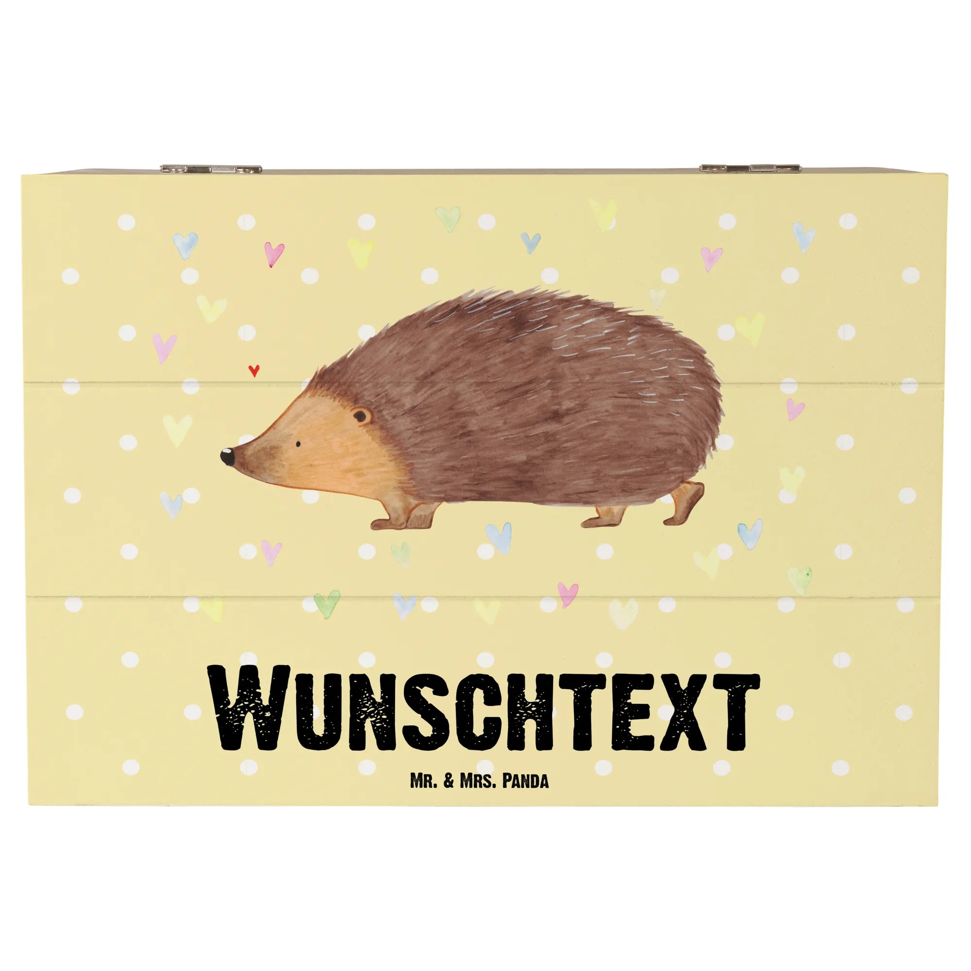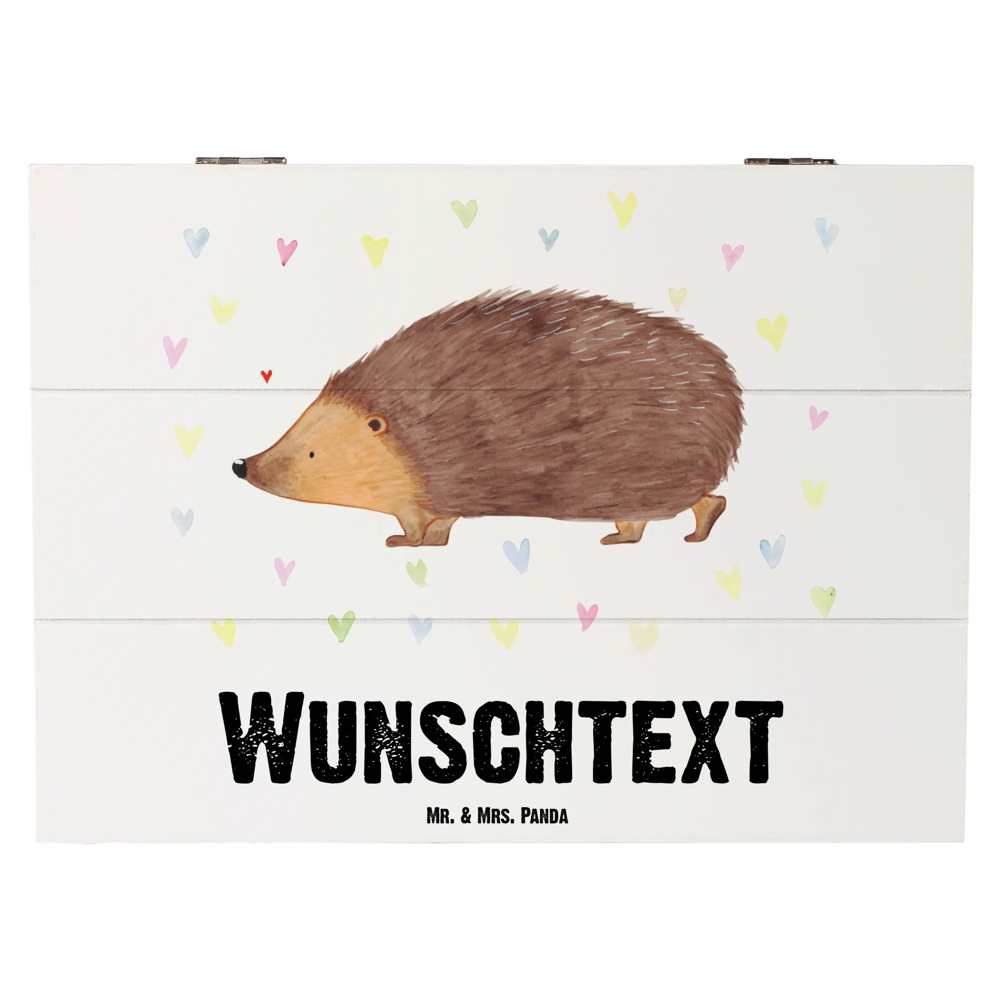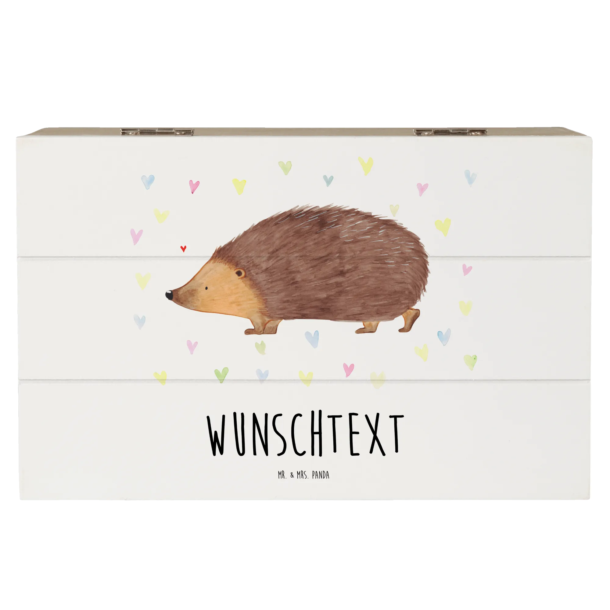 Personalizowane drewniane pudełko jeż serca - 25 x 18 cm - biały