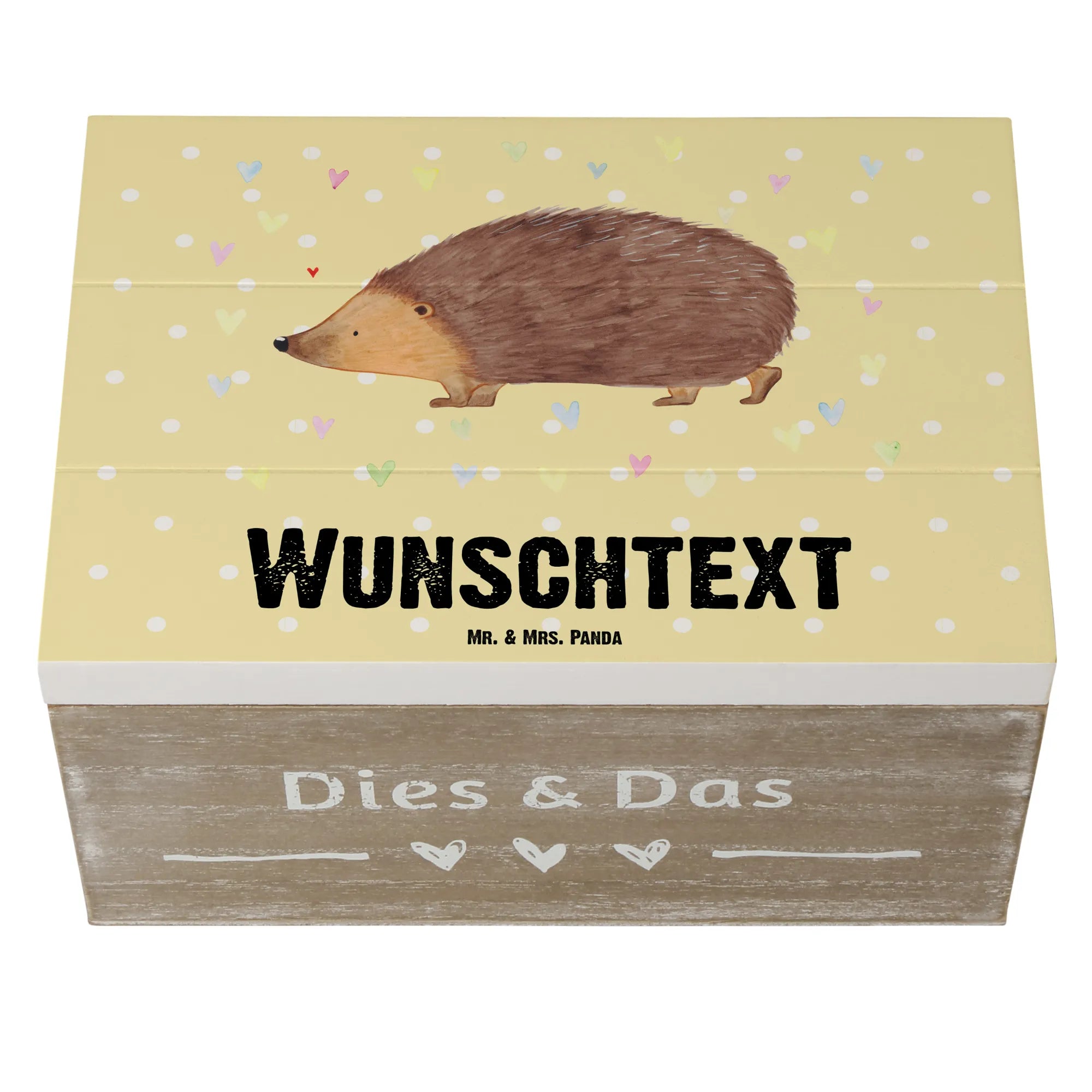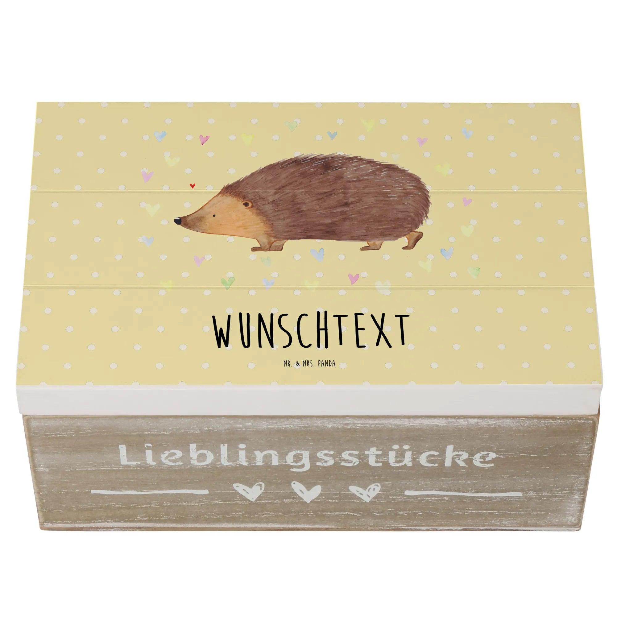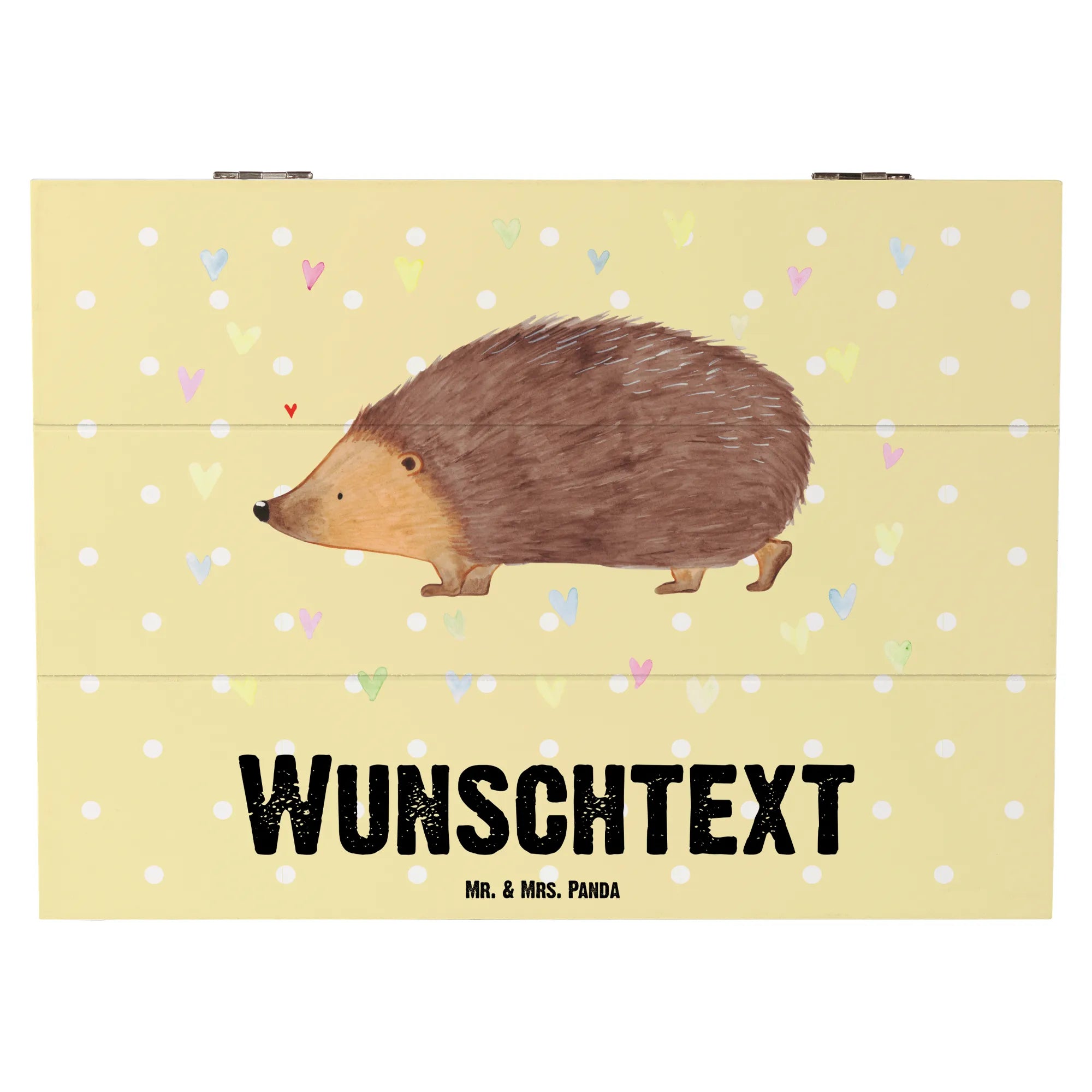 Personalizowane drewniane pudełko jeż serca - 25 x 18 cm - biały