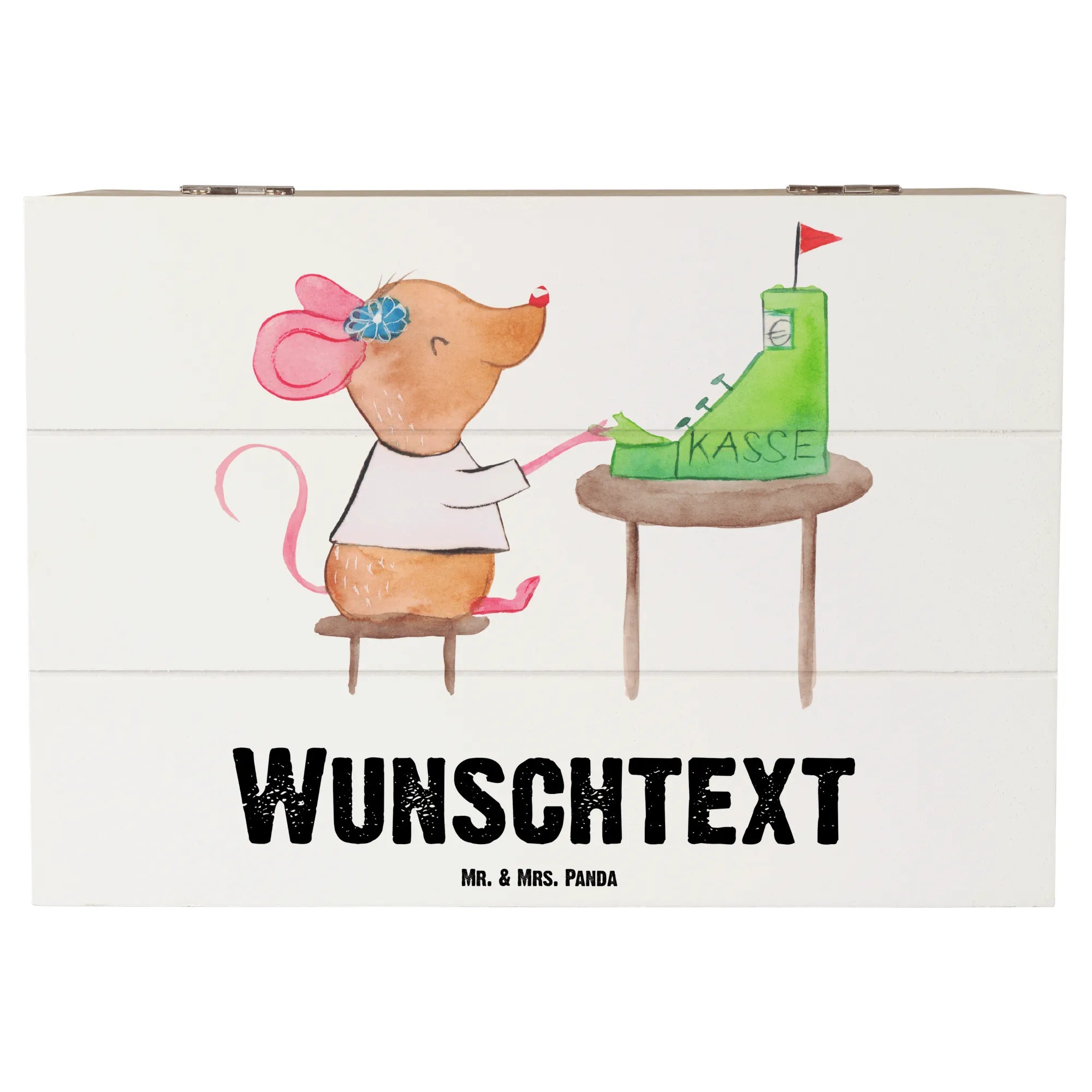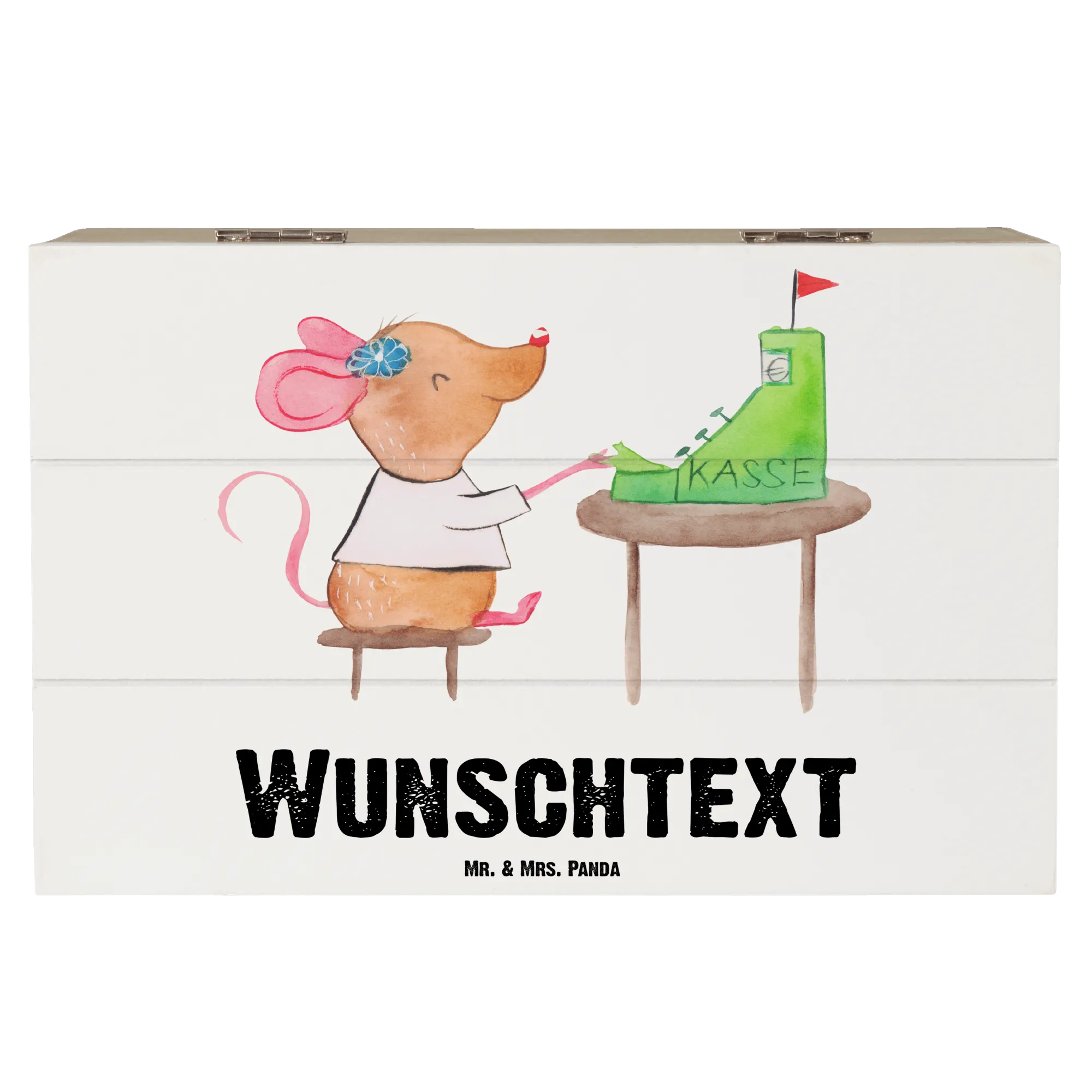 Personalizowane drewniane pudełko Kasjerka serce - 22 x 15 cm - Biały