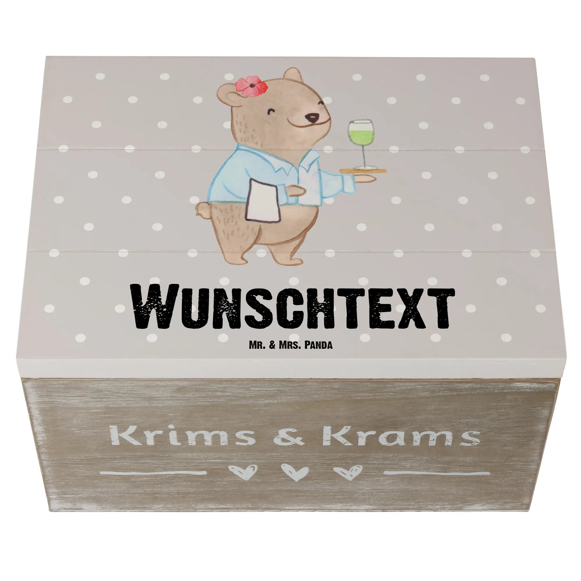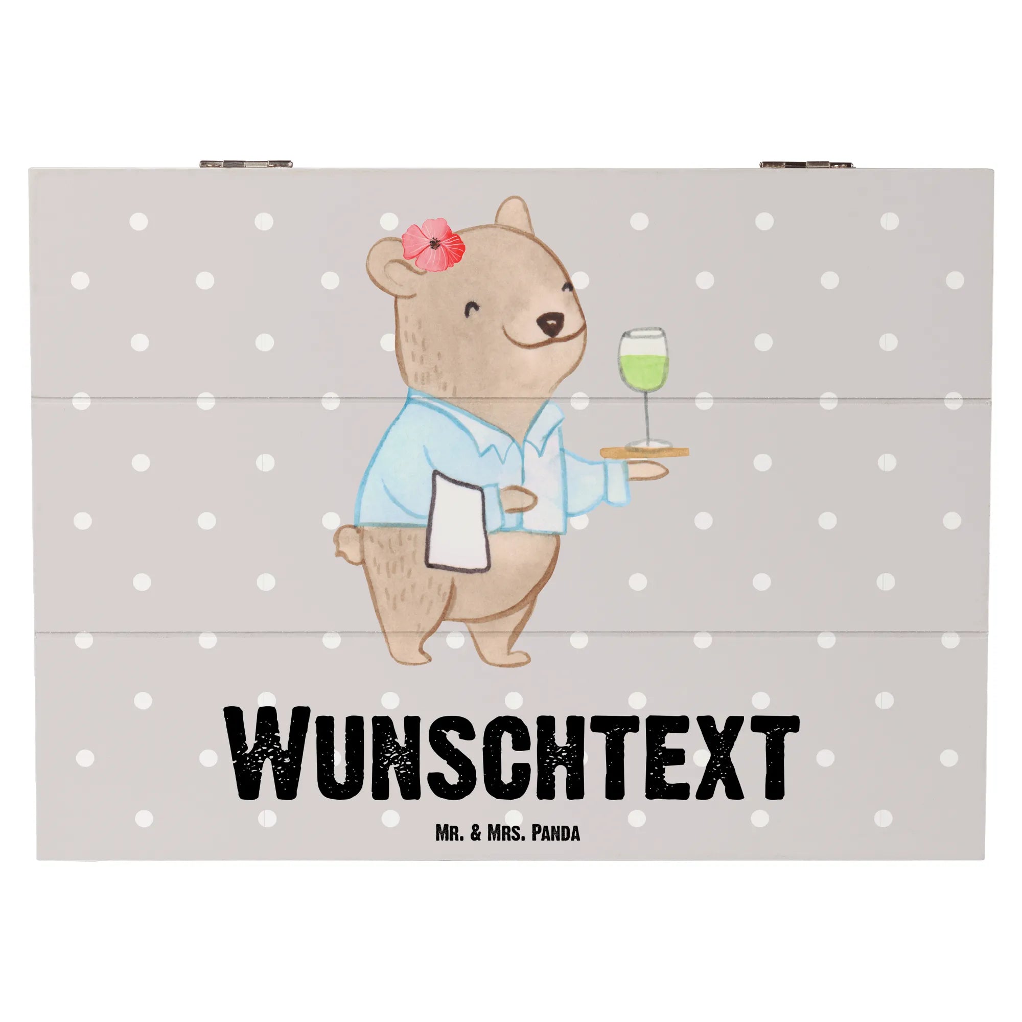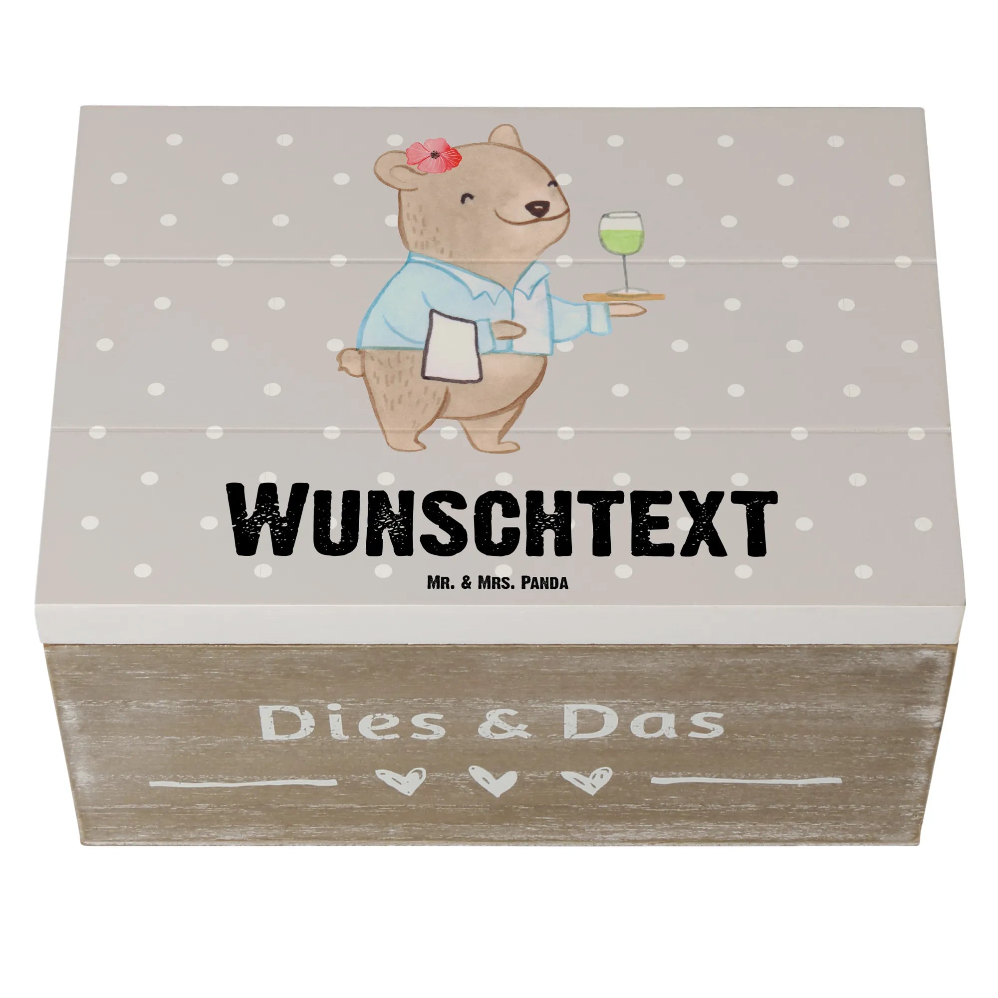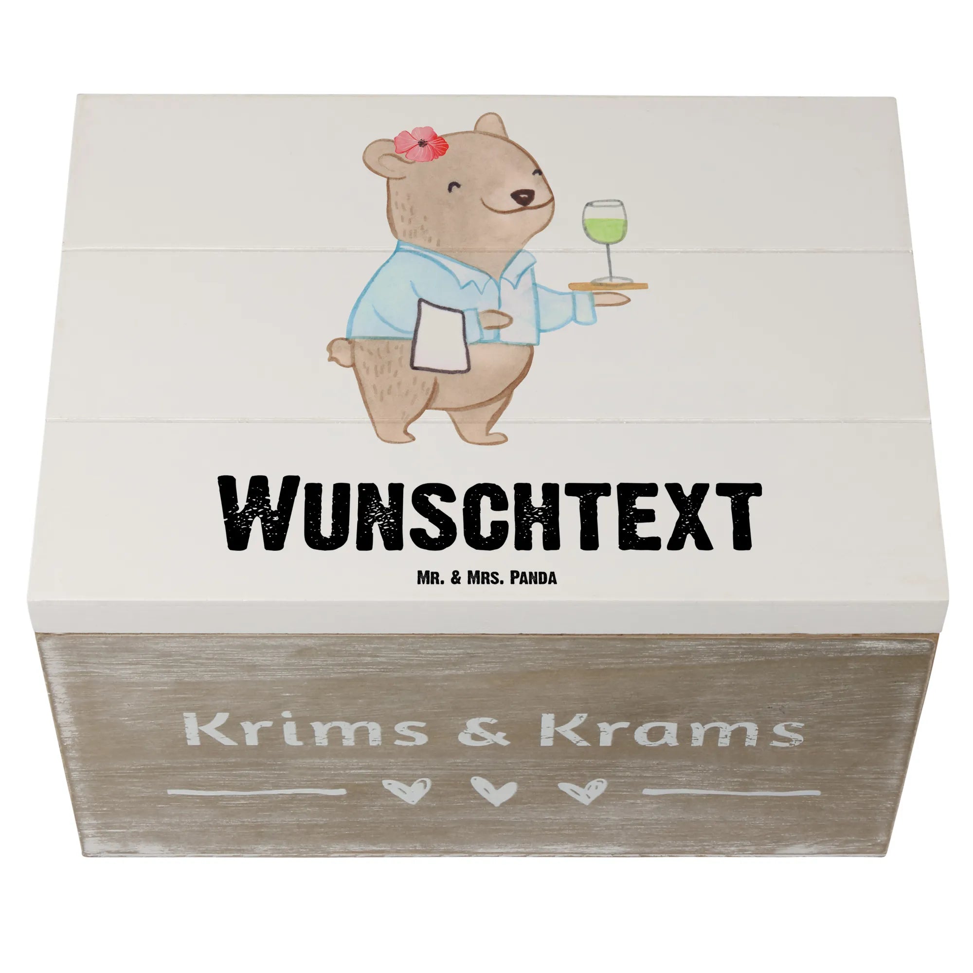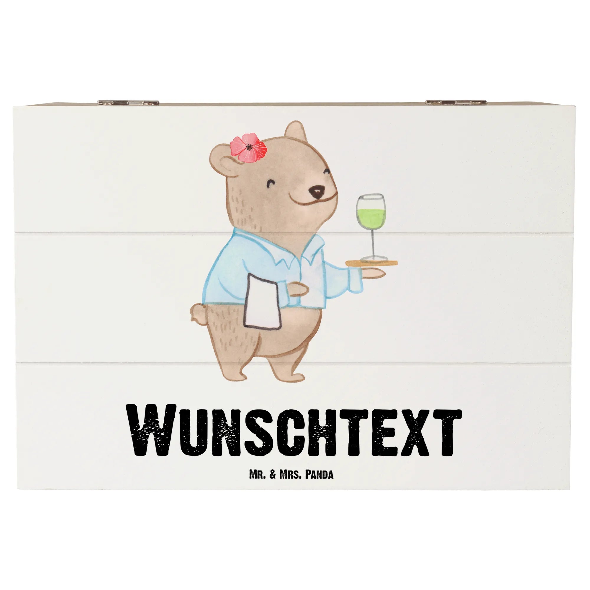 Personalizowane drewniane pudełko Kelnerka serce - 22 x 15 cm - biały
