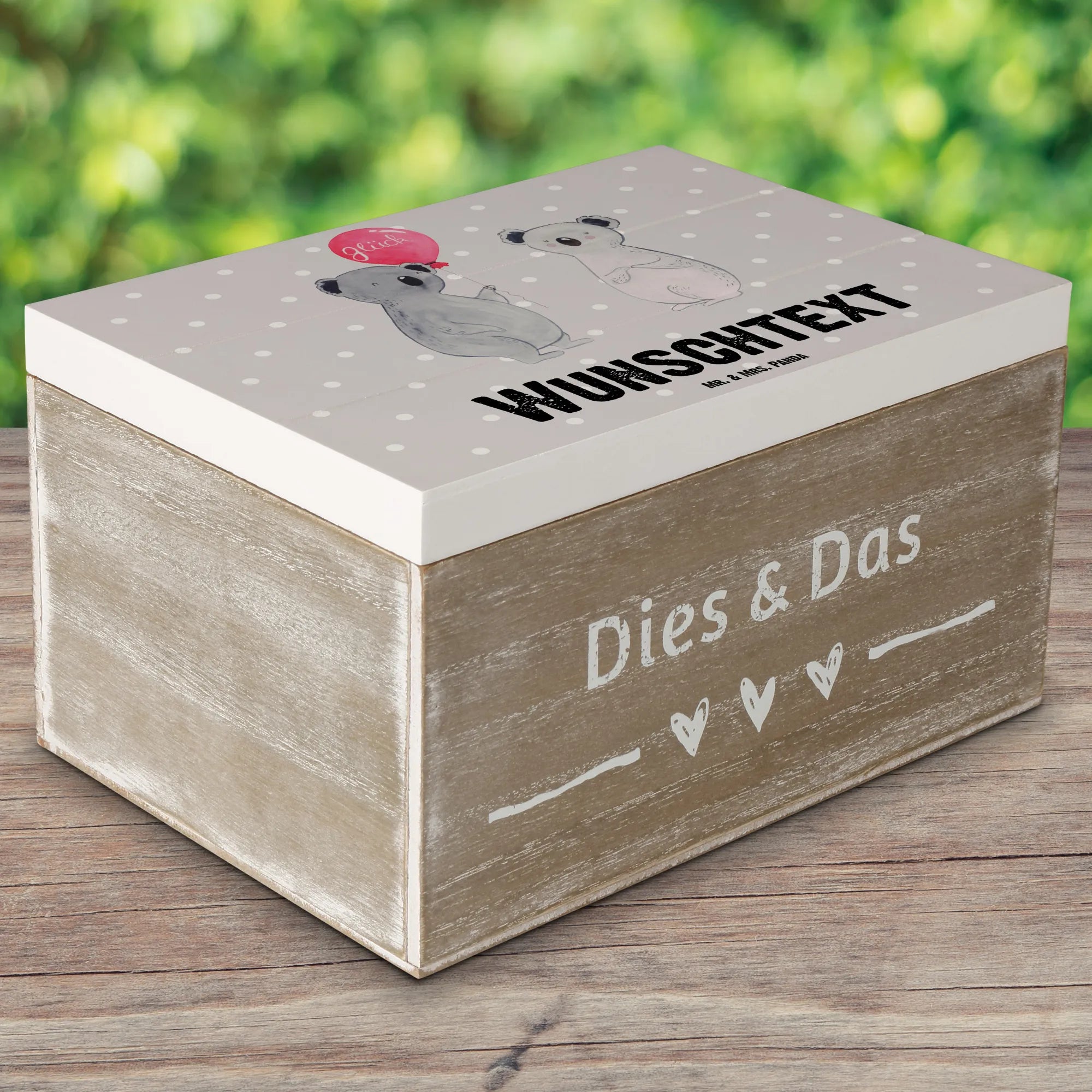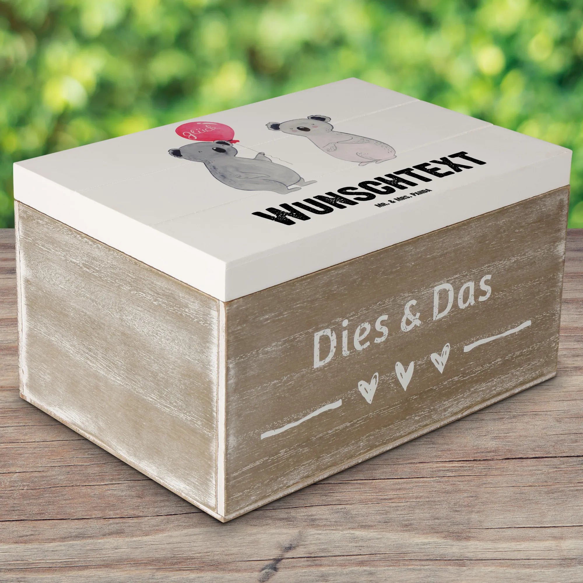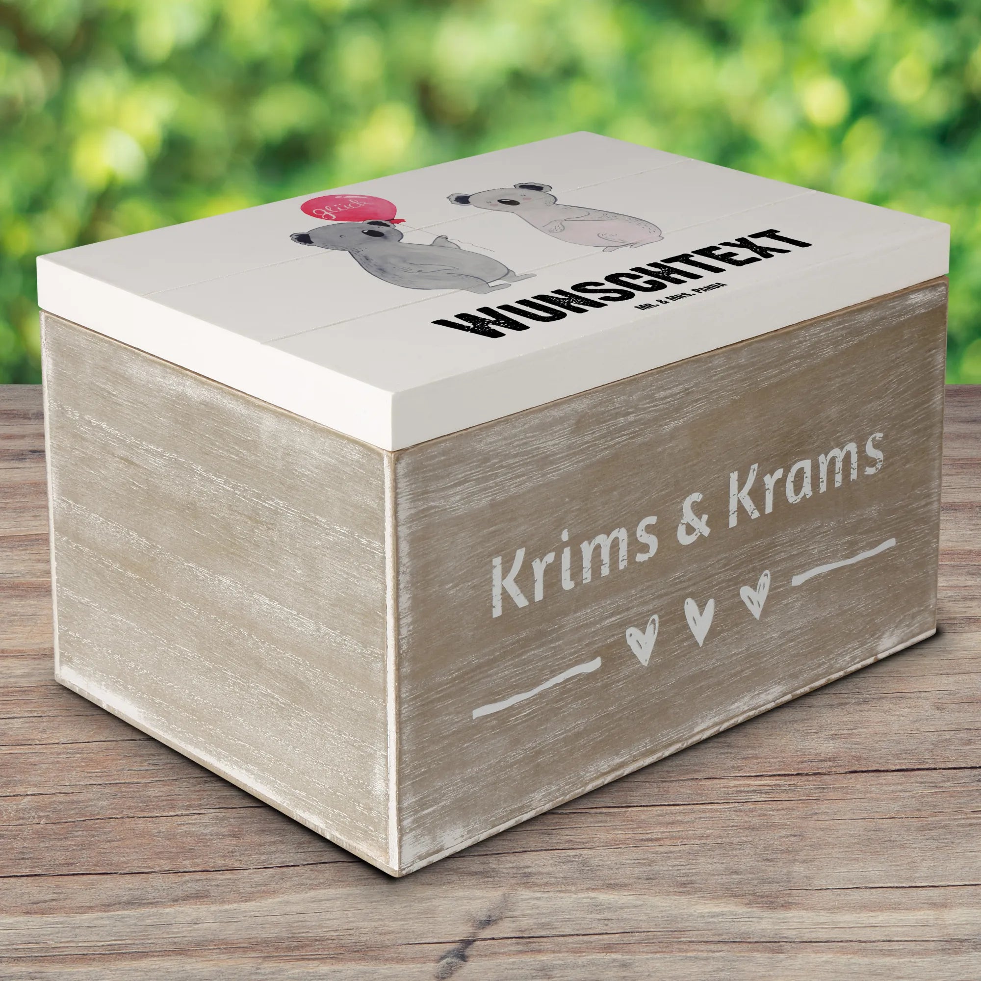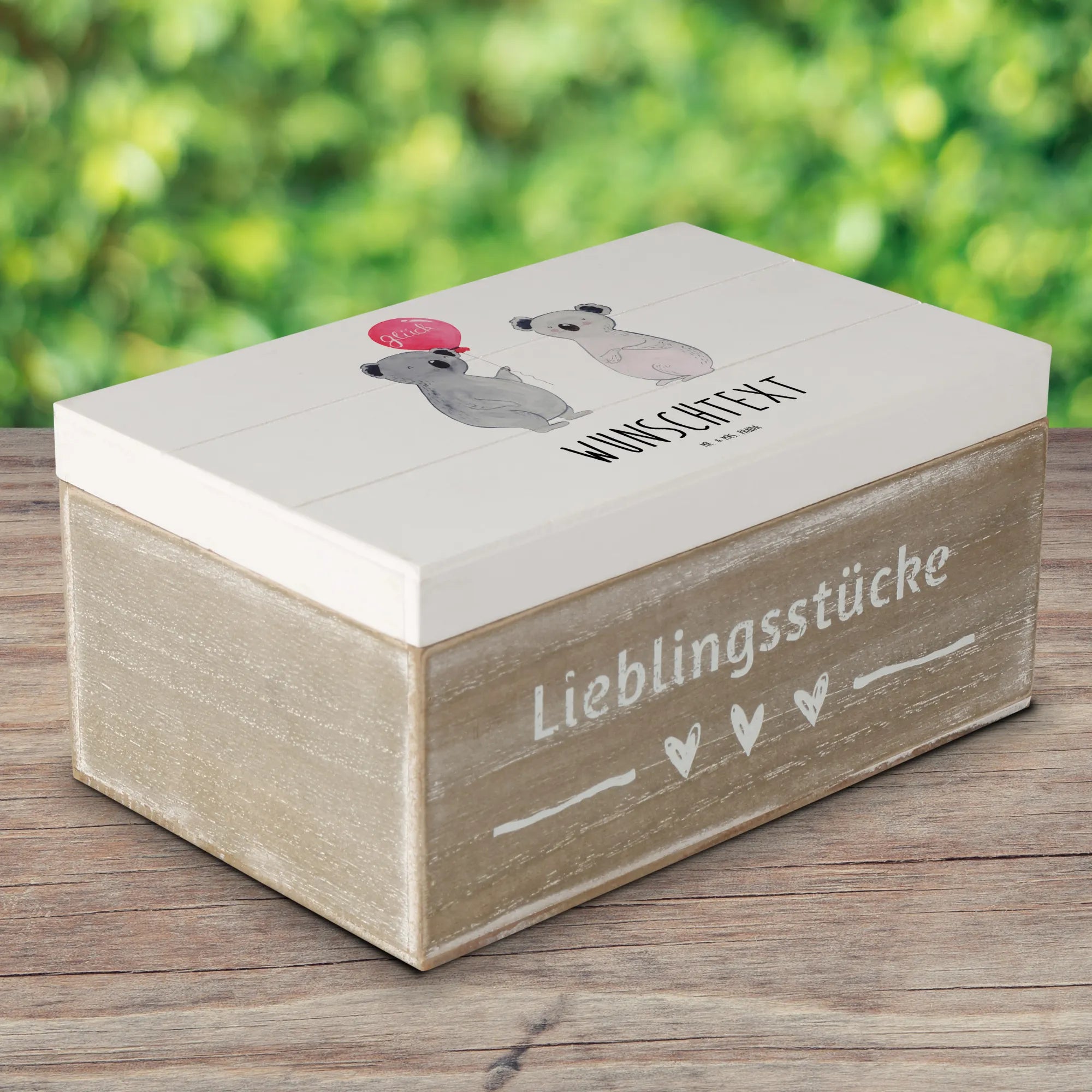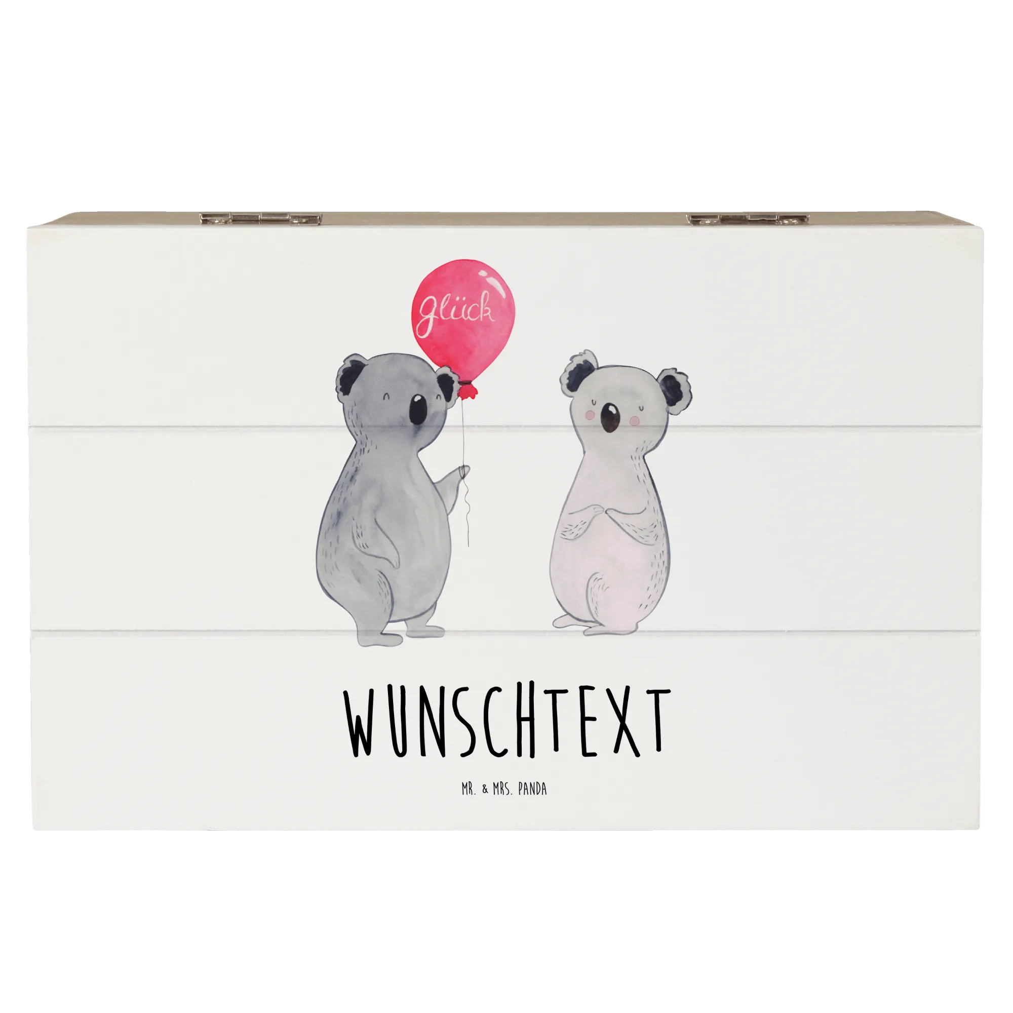 Personalizowane drewniane pudełko koala balon - 22 x 15 cm - biały