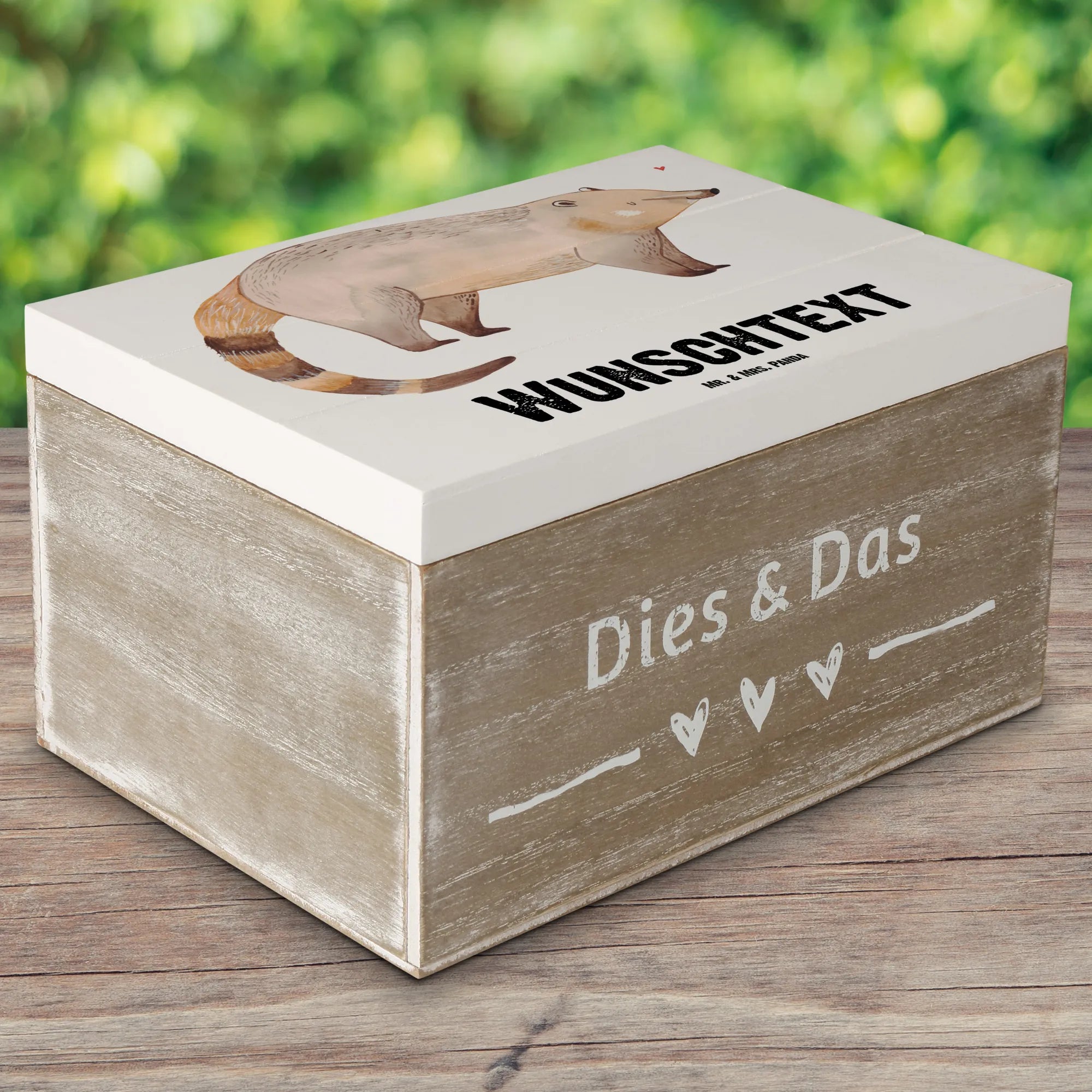 Personalizowane drewniane pudełko Koati - 22 x 15 cm - Biały