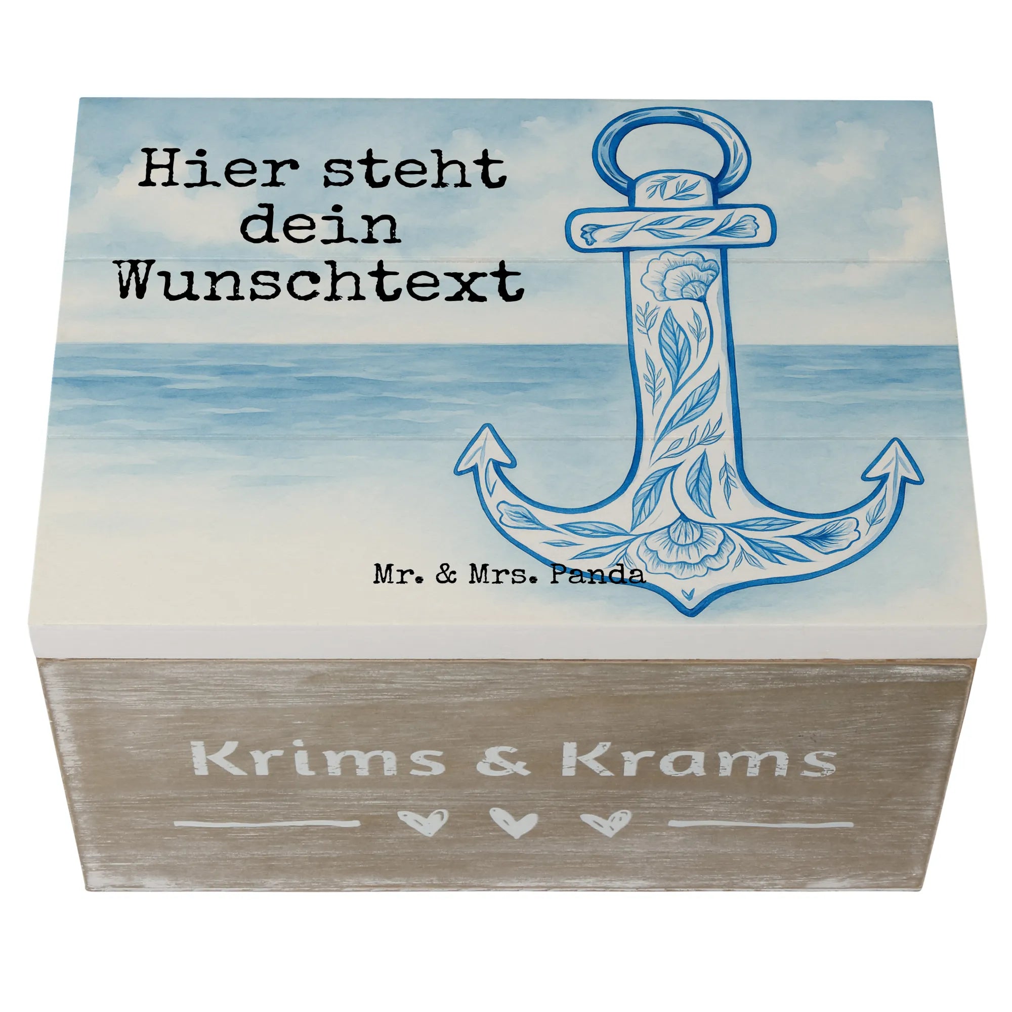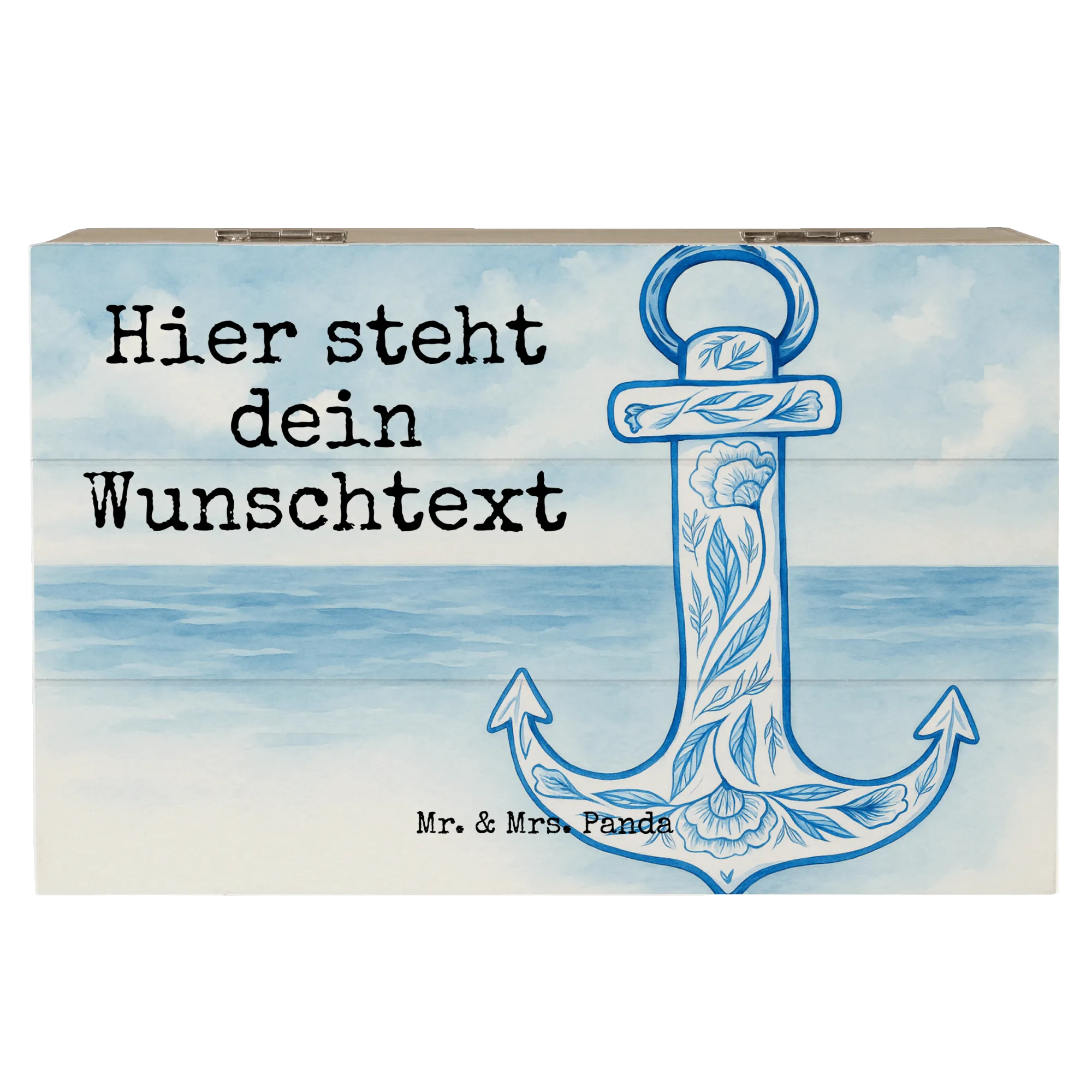 Personalizowane drewniane pudełko kotwica Niebieski Design - 22 x 15 cm