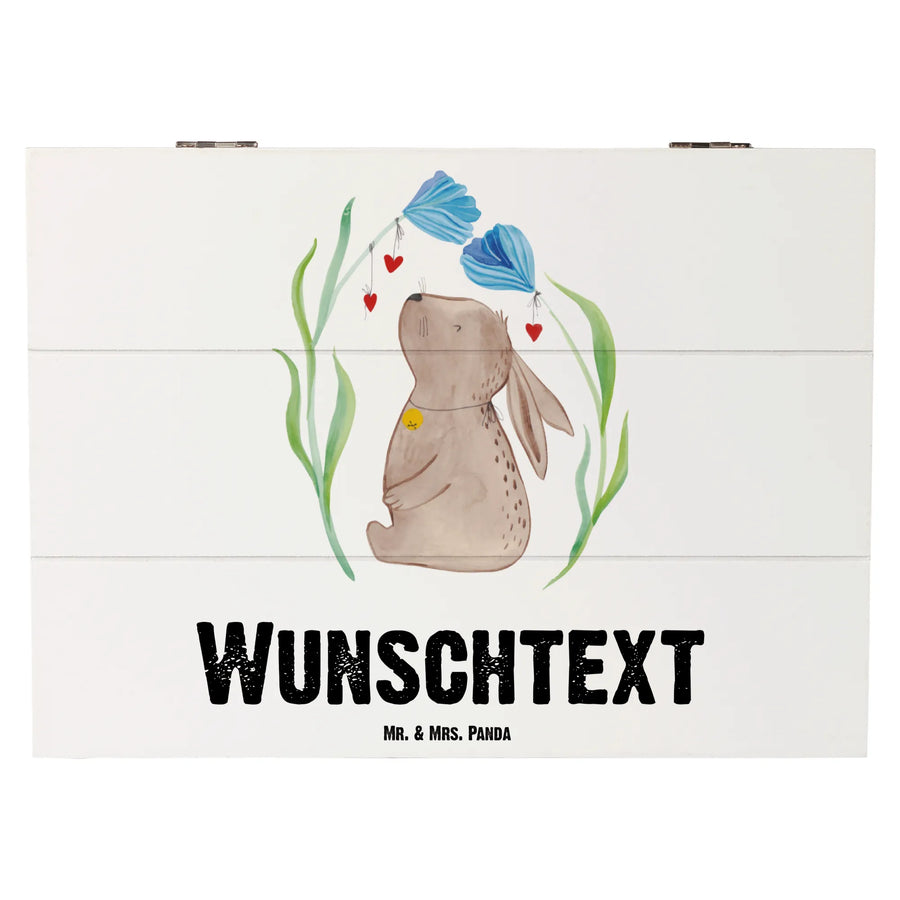 Personalizowane drewniane pudełko królik kwiat - 25 x 18 cm - biały