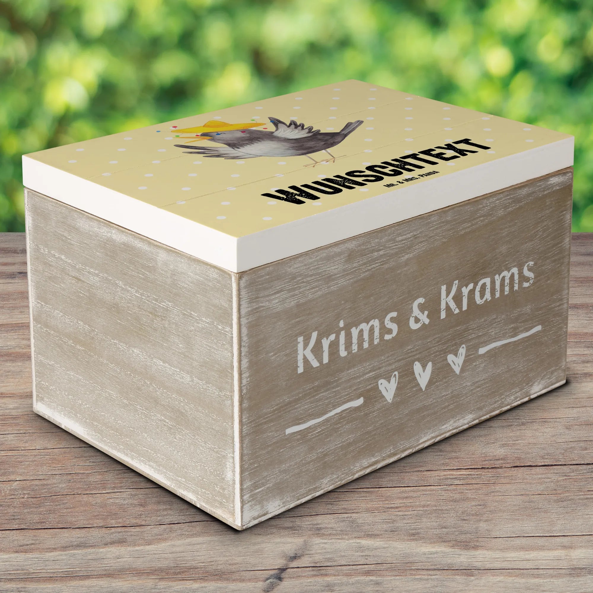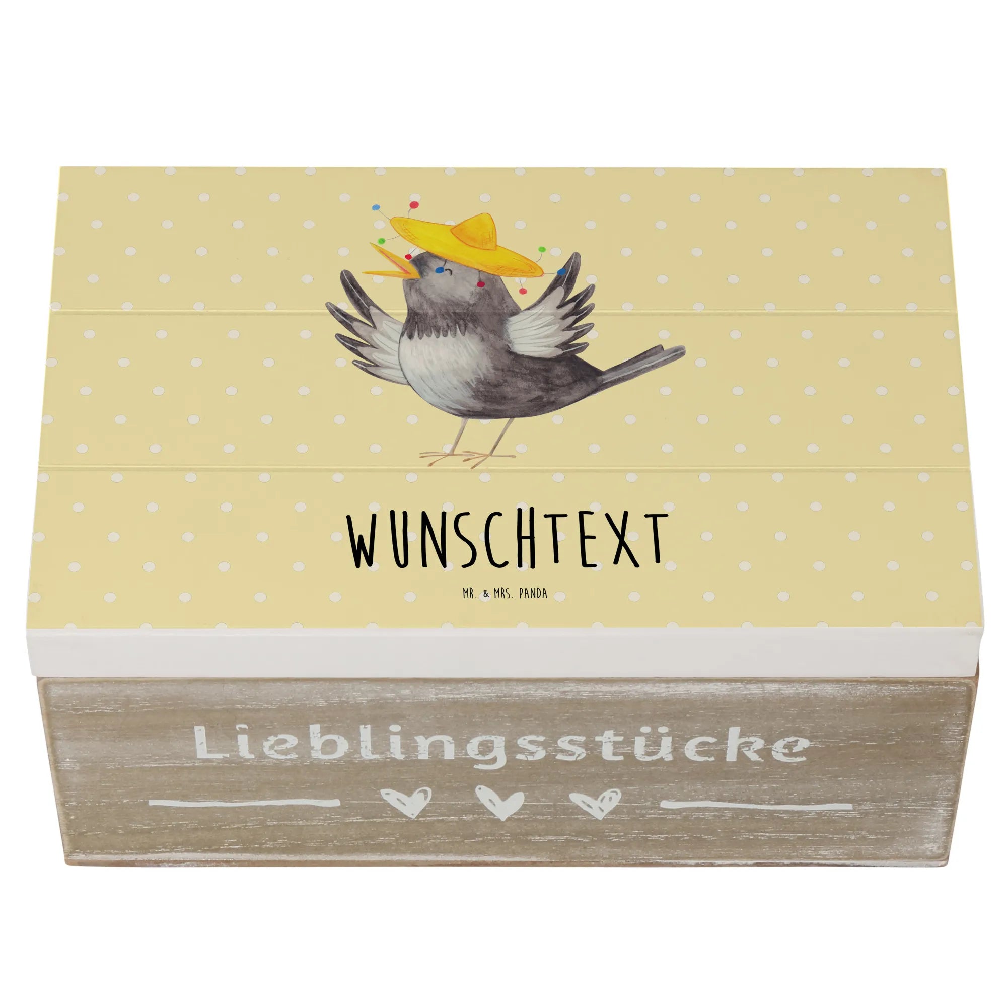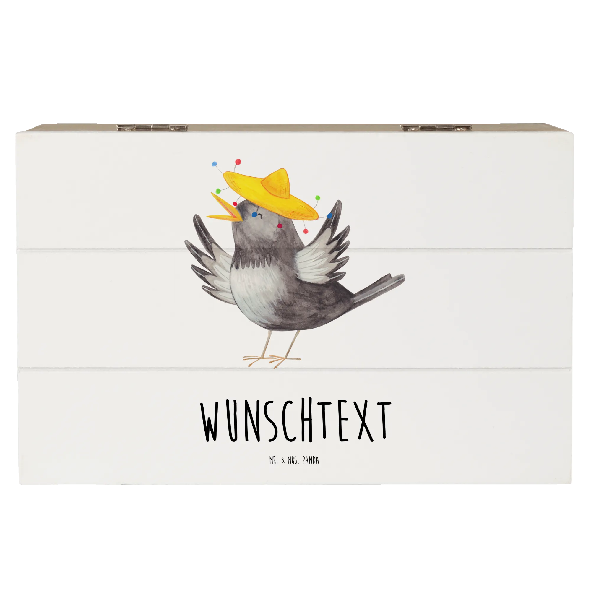 Personalizowane drewniane pudełko kruk Sombrero - 22 x 15 cm - Biały