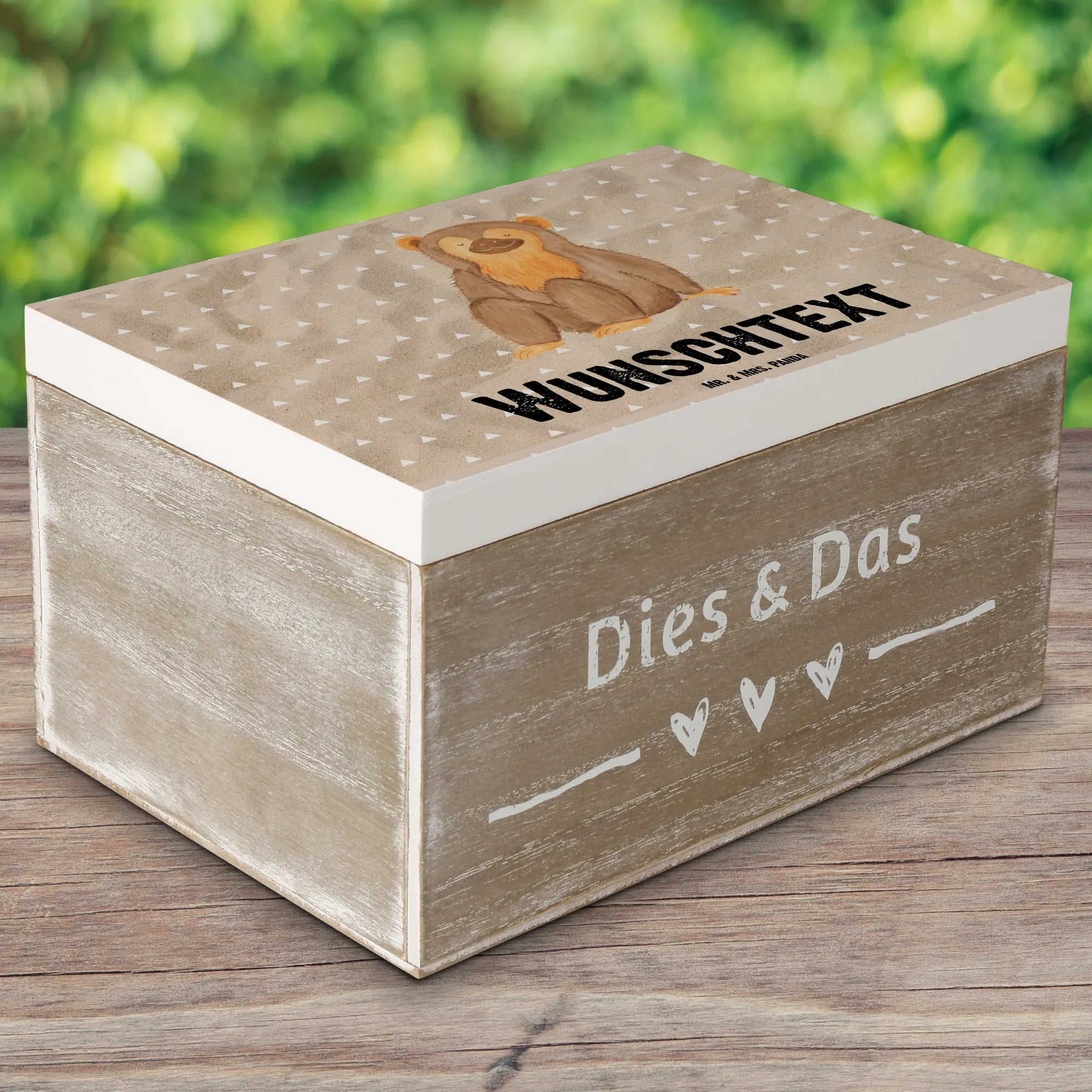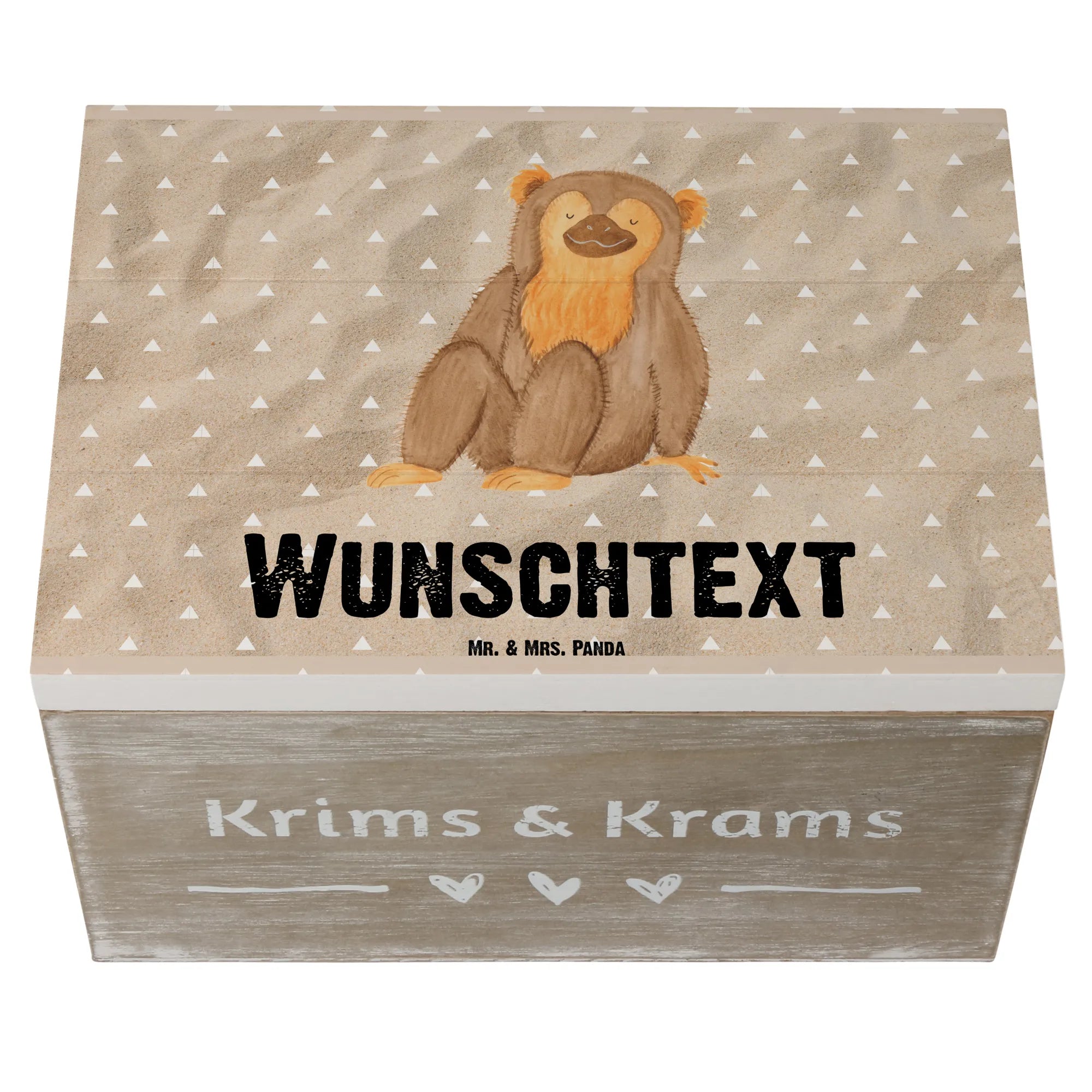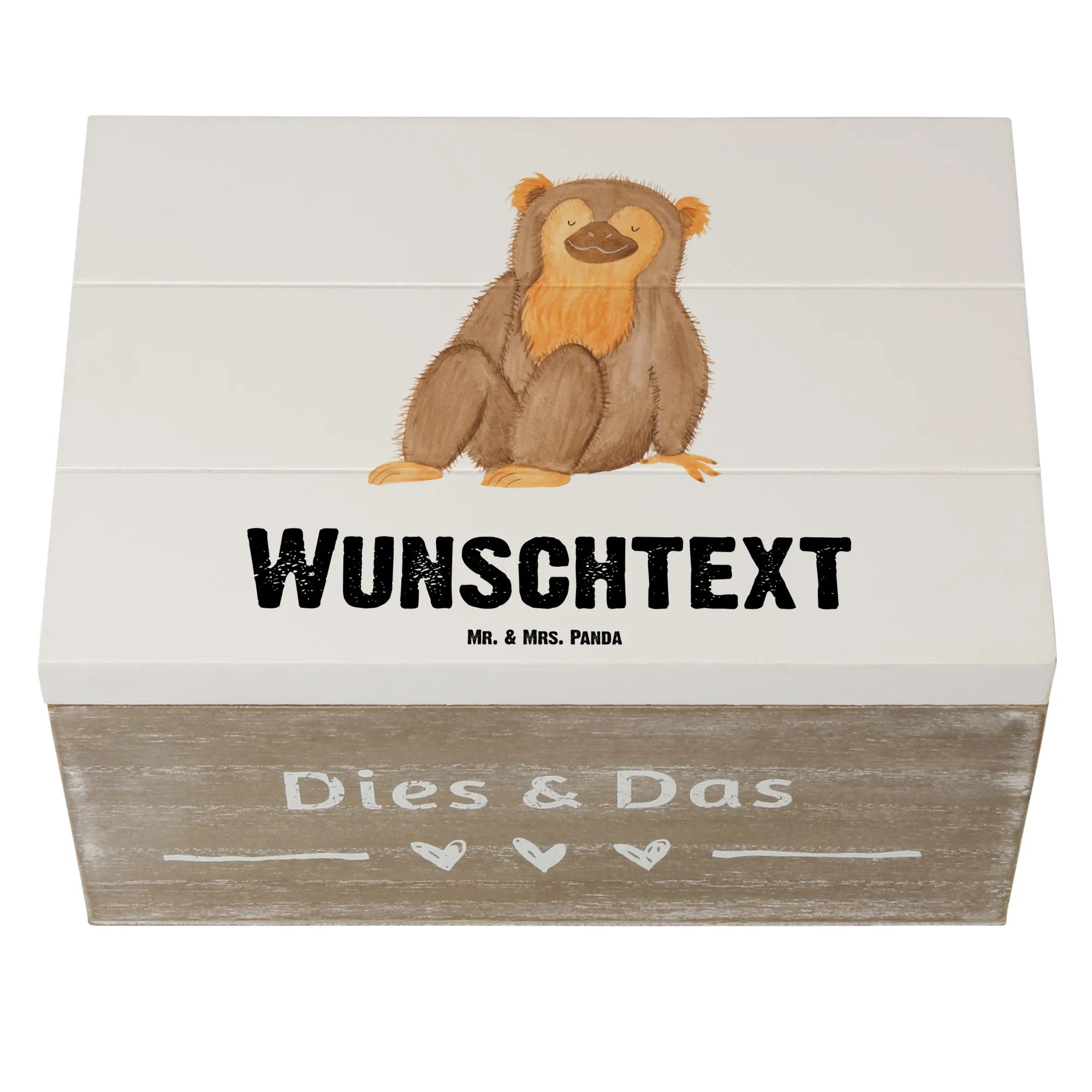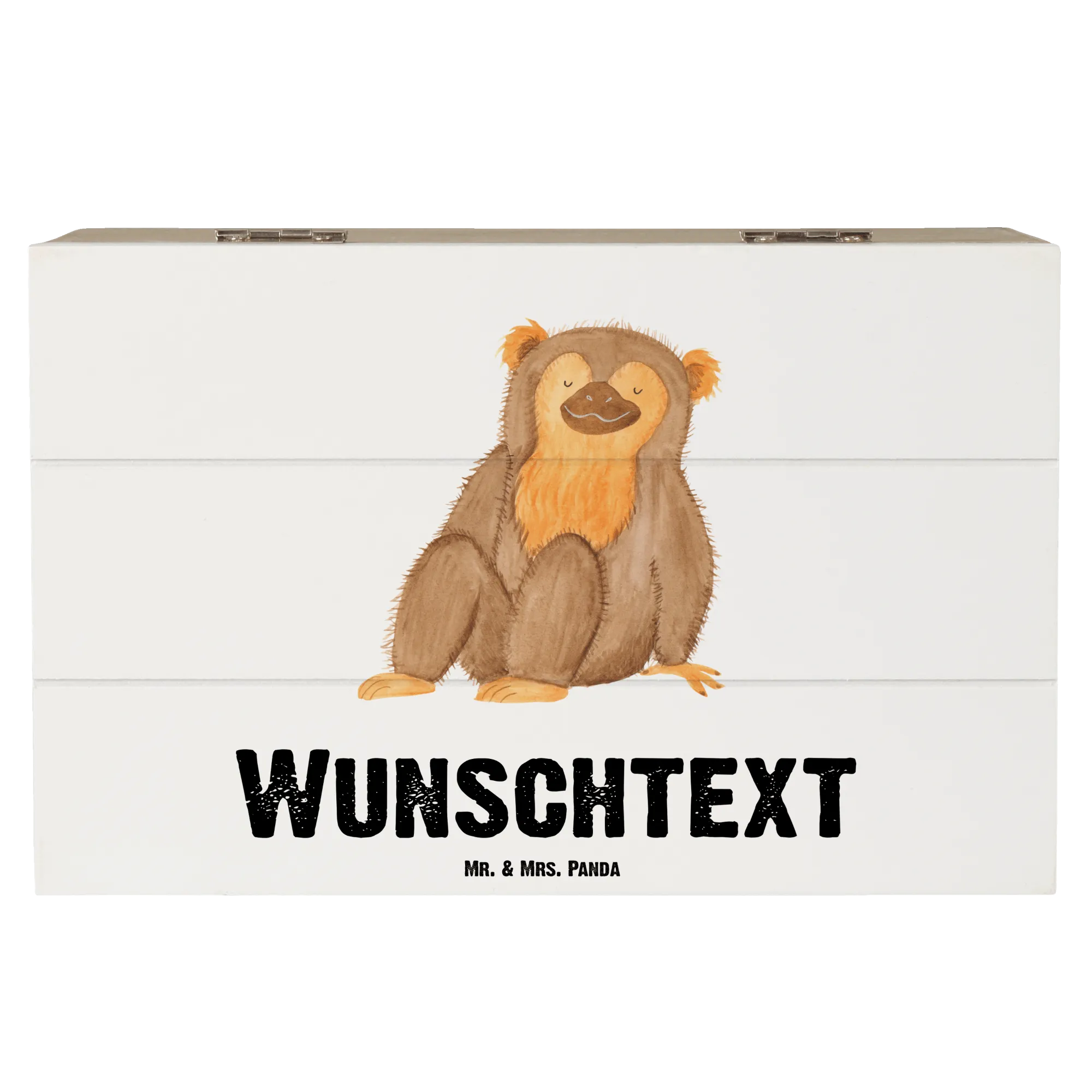 Personalizowane drewniane pudełko Małpa - 22 x 15 cm - biały