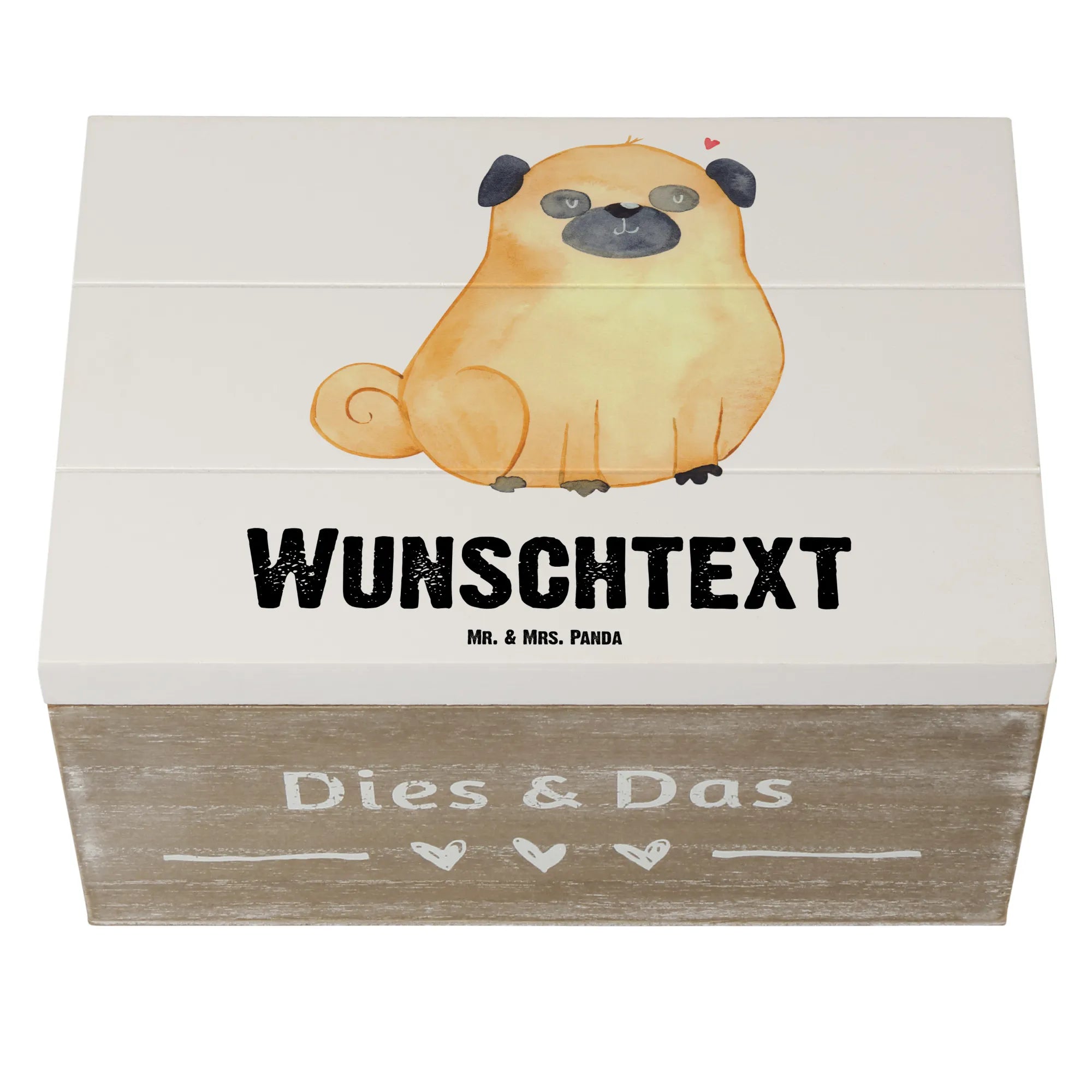 Personalizowane drewniane pudełko Mops - 25 x 18 cm - Hundeglück