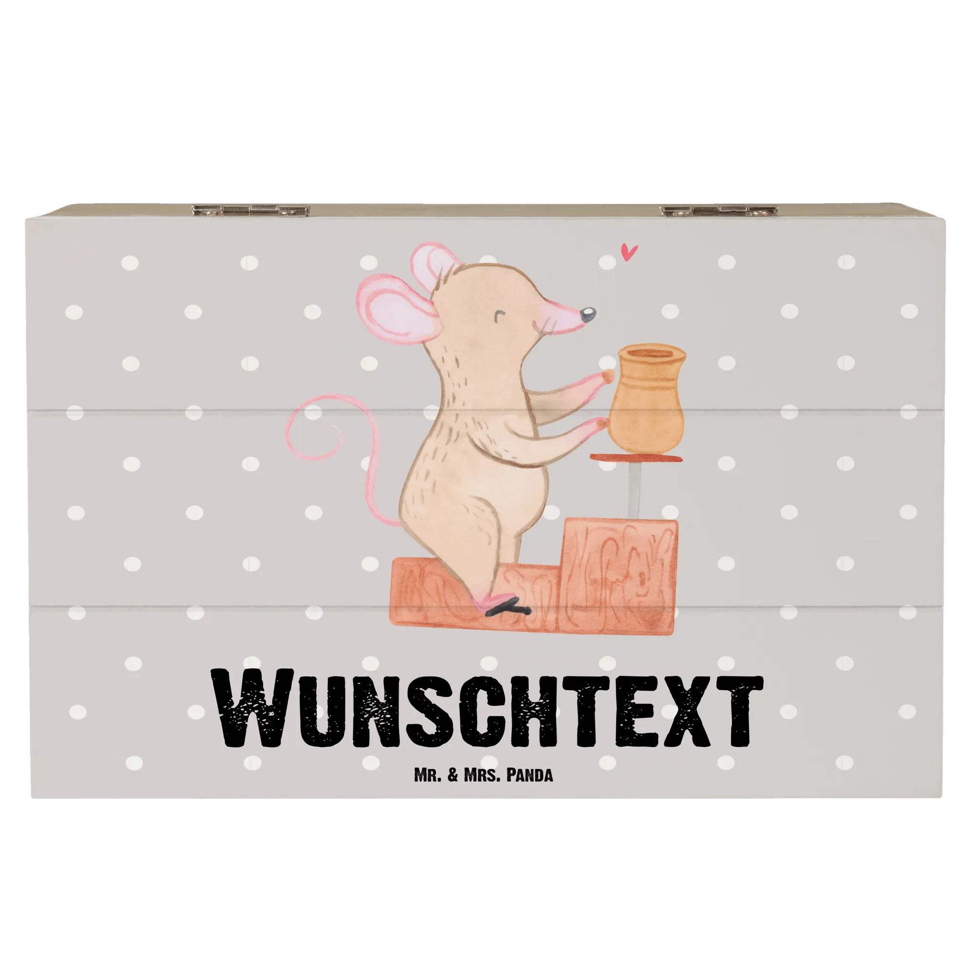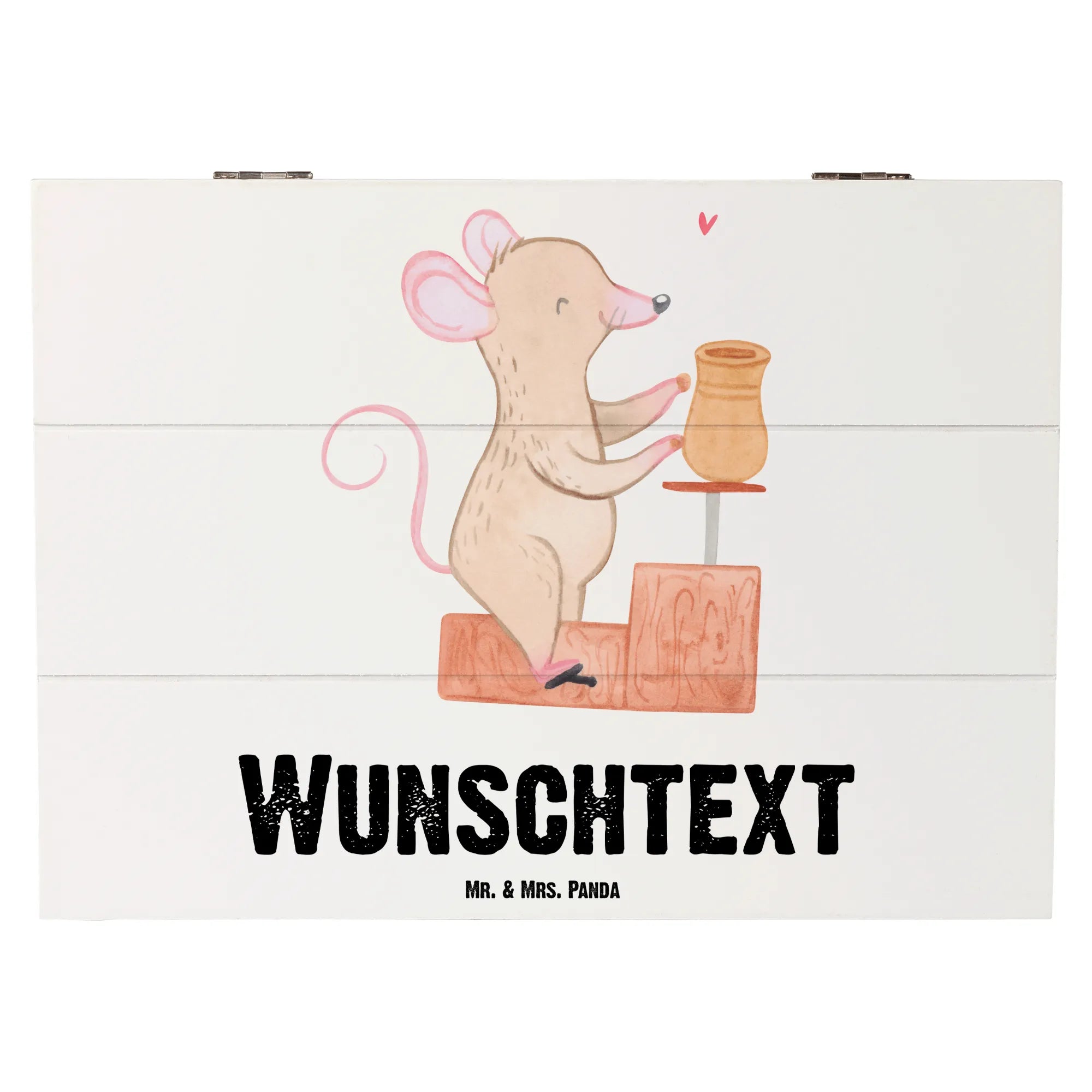 Personalizowane drewniane pudełko mysz garncarstwo - 22 x 15 cm - Biały