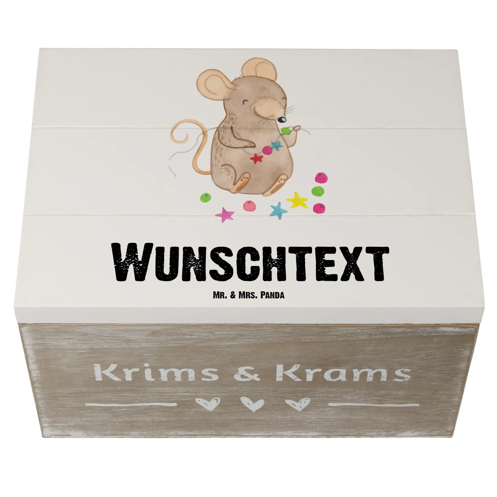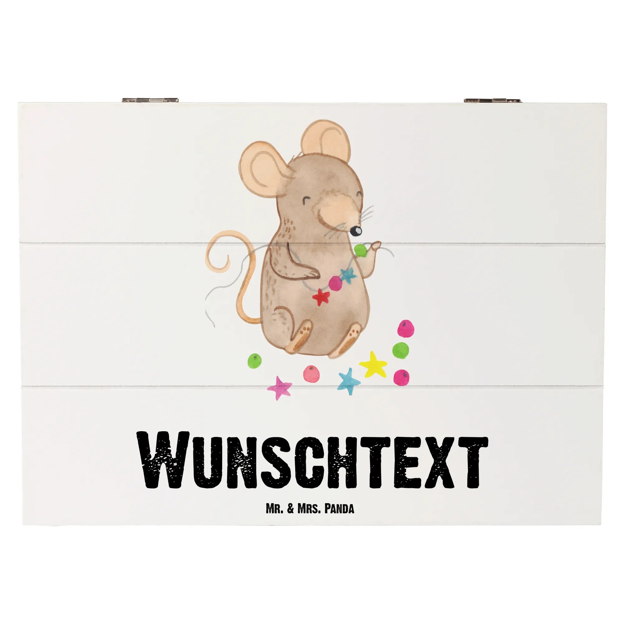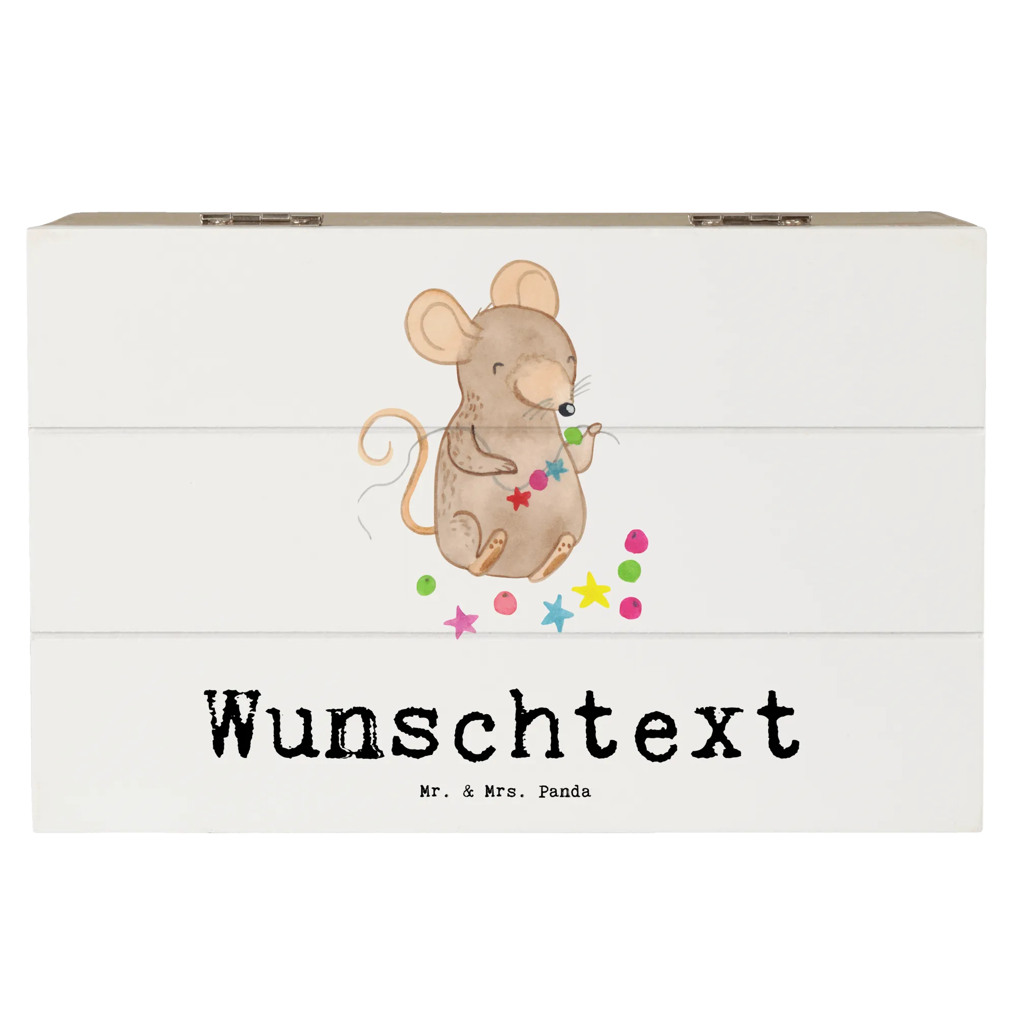 Personalizowane drewniane pudełko mysz Samodzielne tworzenie biżuterii - 22 x 15 cm - biały