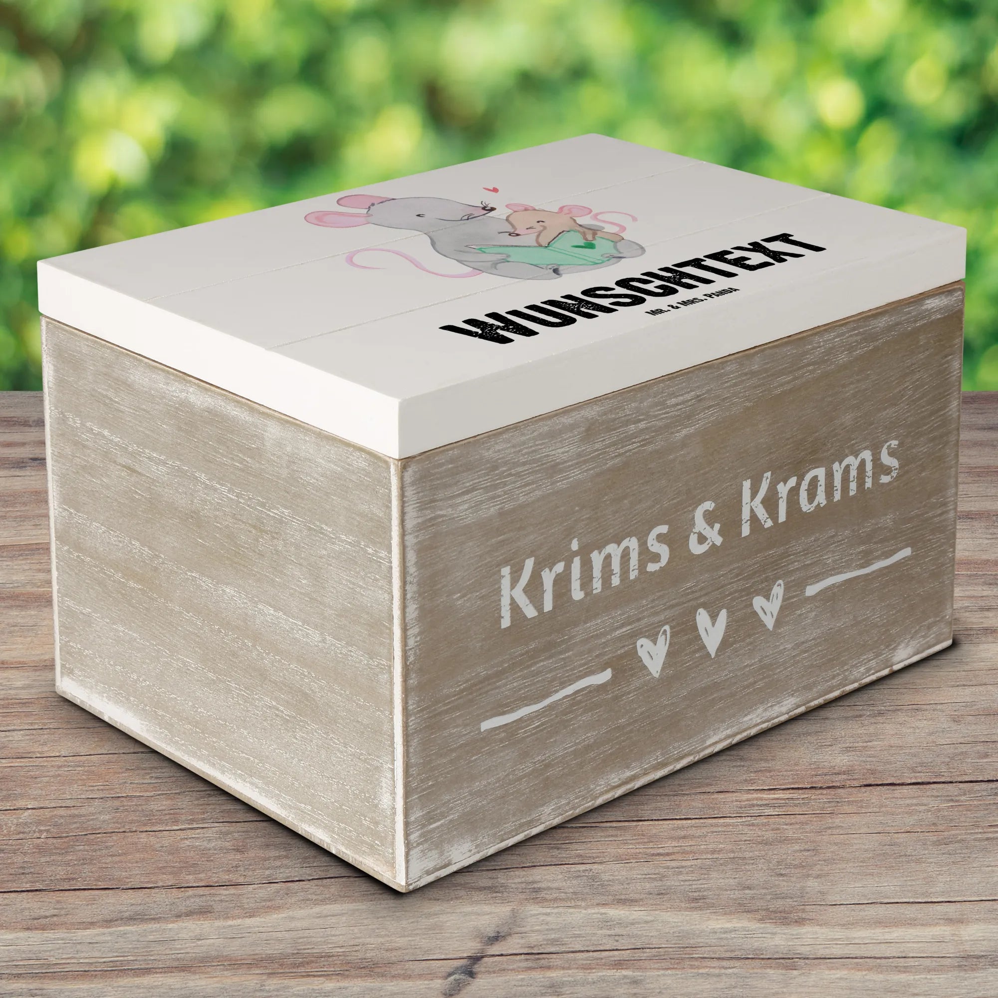 Personalizowane drewniane pudełko nauczycielka przedszkolna serce - 22 x 15 cm - biały