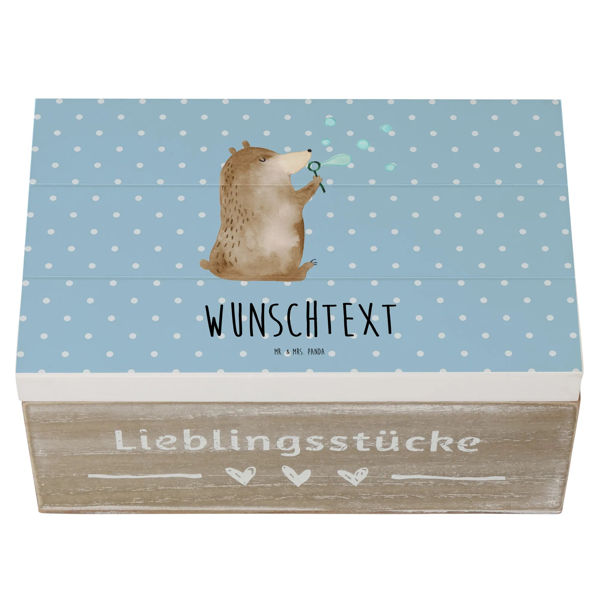 Personalizowane drewniane pudełko niedźwiedź bańki mydlane - 22 x 15 cm - biały