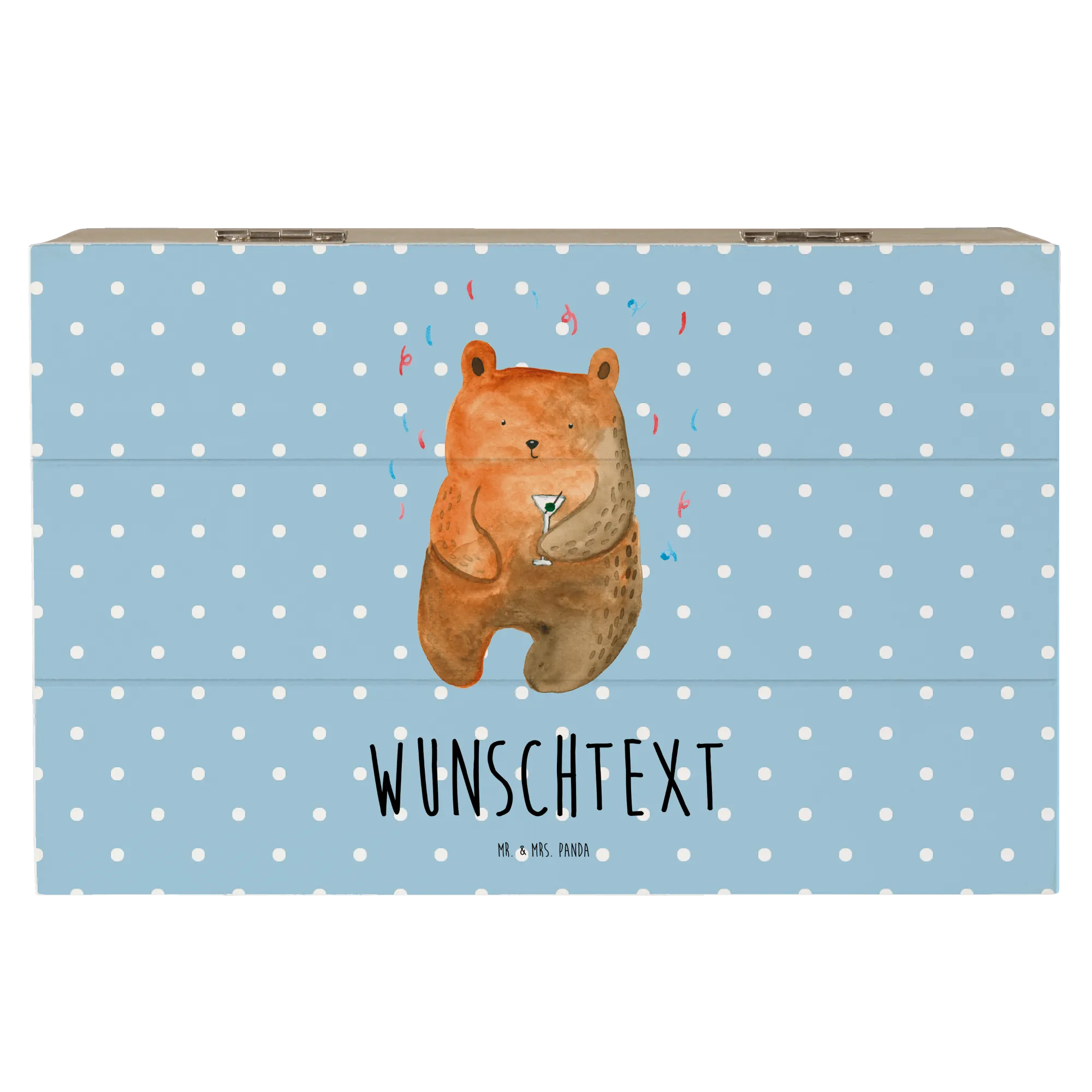 Personalizowane drewniane pudełko Niedźwiedź Impreza - 22 x 15 cm - biały
