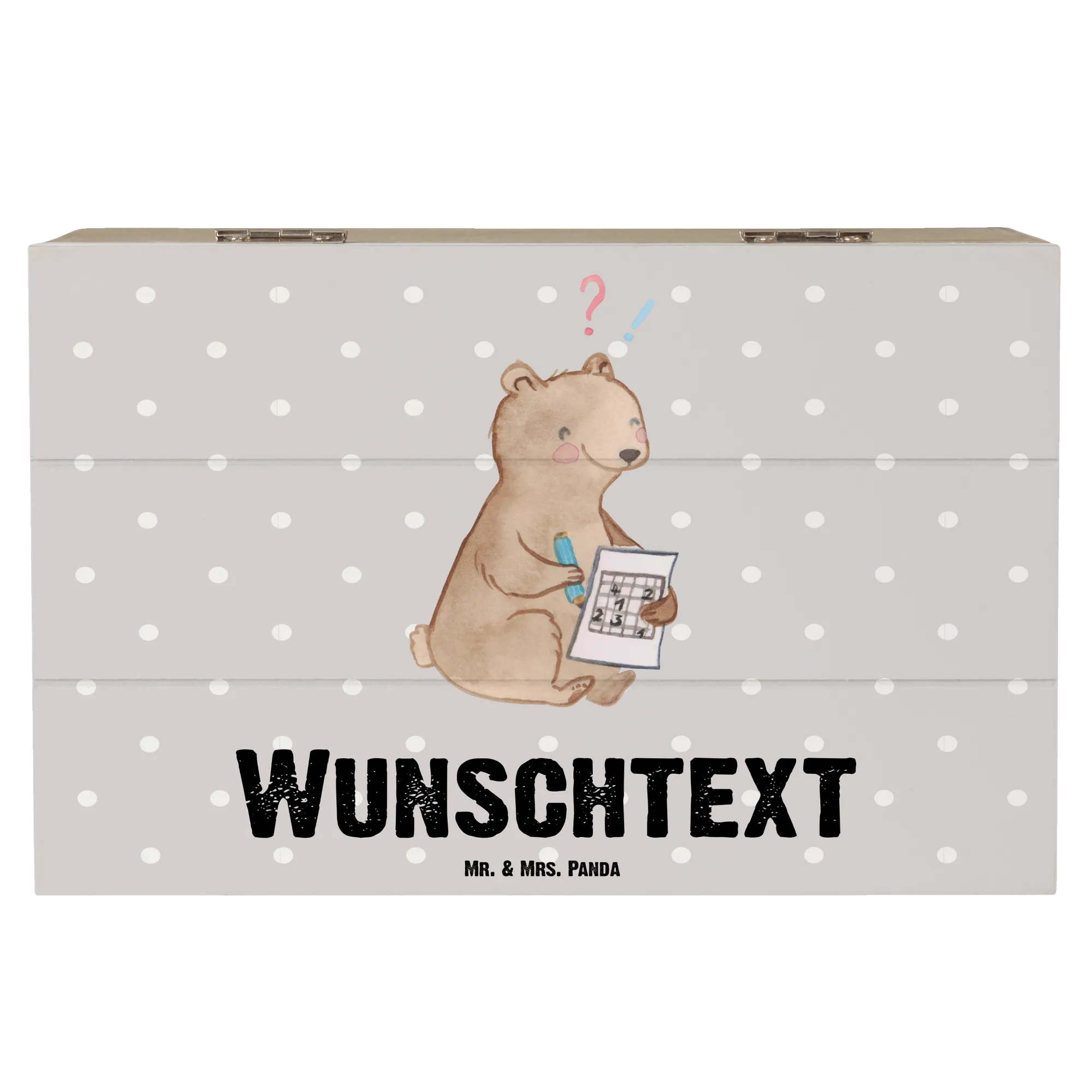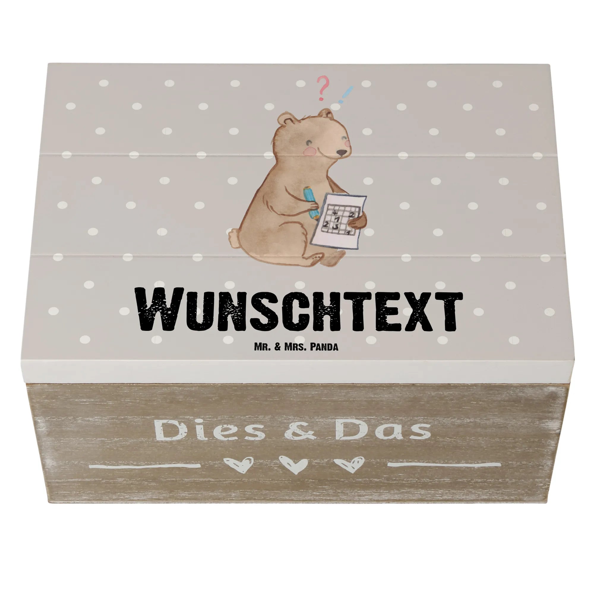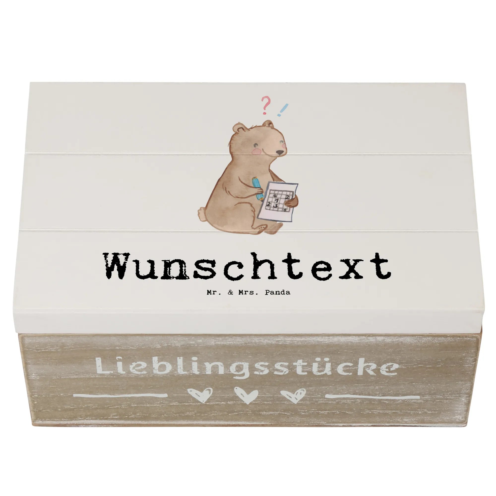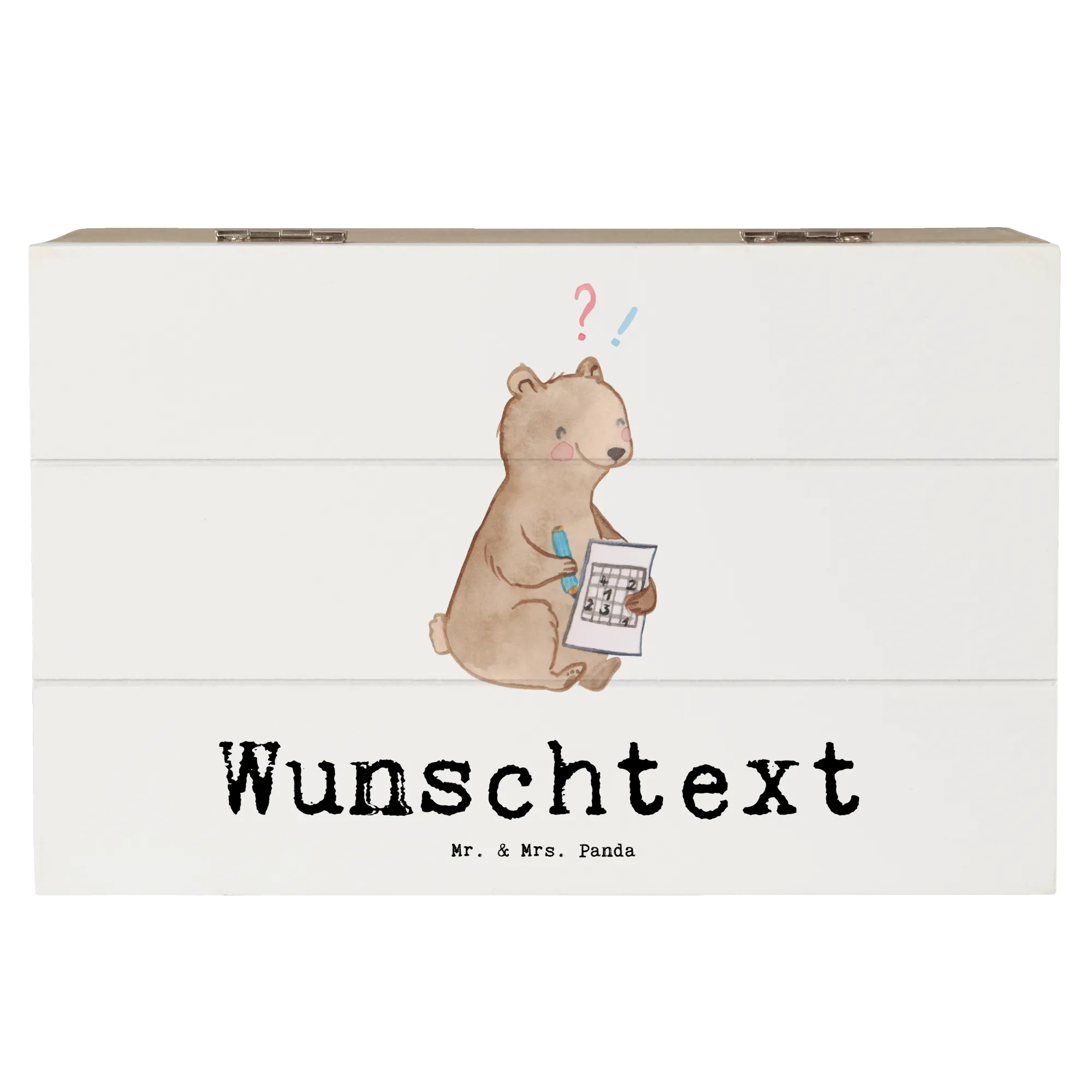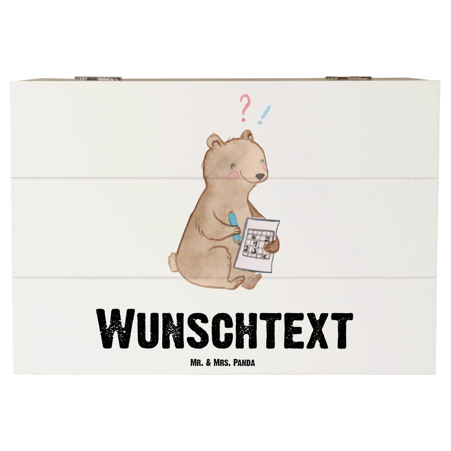 Personalizowane drewniane pudełko niedźwiedź Rozwiąż zagadkę - 22 x 15 cm - Biały
