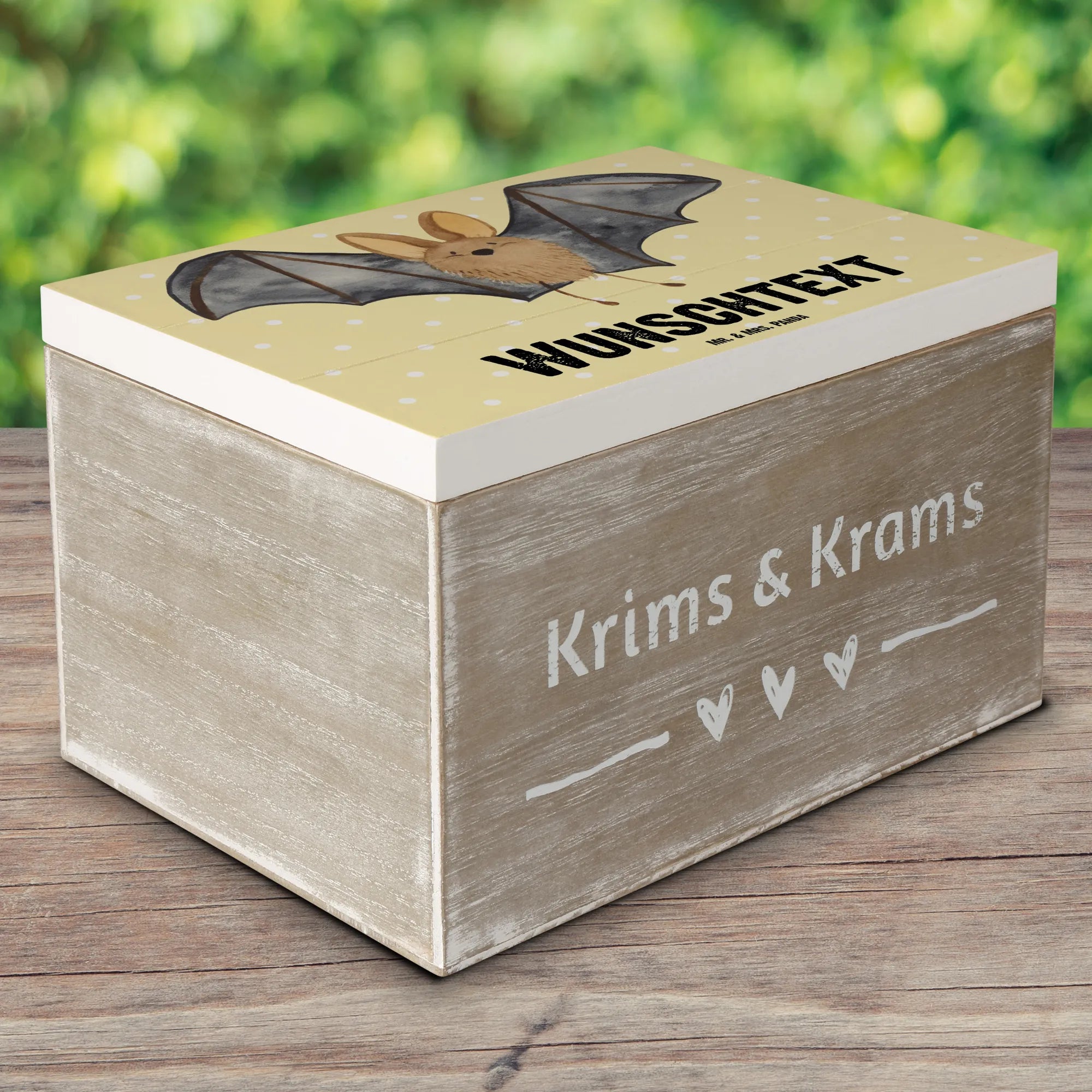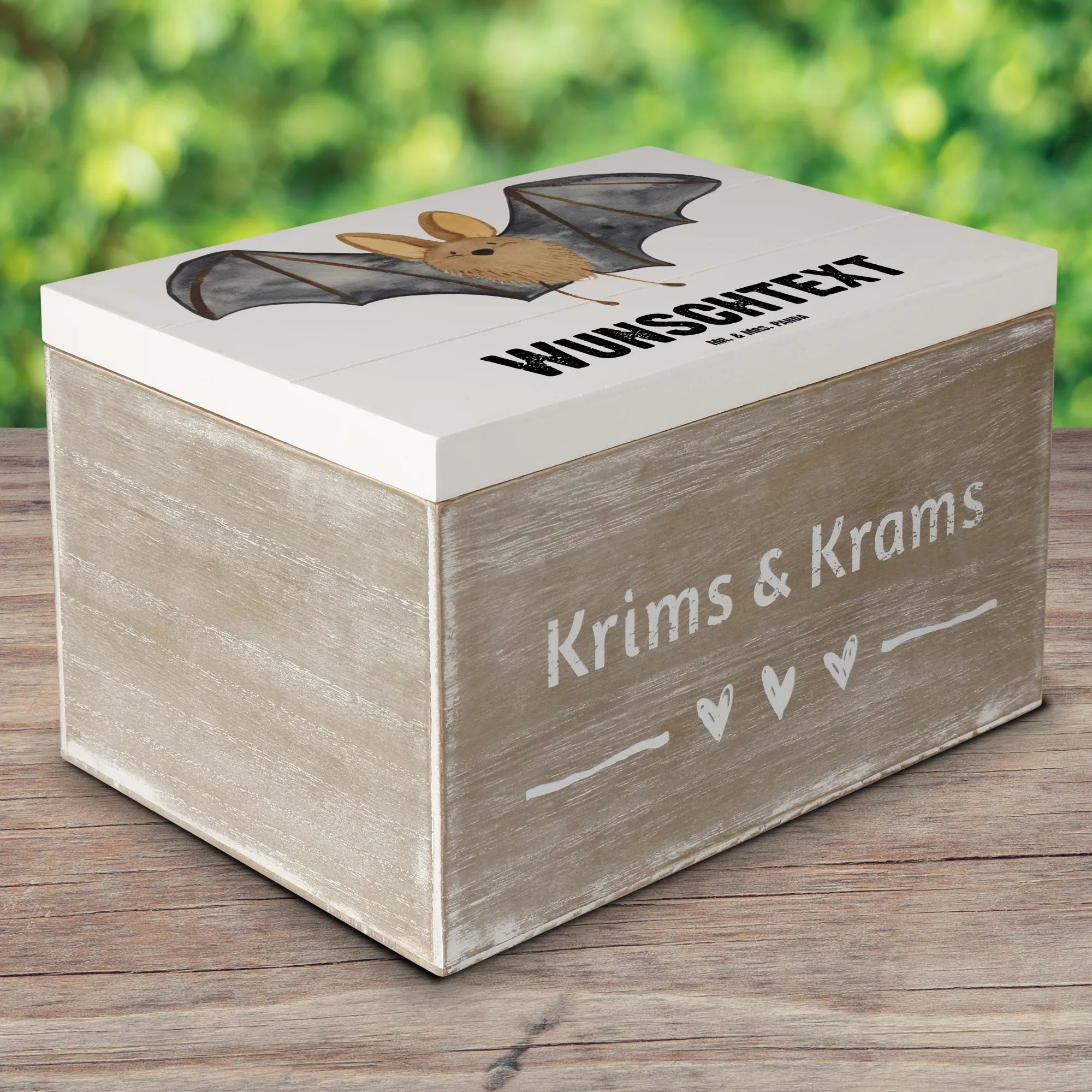 Personalizowane drewniane pudełko nietoperz skrzydło - 19 x 12 cm - biały