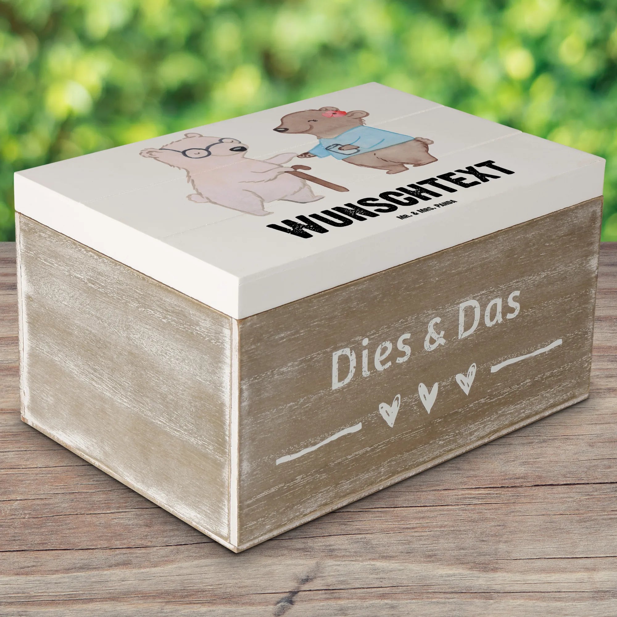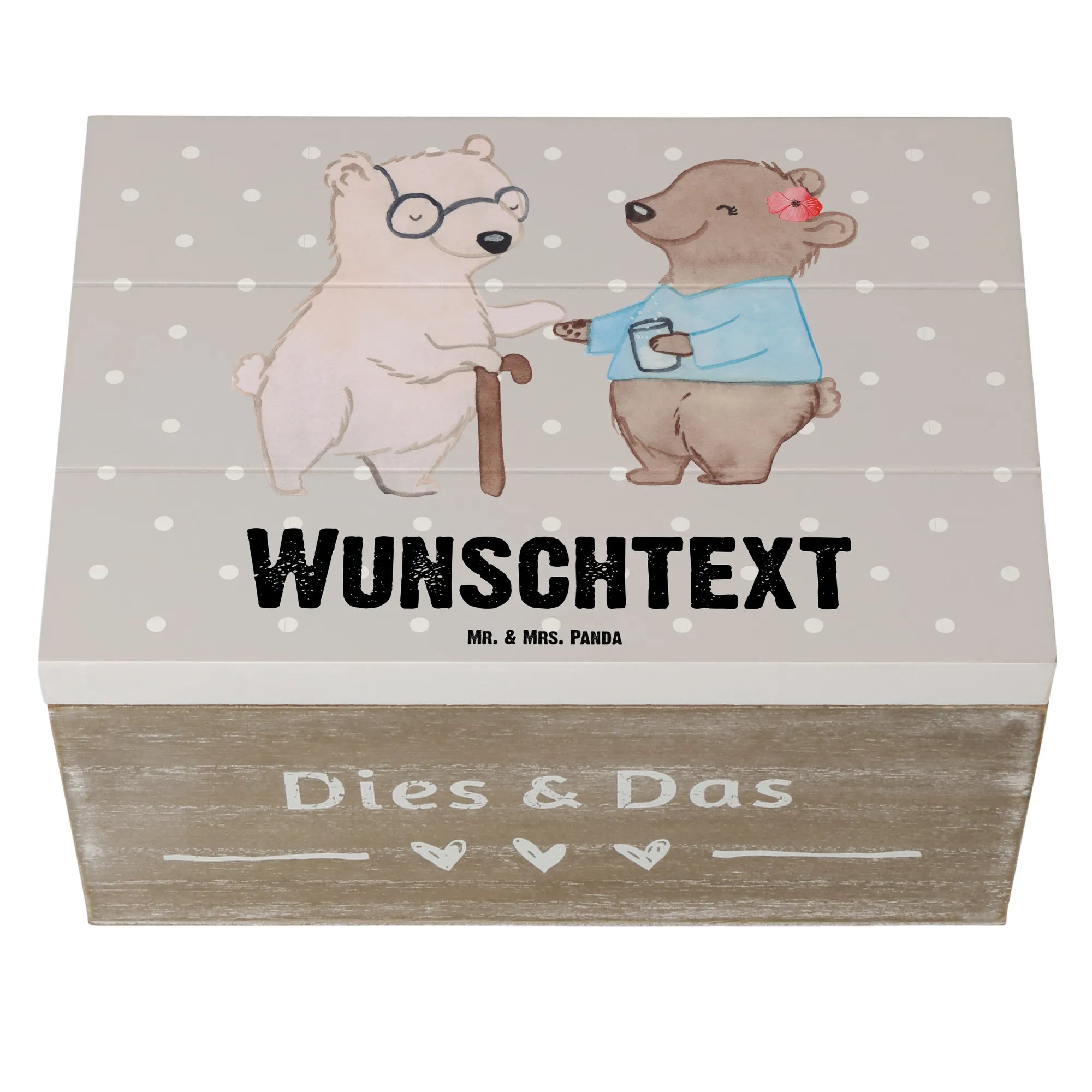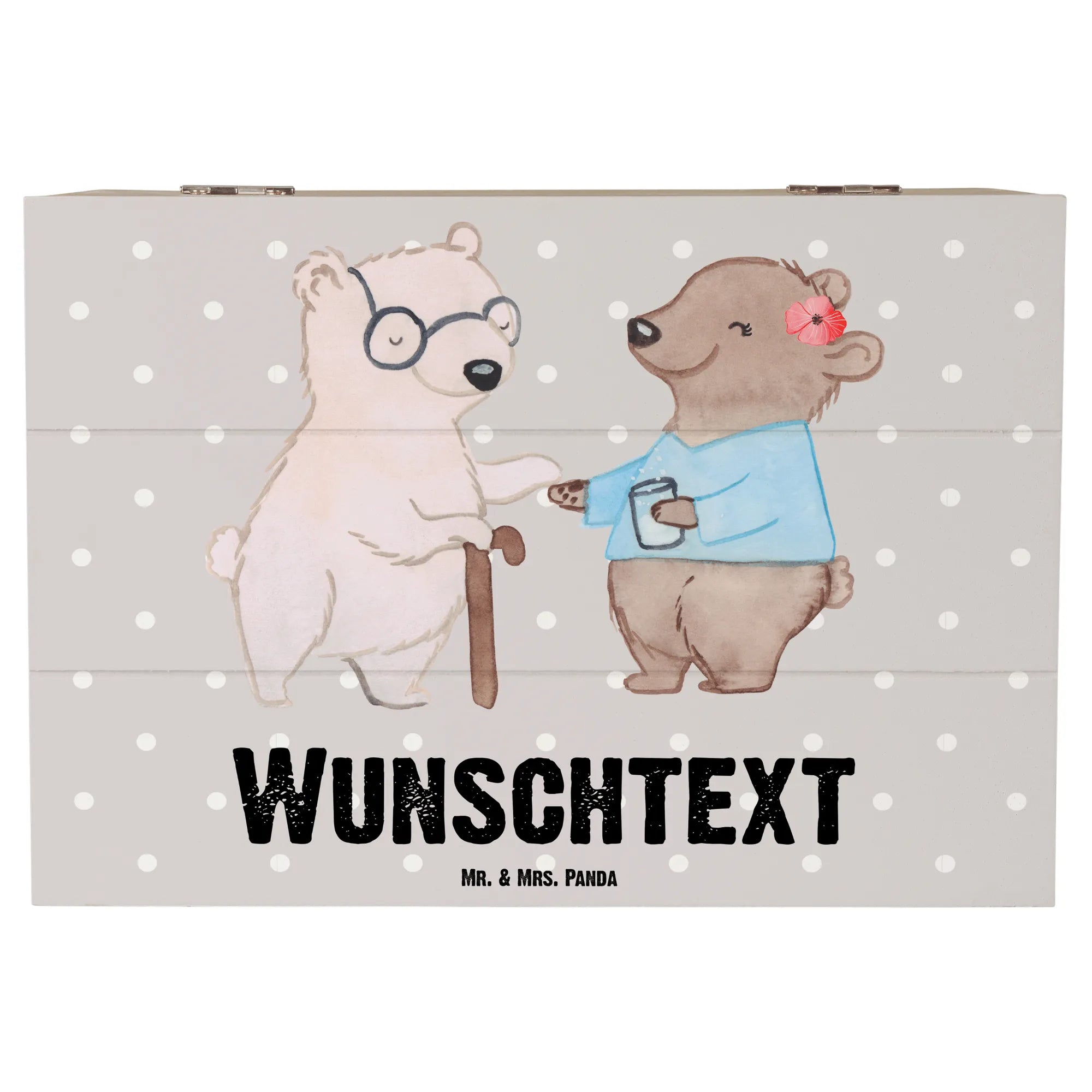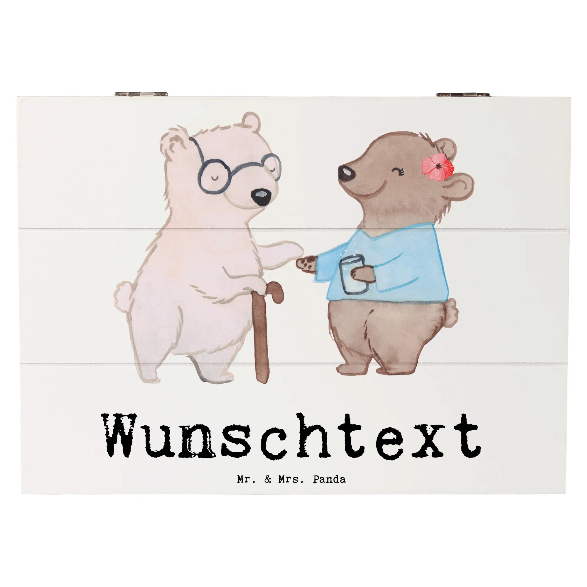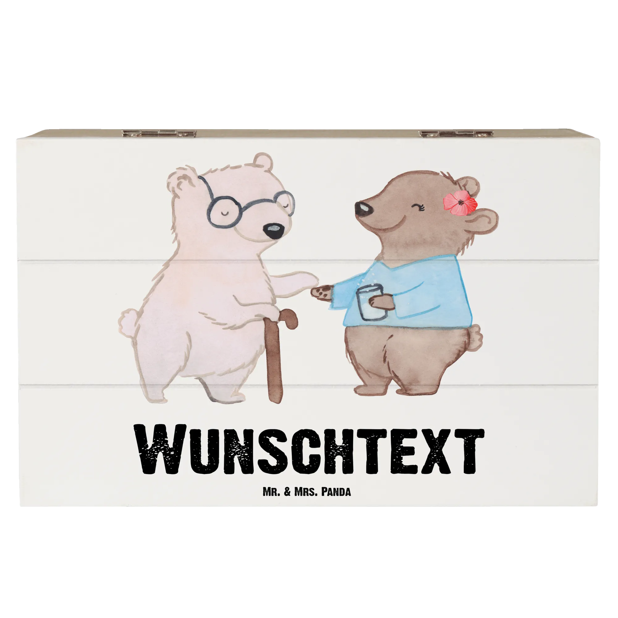 Personalizowane drewniane pudełko opiekunka osób starszych serce - 22 x 15 cm - biały