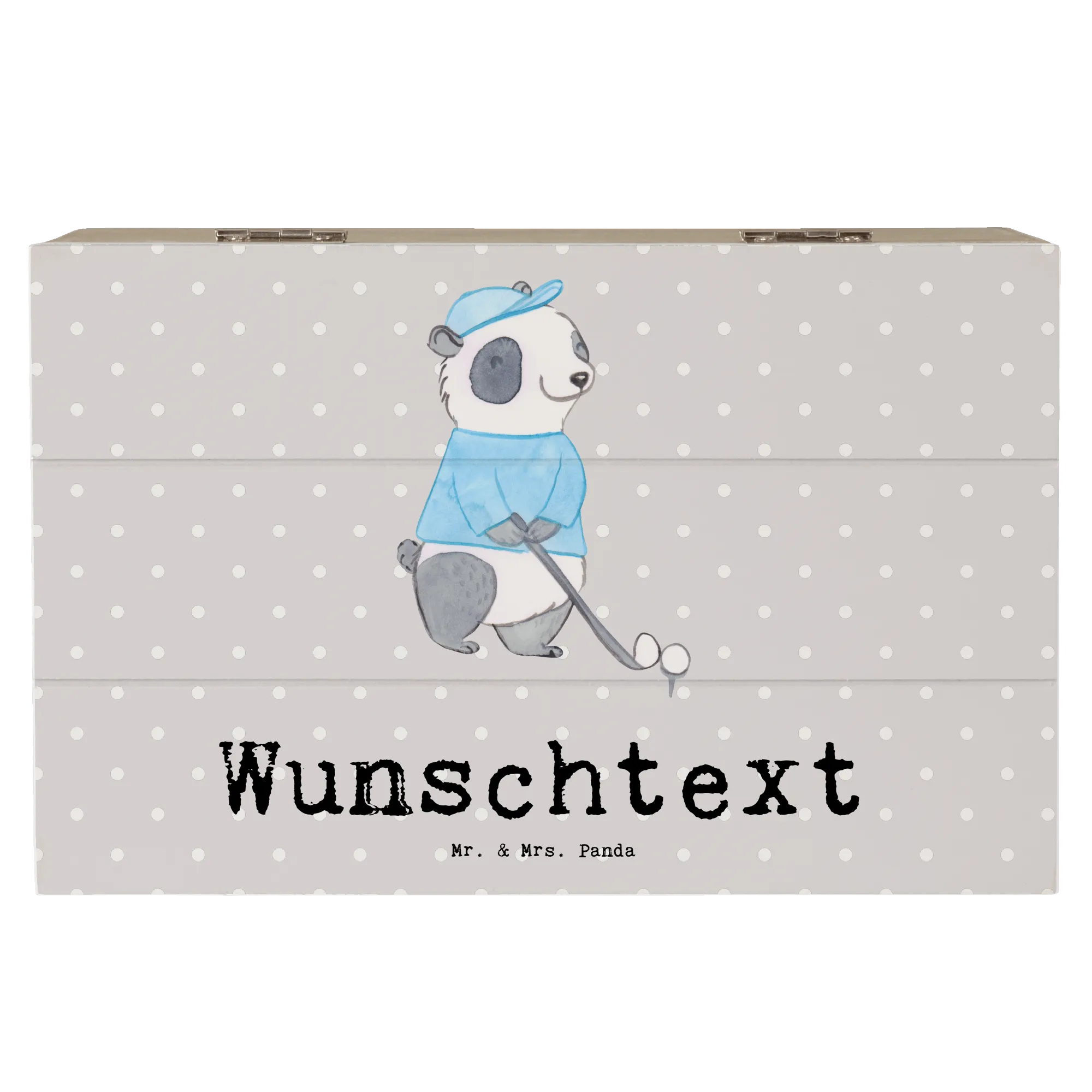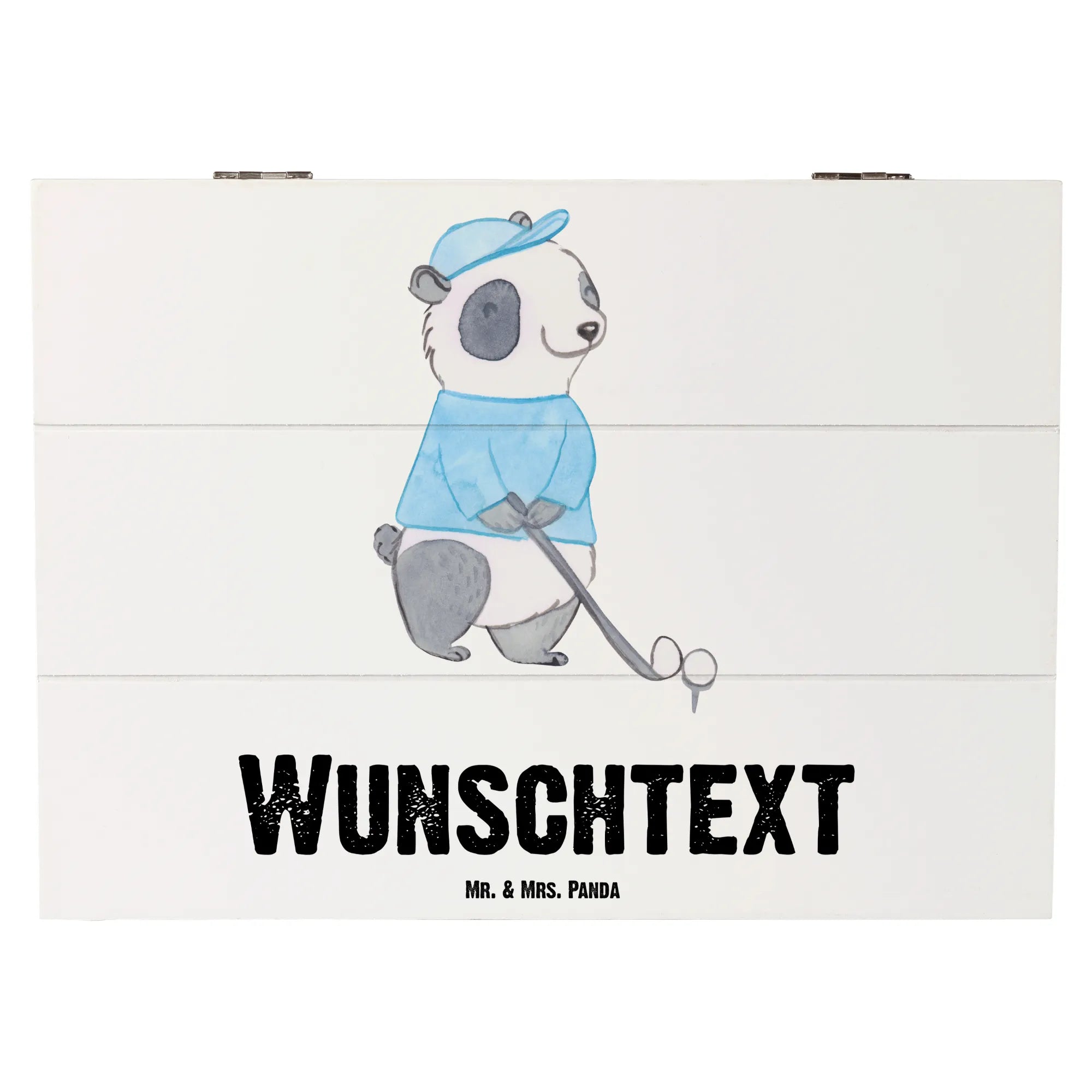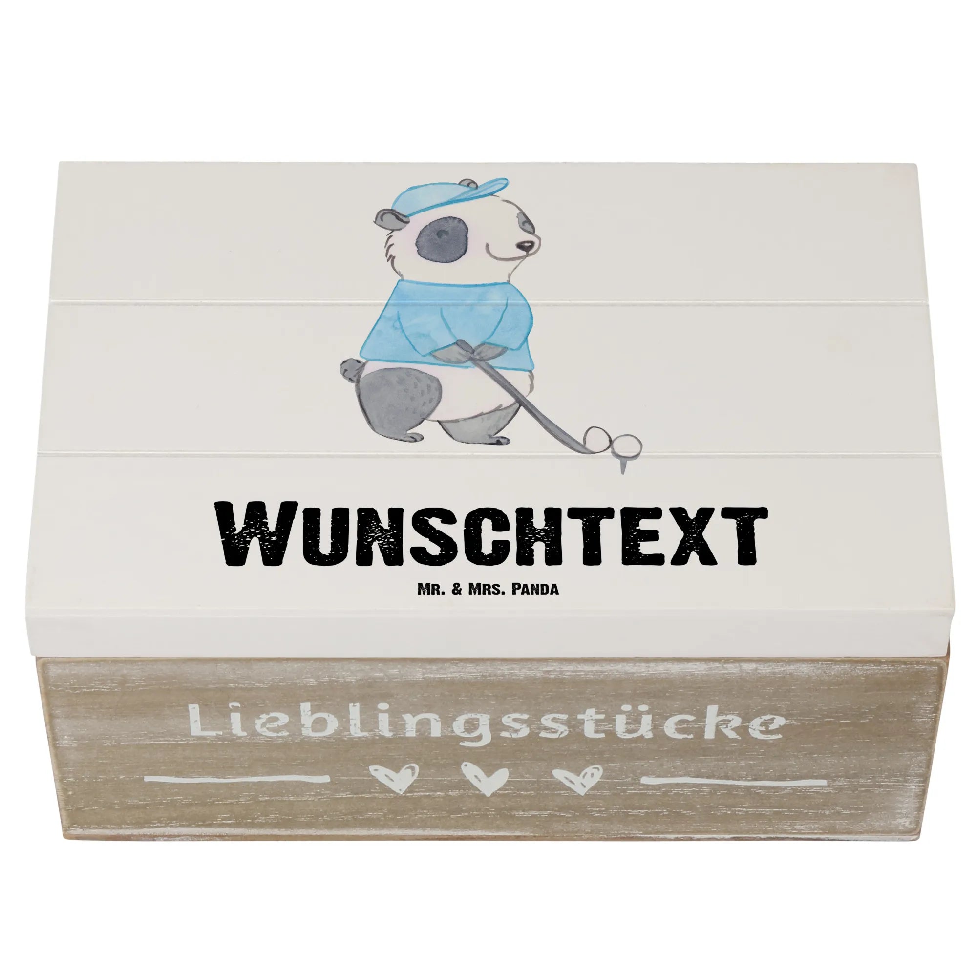 Personalizowane drewniane pudełko Panda gra w golfa - 22 x 15 cm - biały