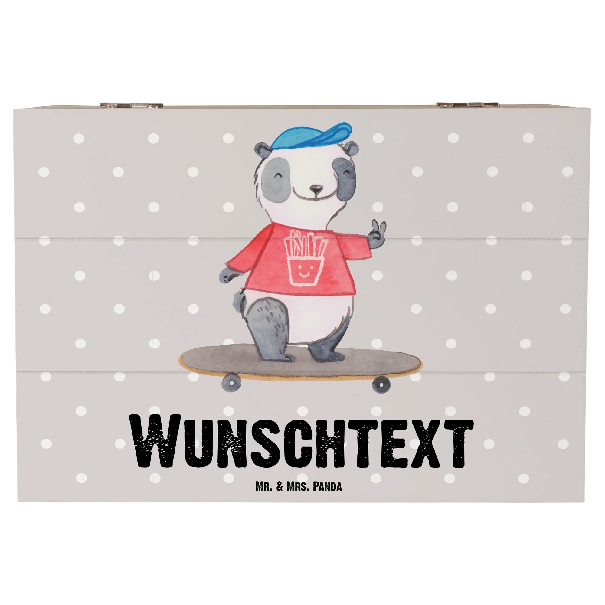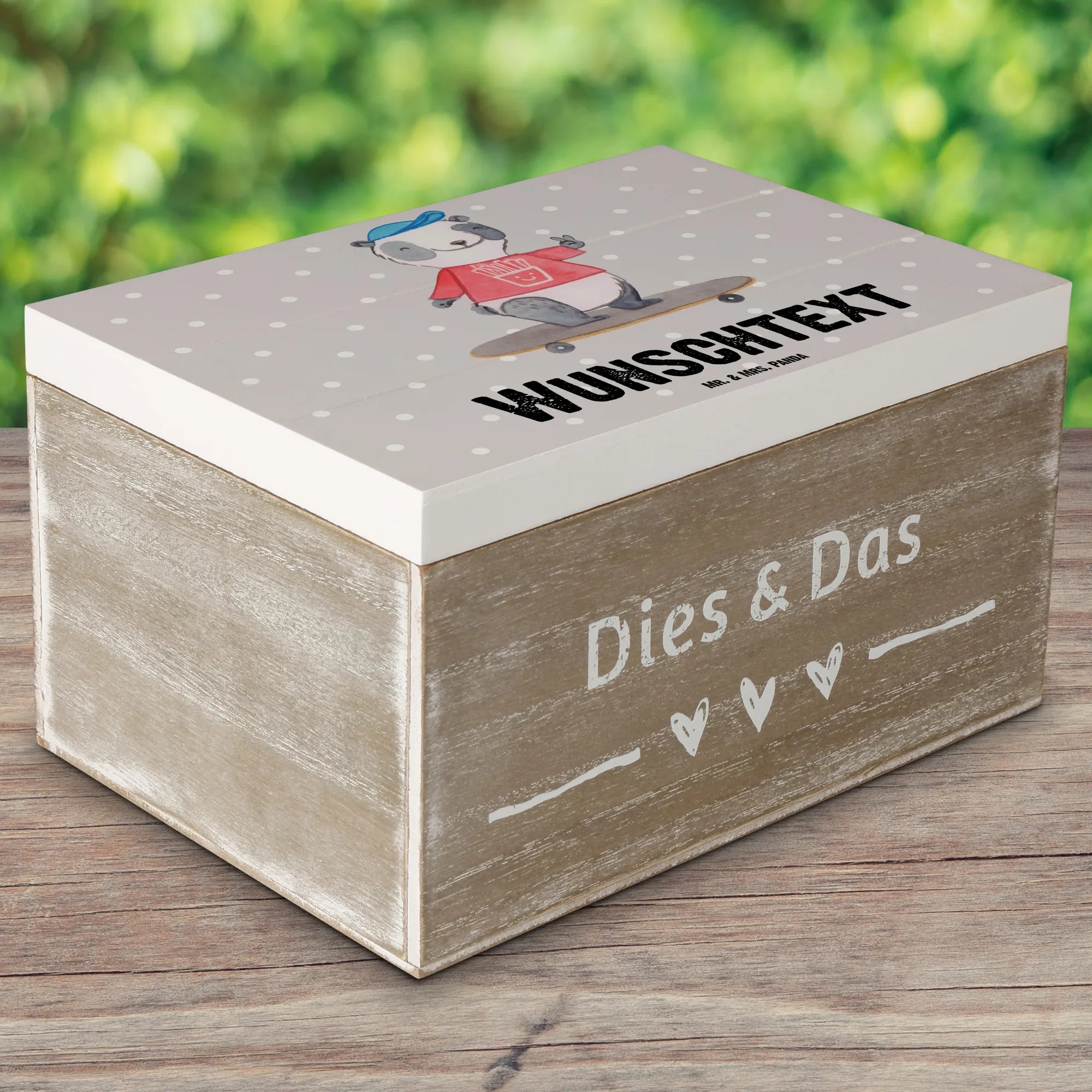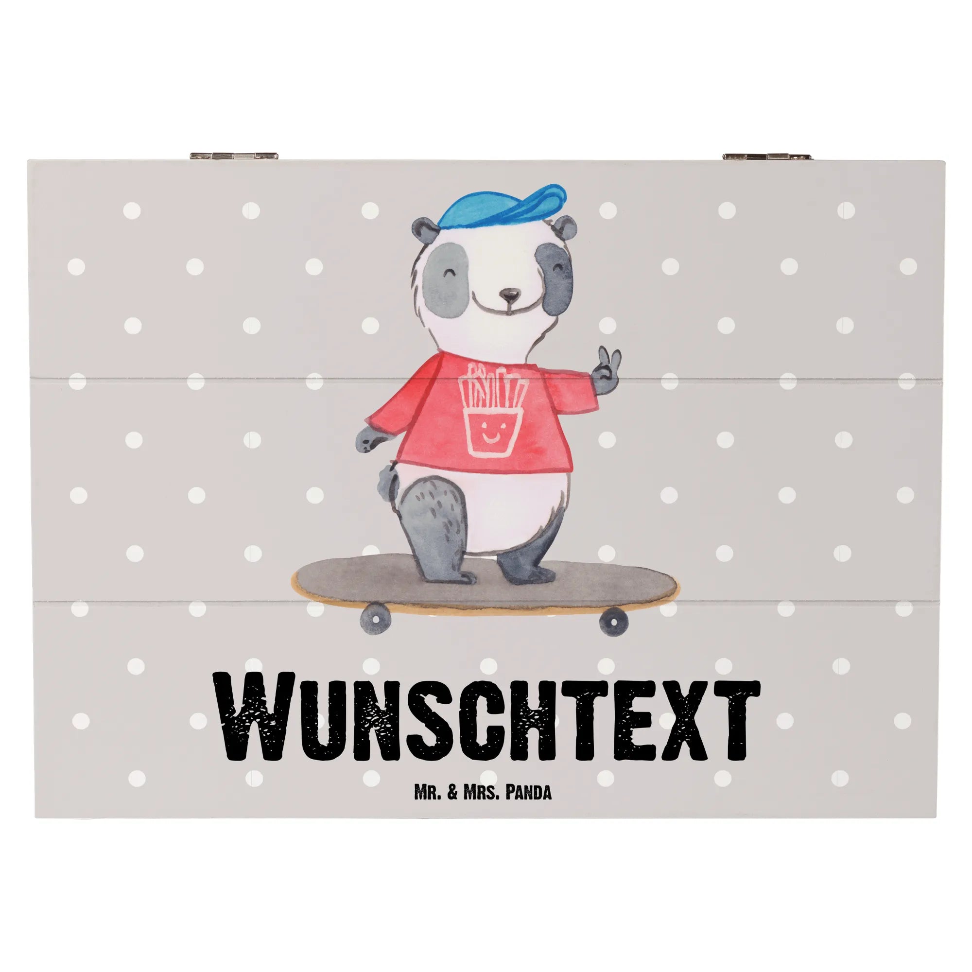 Personalizowane drewniane pudełko Panda Jazda na longboardzie – Mr. & Mrs. Panda