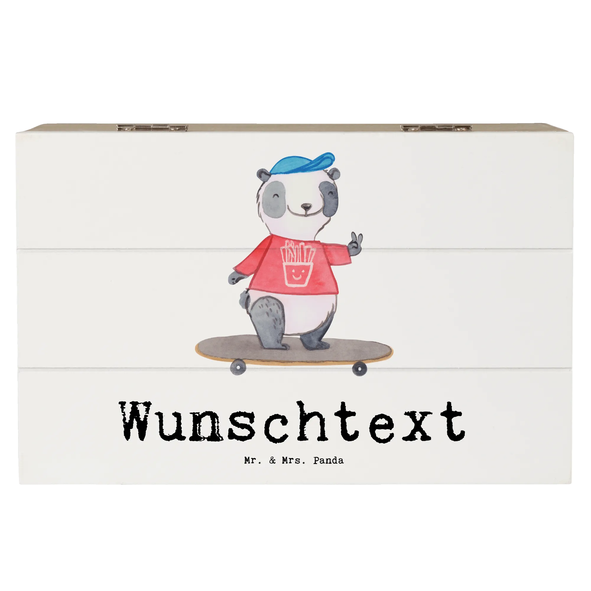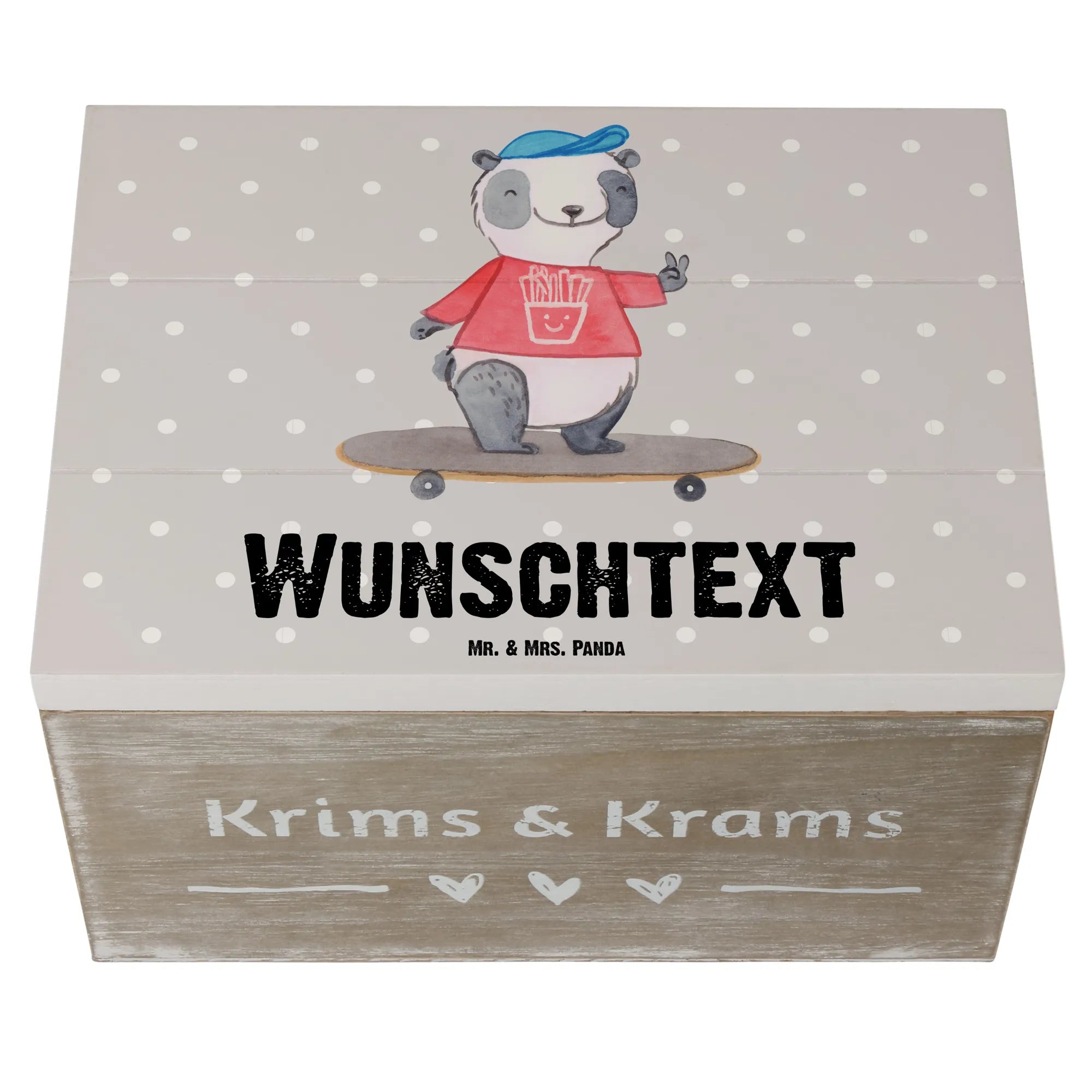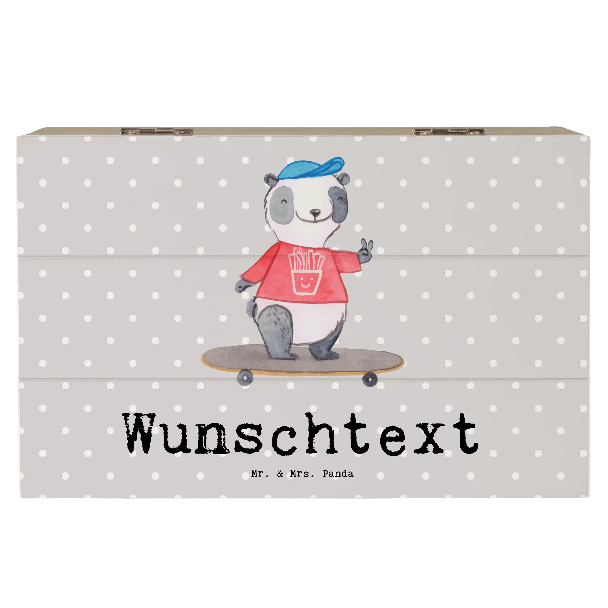 Personalizowane drewniane pudełko Panda Jazda na longboardzie – Mr. & Mrs. Panda